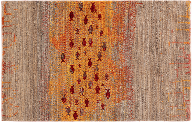 Dit prachtige tapijt is een Perzisch Gabbeh-tapijt en behoort daarom tot de hoogste kwaliteit Gabbeh-tapijten. De tapijten worden geknoopt door nomaden of semi-nomaden in Iran volgens traditioneel vakmanschap. De eenvoudige motieven en patronen zijn vooral geïnspireerd op de directe omgeving van de nomaden. Zo zijn er bijvoorbeeld kamelen, bomen of struiken te vinden op de traditionele tapijten. De Perzische Gabbeh-tapijten zijn gemaakt van wol van lokaal opgefokte kuddes schapen. De wol wordt dus meestal nog met de hand gesponnen. Elk van deze oosterse tapijten belichaamt dus een uniek karakter van de eeuwenoude cultuur.