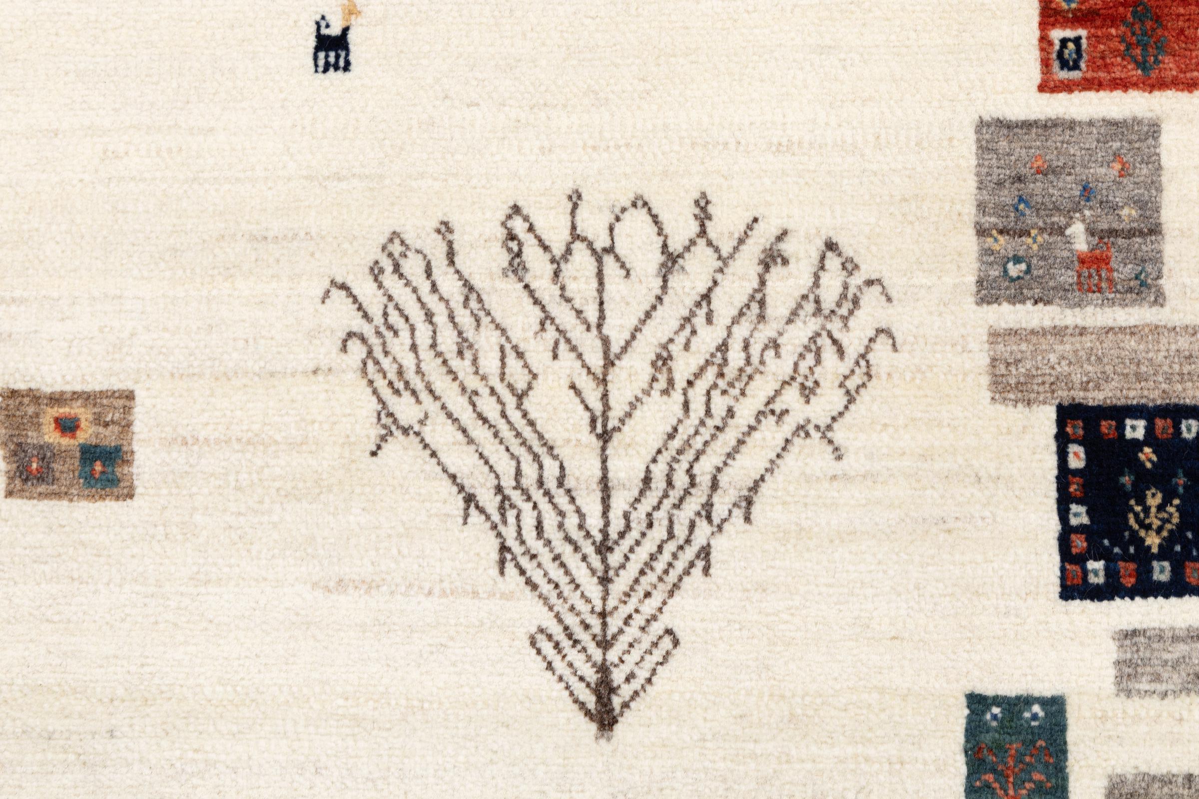 Dit prachtige tapijt is een Perzisch Gabbeh-tapijt en behoort daarom tot de hoogste kwaliteit Gabbeh-tapijten. De tapijten worden geknoopt door nomaden of semi-nomaden in Iran volgens traditioneel vakmanschap. De eenvoudige motieven en patronen zijn vooral geïnspireerd op de directe omgeving van de nomaden. Zo zijn er bijvoorbeeld kamelen, bomen of struiken te vinden op de traditionele tapijten. De Perzische Gabbeh-tapijten zijn gemaakt van wol van lokaal opgefokte kuddes schapen. De wol wordt dus meestal nog met de hand gesponnen. Elk van deze oosterse tapijten belichaamt dus een uniek karakter van de eeuwenoude cultuur.