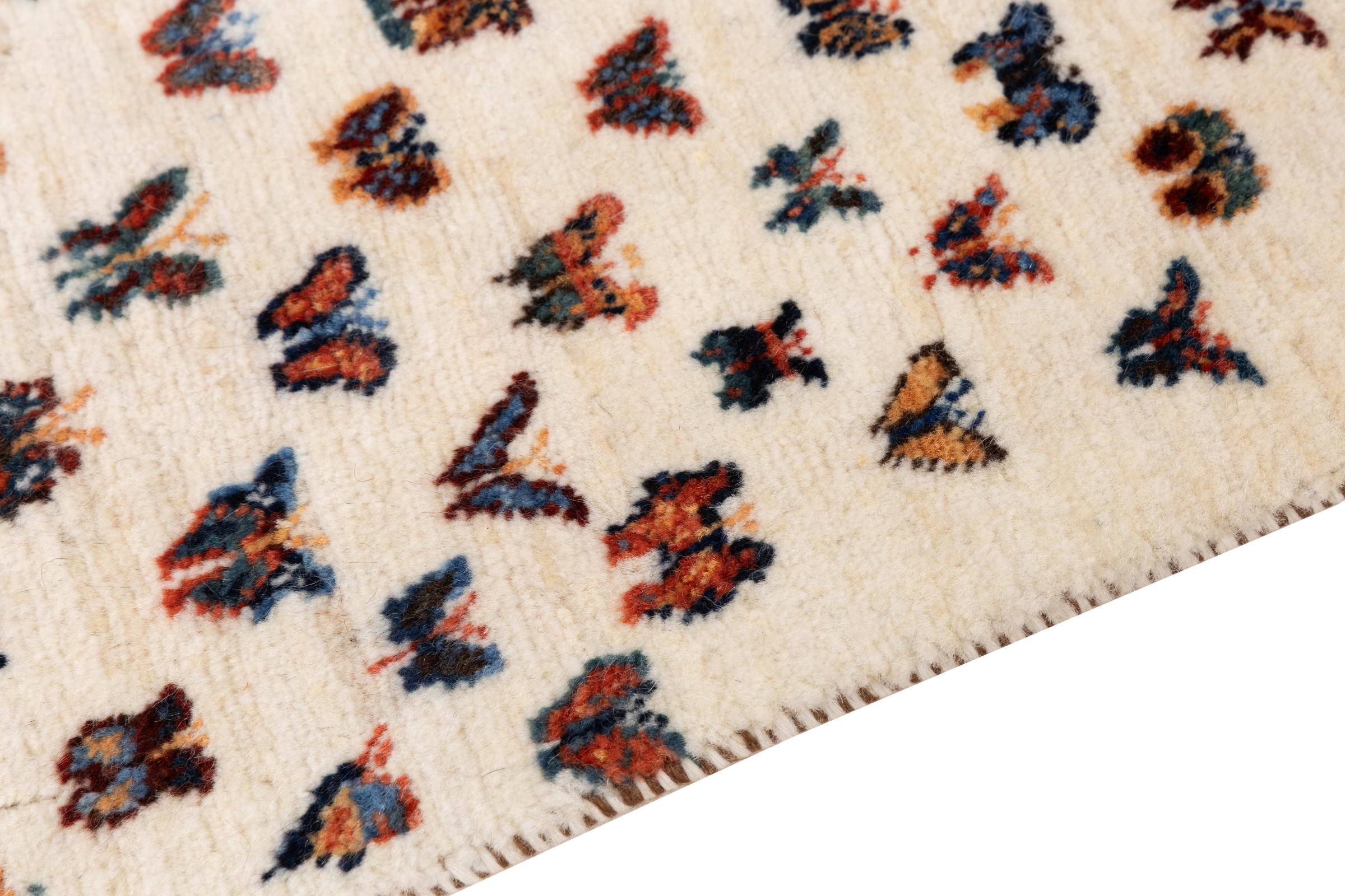 Dit prachtige tapijt is een Perzisch Gabbeh-tapijt en behoort daarom tot de hoogste kwaliteit Gabbeh-tapijten. De tapijten worden geknoopt door nomaden of semi-nomaden in Iran volgens traditioneel vakmanschap. De eenvoudige motieven en patronen zijn vooral geïnspireerd op de directe omgeving van de nomaden. Zo zijn er bijvoorbeeld kamelen, bomen of struiken te vinden op de traditionele tapijten. De Perzische Gabbeh-tapijten zijn gemaakt van wol van lokaal opgefokte kuddes schapen. De wol wordt dus meestal nog met de hand gesponnen. Elk van deze oosterse tapijten belichaamt dus een uniek karakter van de eeuwenoude cultuur.