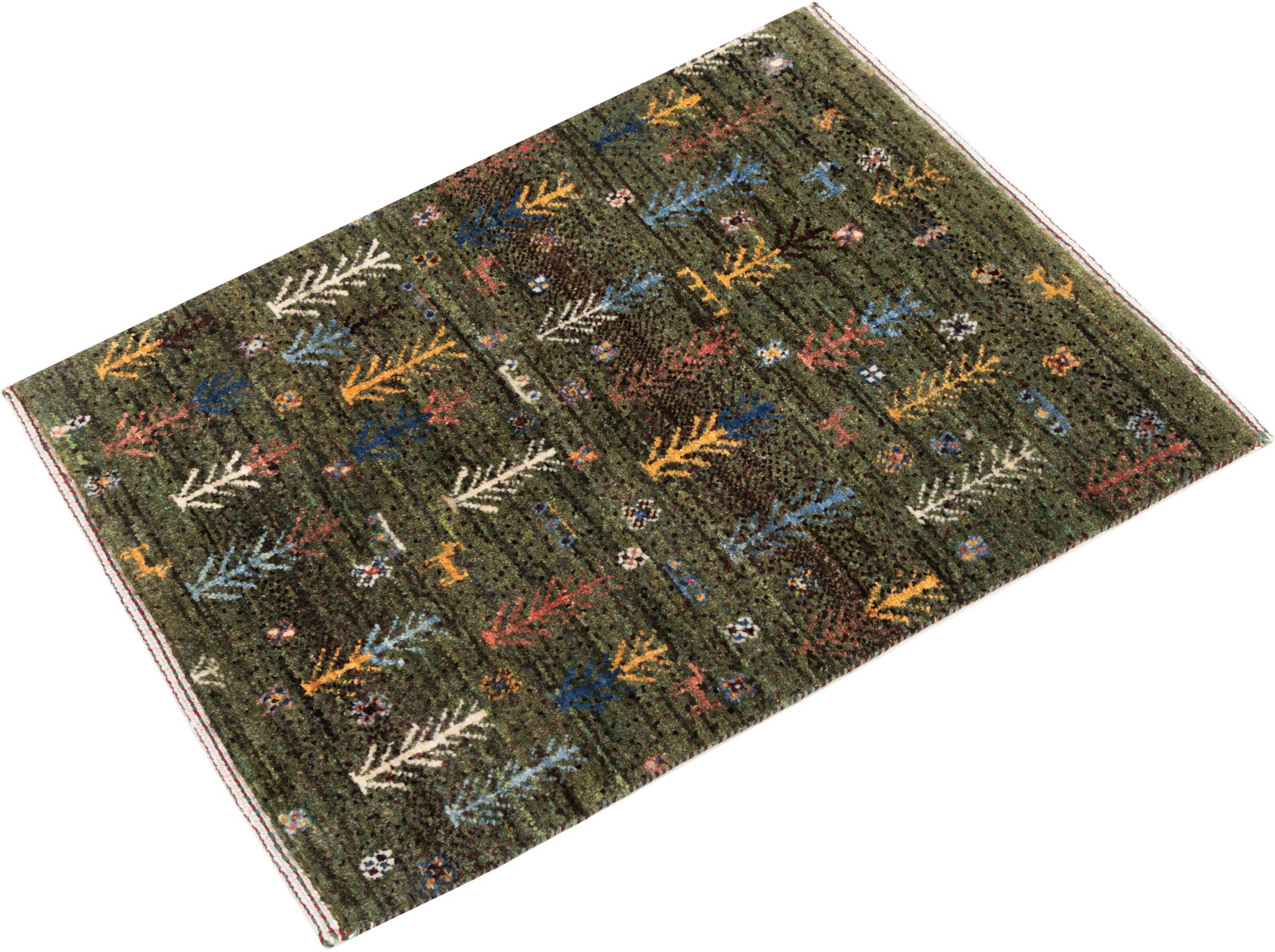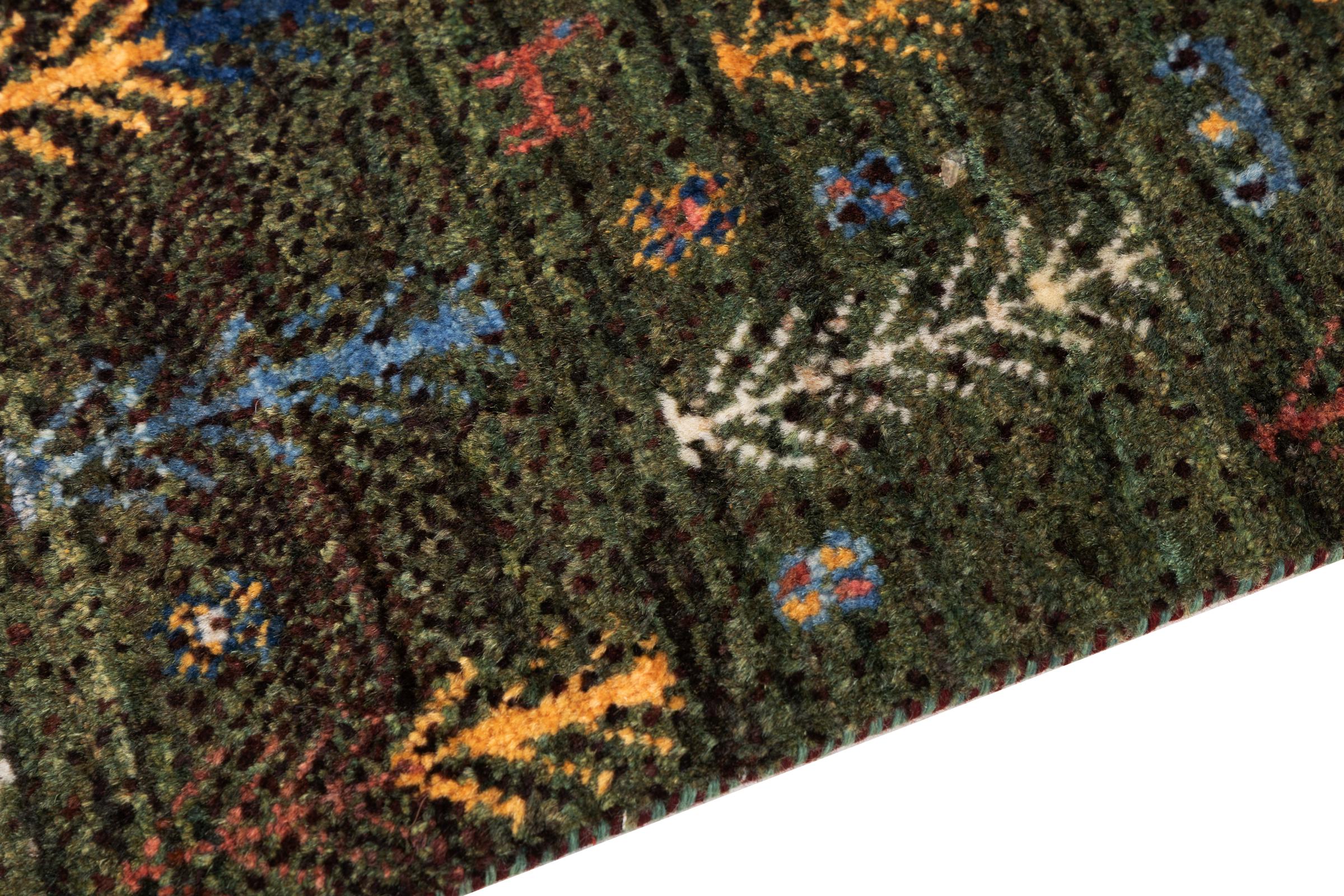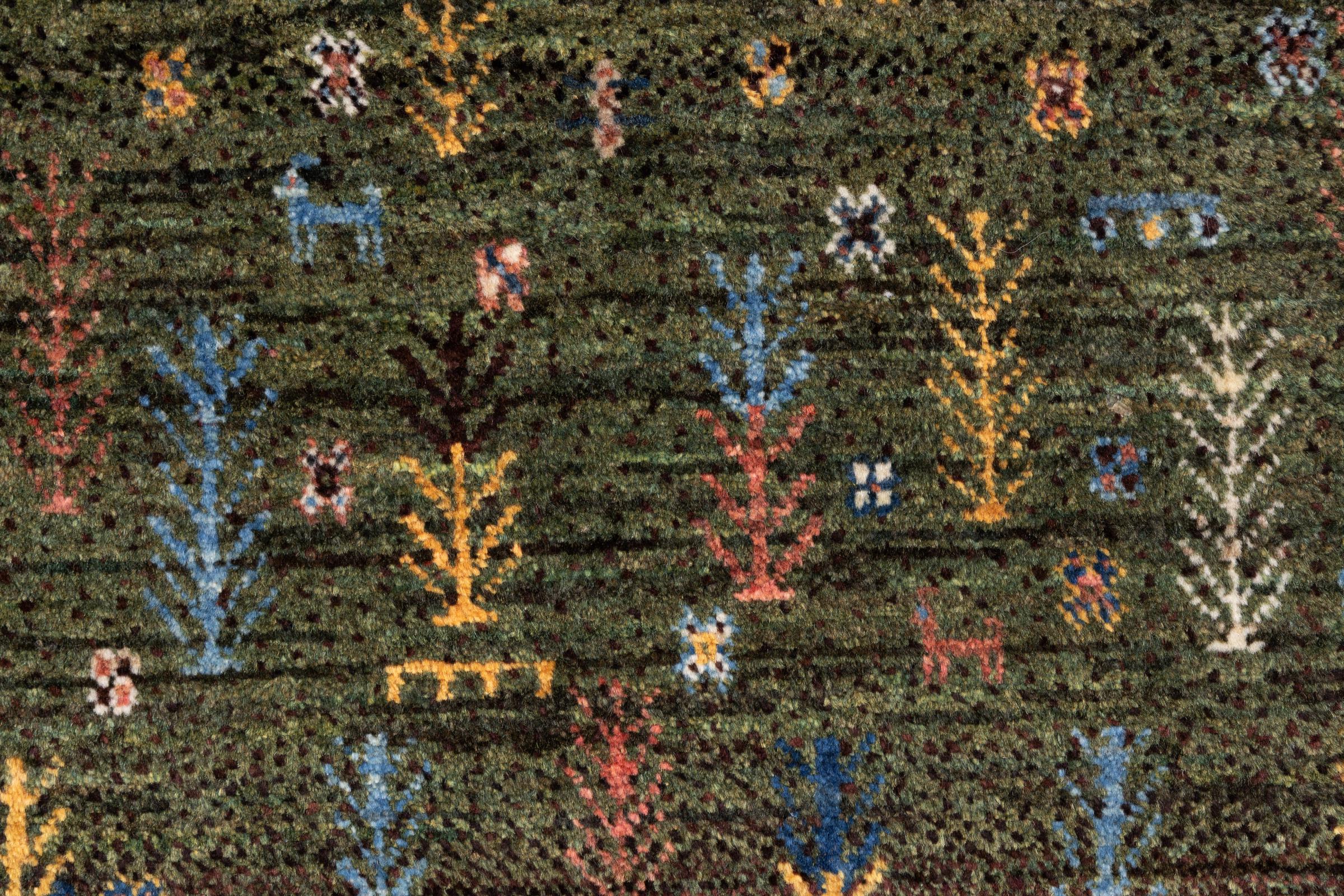 Dit prachtige tapijt is een Perzisch Gabbeh-tapijt en behoort daarom tot de hoogste kwaliteit Gabbeh-tapijten. De tapijten worden geknoopt door nomaden of semi-nomaden in Iran volgens traditioneel vakmanschap. De eenvoudige motieven en patronen zijn vooral geïnspireerd op de directe omgeving van de nomaden. Zo zijn er bijvoorbeeld kamelen, bomen of struiken te vinden op de traditionele tapijten. De Perzische Gabbeh-tapijten zijn gemaakt van wol van lokaal opgefokte kuddes schapen. De wol wordt dus meestal nog met de hand gesponnen. Elk van deze oosterse tapijten belichaamt dus een uniek karakter van de eeuwenoude cultuur.