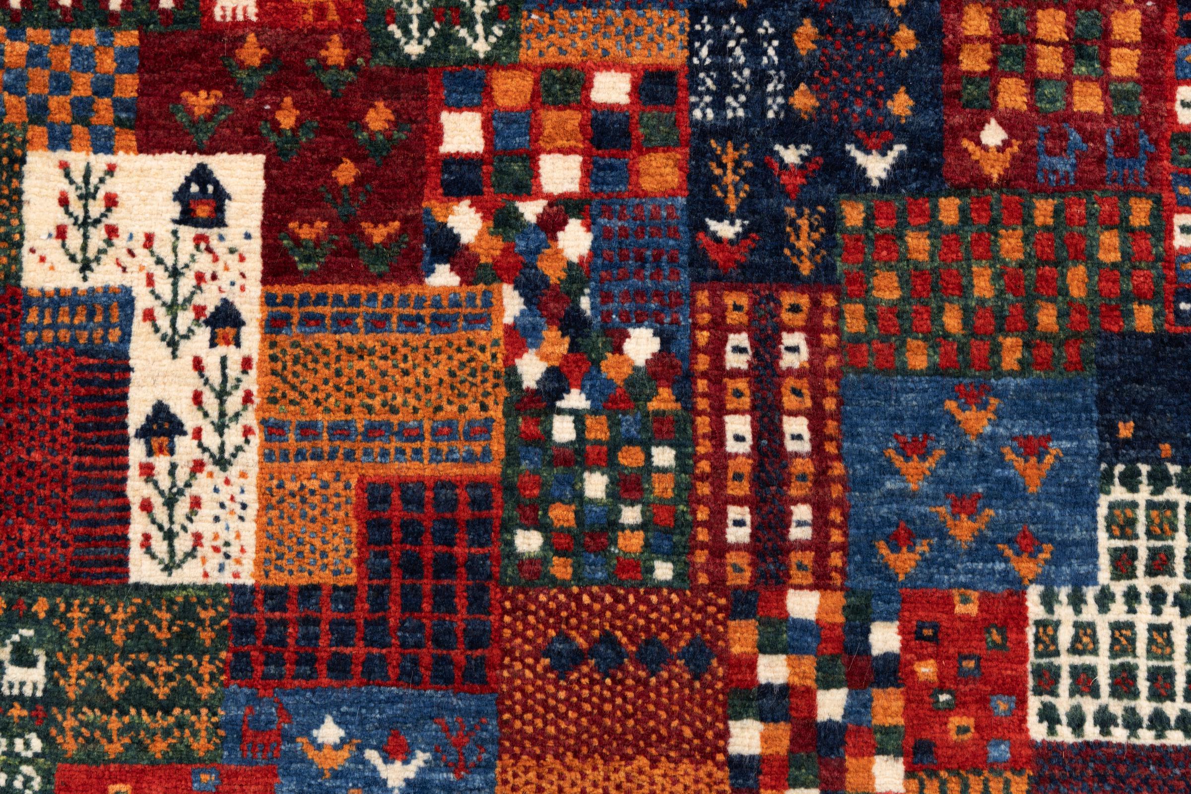 Een verfijning van de al bekende Gabbeh-tapijten: Dit is deze Perzische Gabbeh Loribaft. Het weet indruk te maken met zijn fijnere weefsel en prachtige ontwerp. Het werd door Loren in het zuiden van Perzië met de hand geknoopt van de beste handgesponnen schapenwol. Voor het verven van de wol worden uitsluitend pure plantaardige kleurstoffen gebruikt. Met dit vloerkleed haal je de hoogste standaard van een Gabbeh-tapijt in huis.