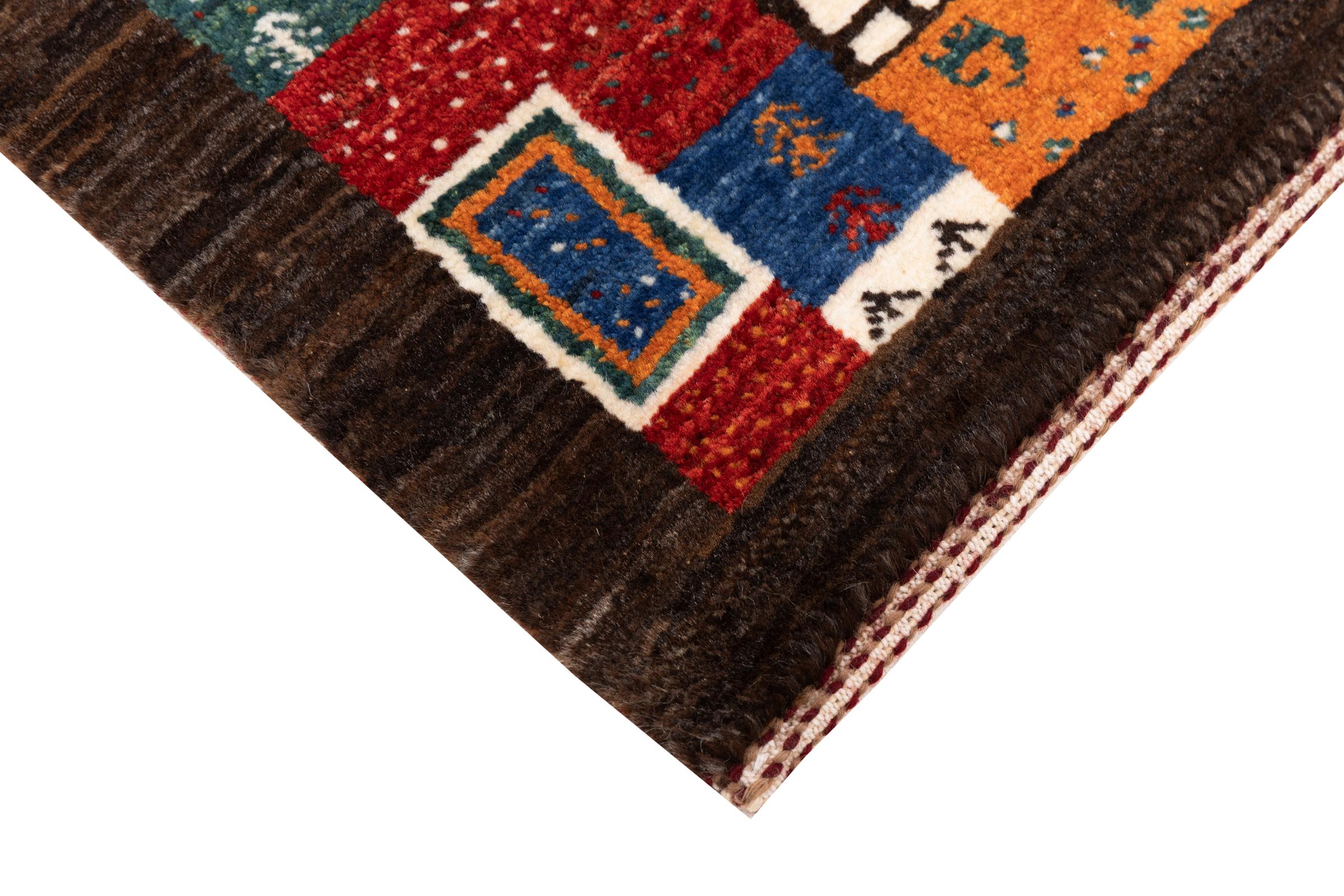 Dit prachtige tapijt is een Perzisch Gabbeh-tapijt en behoort daarom tot de hoogste kwaliteit Gabbeh-tapijten. De tapijten worden geknoopt door nomaden of semi-nomaden in Iran volgens traditioneel vakmanschap. De eenvoudige motieven en patronen zijn vooral geïnspireerd op de directe omgeving van de nomaden. Zo zijn er bijvoorbeeld kamelen, bomen of struiken te vinden op de traditionele tapijten. De Perzische Gabbeh-tapijten zijn gemaakt van wol van lokaal opgefokte kuddes schapen. De wol wordt dus meestal nog met de hand gesponnen. Elk van deze oosterse tapijten belichaamt dus een uniek karakter van de eeuwenoude cultuur.