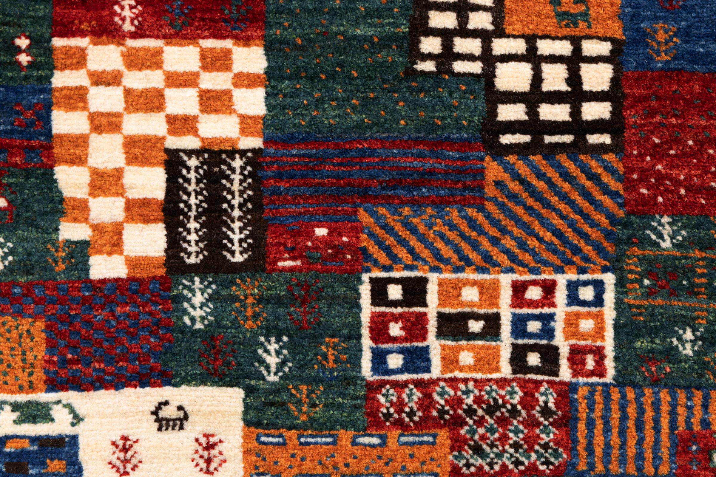 Een verfijning van de al bekende Gabbeh-tapijten: Dit is deze Perzische Gabbeh Loribaft. Het weet indruk te maken met zijn fijnere weefsel en prachtige ontwerp. Het werd door Loren in het zuiden van Perzië met de hand geknoopt van de beste handgesponnen schapenwol. Voor het verven van de wol worden uitsluitend pure plantaardige kleurstoffen gebruikt. Met dit vloerkleed haal je de hoogste standaard van een Gabbeh-tapijt in huis.