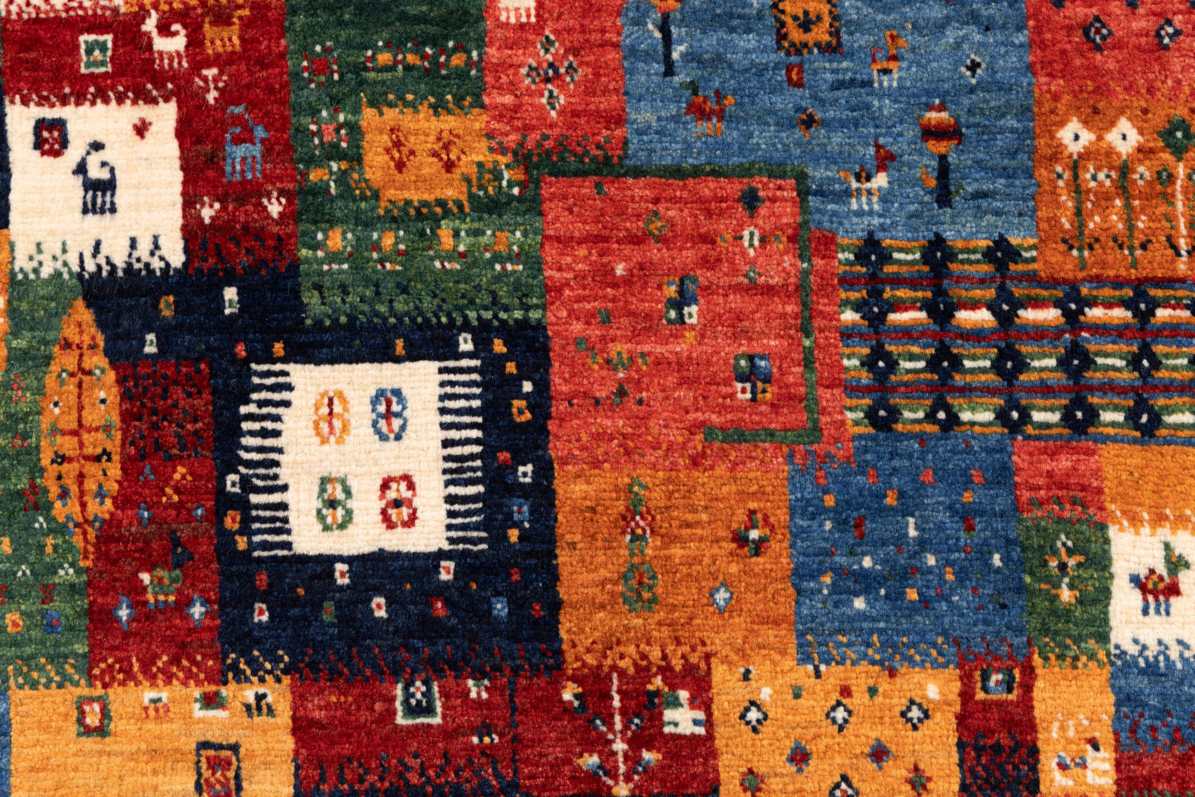 Dit prachtige tapijt is een Perzisch Gabbeh-tapijt en behoort daarom tot de hoogste kwaliteit Gabbeh-tapijten. De tapijten worden geknoopt door nomaden of semi-nomaden in Iran volgens traditioneel vakmanschap. De eenvoudige motieven en patronen zijn vooral geïnspireerd op de directe omgeving van de nomaden. Zo zijn er bijvoorbeeld kamelen, bomen of struiken te vinden op de traditionele tapijten. De Perzische Gabbeh-tapijten zijn gemaakt van wol van lokaal opgefokte kuddes schapen. De wol wordt dus meestal nog met de hand gesponnen. Elk van deze oosterse tapijten belichaamt dus een uniek karakter van de eeuwenoude cultuur.