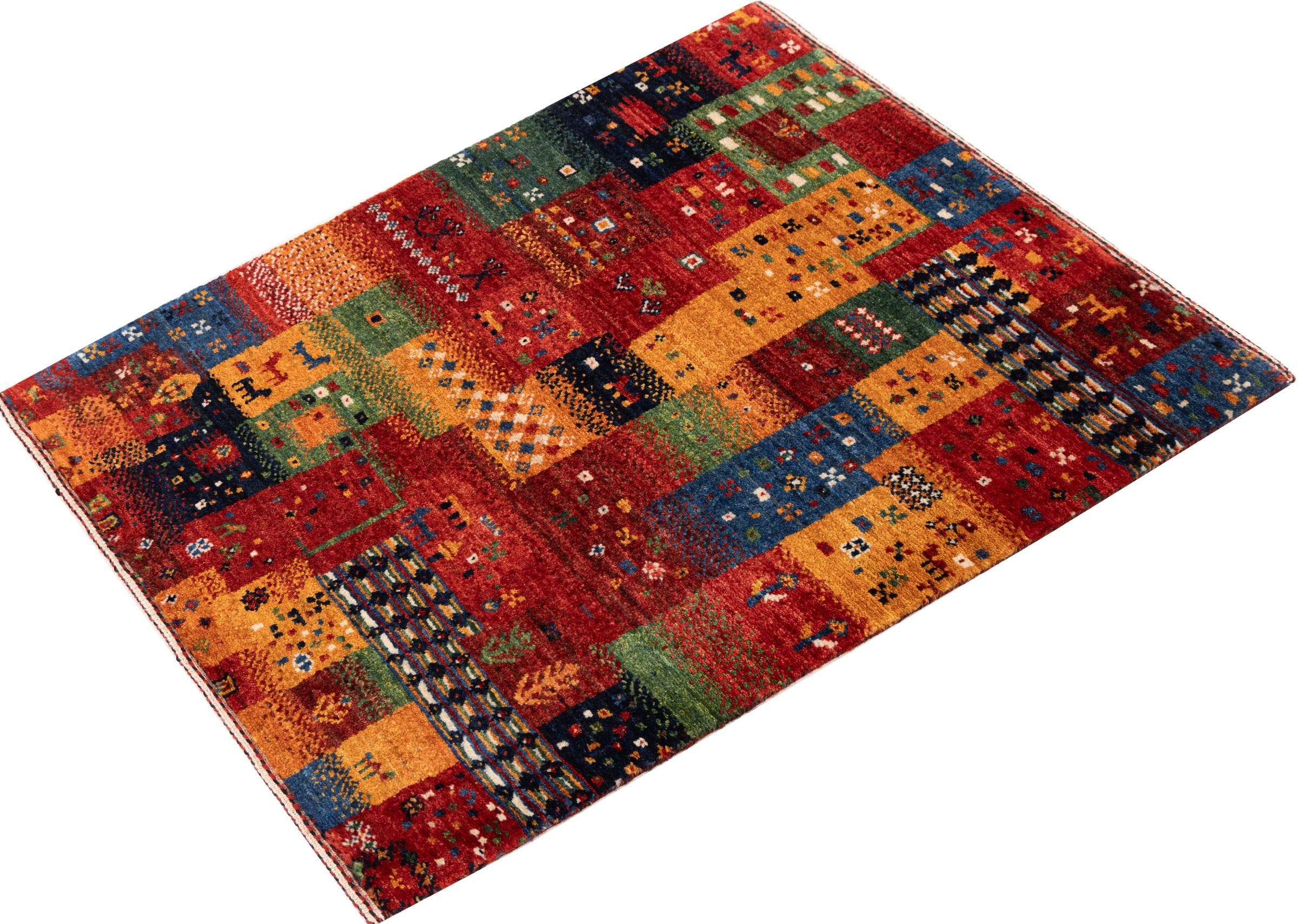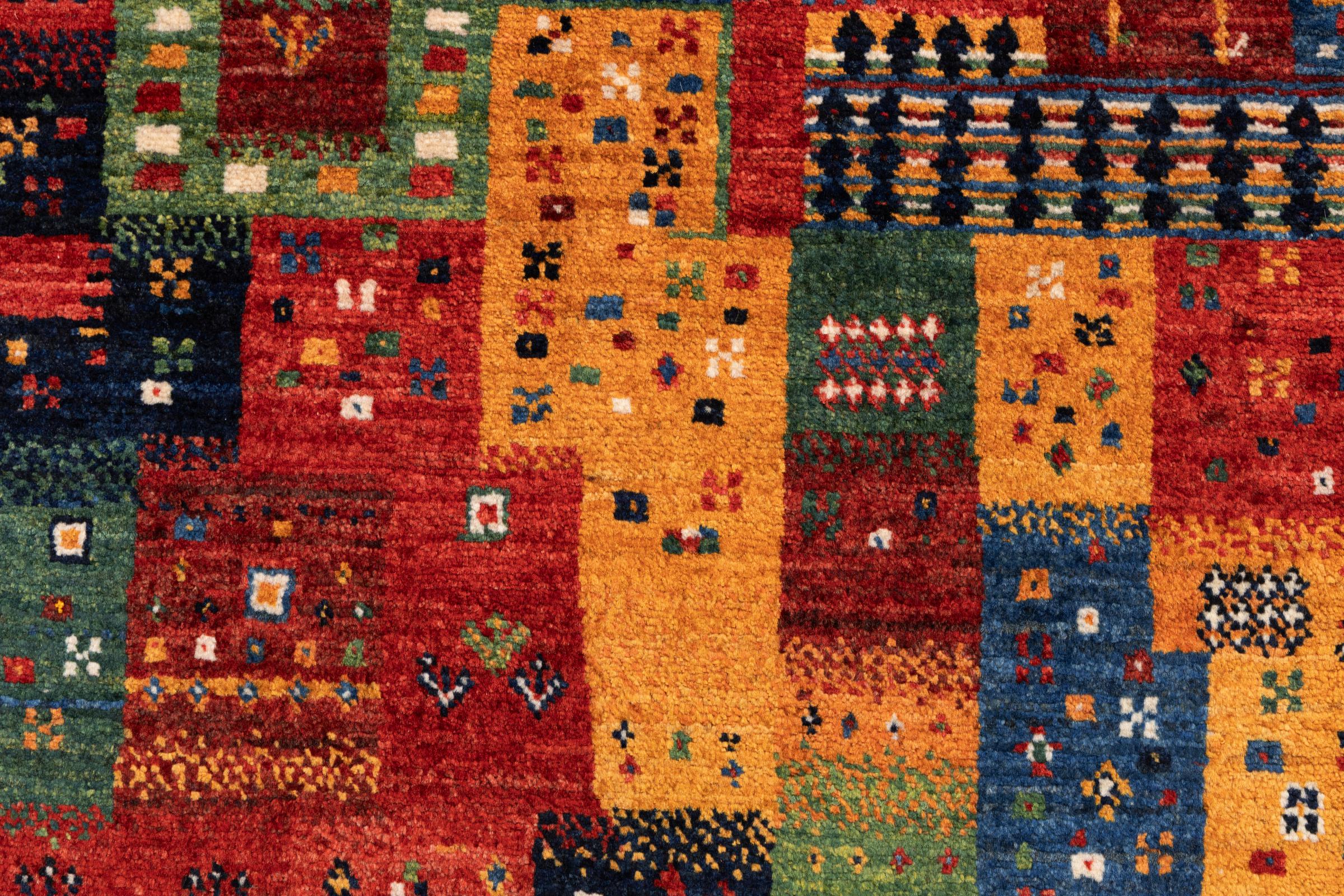 Een verfijning van de al bekende Gabbeh-tapijten: Dit is deze Perzische Gabbeh Loribaft. Het weet indruk te maken met zijn fijnere weefsel en prachtige ontwerp. Het werd door Loren in het zuiden van Perzië met de hand geknoopt van de beste handgesponnen schapenwol. Voor het verven van de wol worden uitsluitend pure plantaardige kleurstoffen gebruikt. Met dit vloerkleed haal je de hoogste standaard van een Gabbeh-tapijt in huis.
