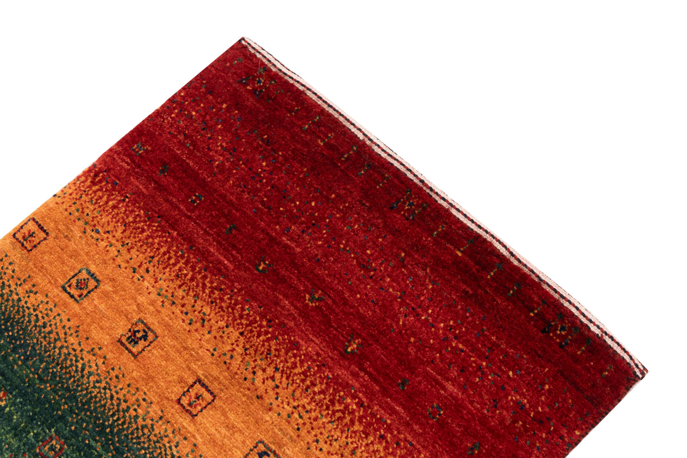 Een verfijning van de al bekende Gabbeh-tapijten: Dit is deze Perzische Gabbeh Loribaft. Het weet indruk te maken met zijn fijnere weefsel en prachtige ontwerp. Het werd door Loren in het zuiden van Perzië met de hand geknoopt van de beste handgesponnen schapenwol. Voor het verven van de wol worden uitsluitend pure plantaardige kleurstoffen gebruikt. Met dit vloerkleed haal je de hoogste standaard van een Gabbeh-tapijt in huis.