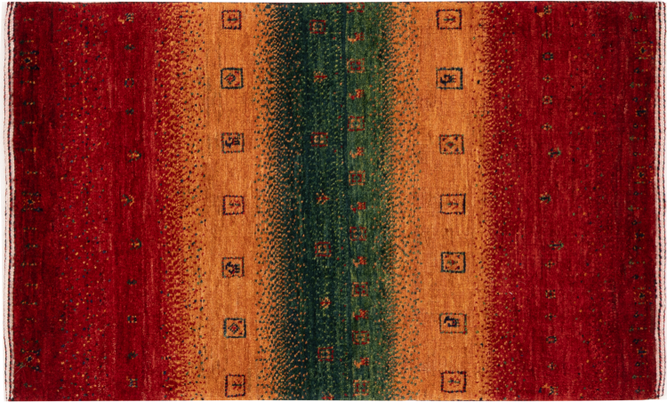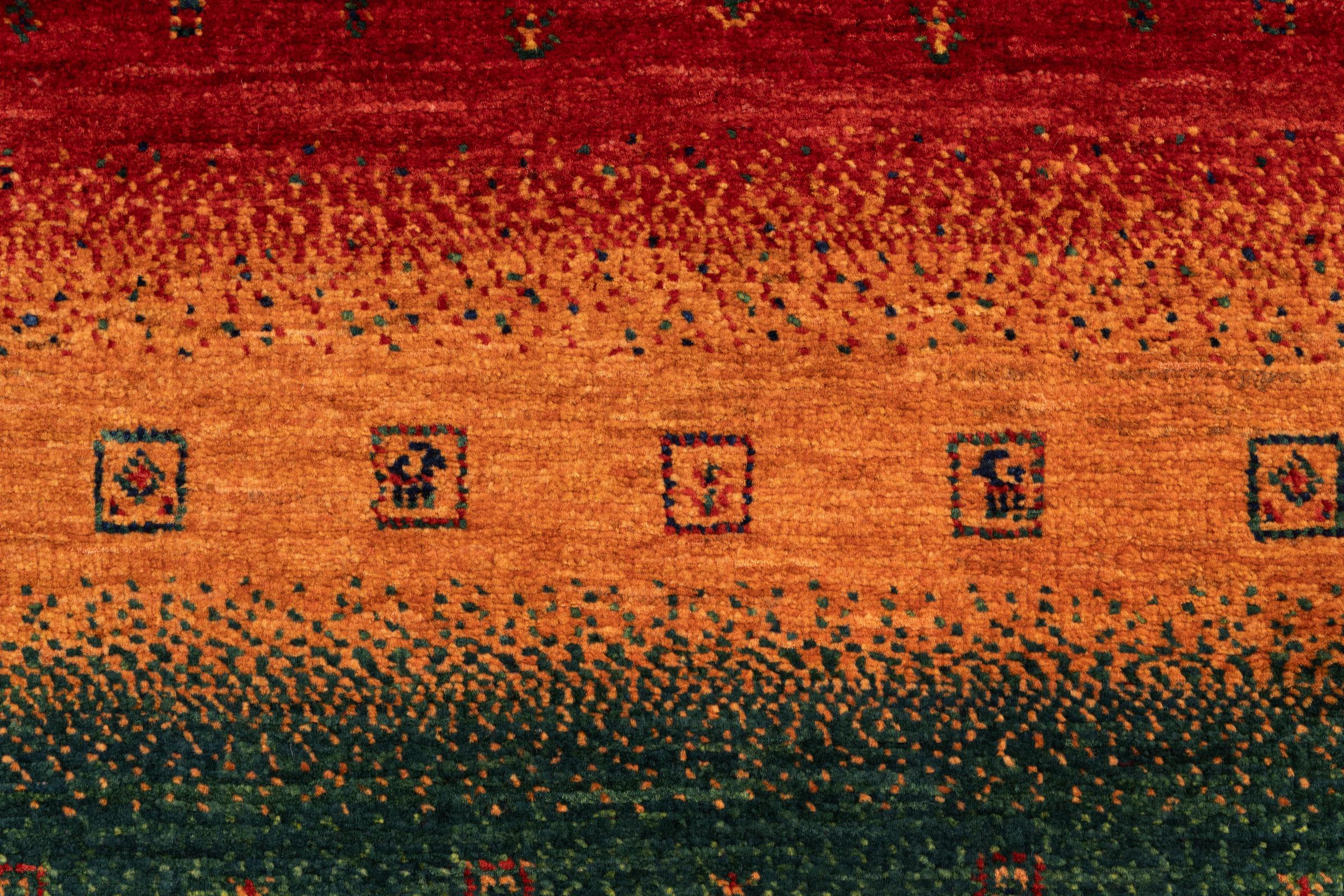 Dit prachtige tapijt is een Perzisch Gabbeh-tapijt en behoort daarom tot de hoogste kwaliteit Gabbeh-tapijten. De tapijten worden geknoopt door nomaden of semi-nomaden in Iran volgens traditioneel vakmanschap. De eenvoudige motieven en patronen zijn vooral geïnspireerd op de directe omgeving van de nomaden. Zo zijn er bijvoorbeeld kamelen, bomen of struiken te vinden op de traditionele tapijten. De Perzische Gabbeh-tapijten zijn gemaakt van wol van lokaal opgefokte kuddes schapen. De wol wordt dus meestal nog met de hand gesponnen. Elk van deze oosterse tapijten belichaamt dus een uniek karakter van de eeuwenoude cultuur.