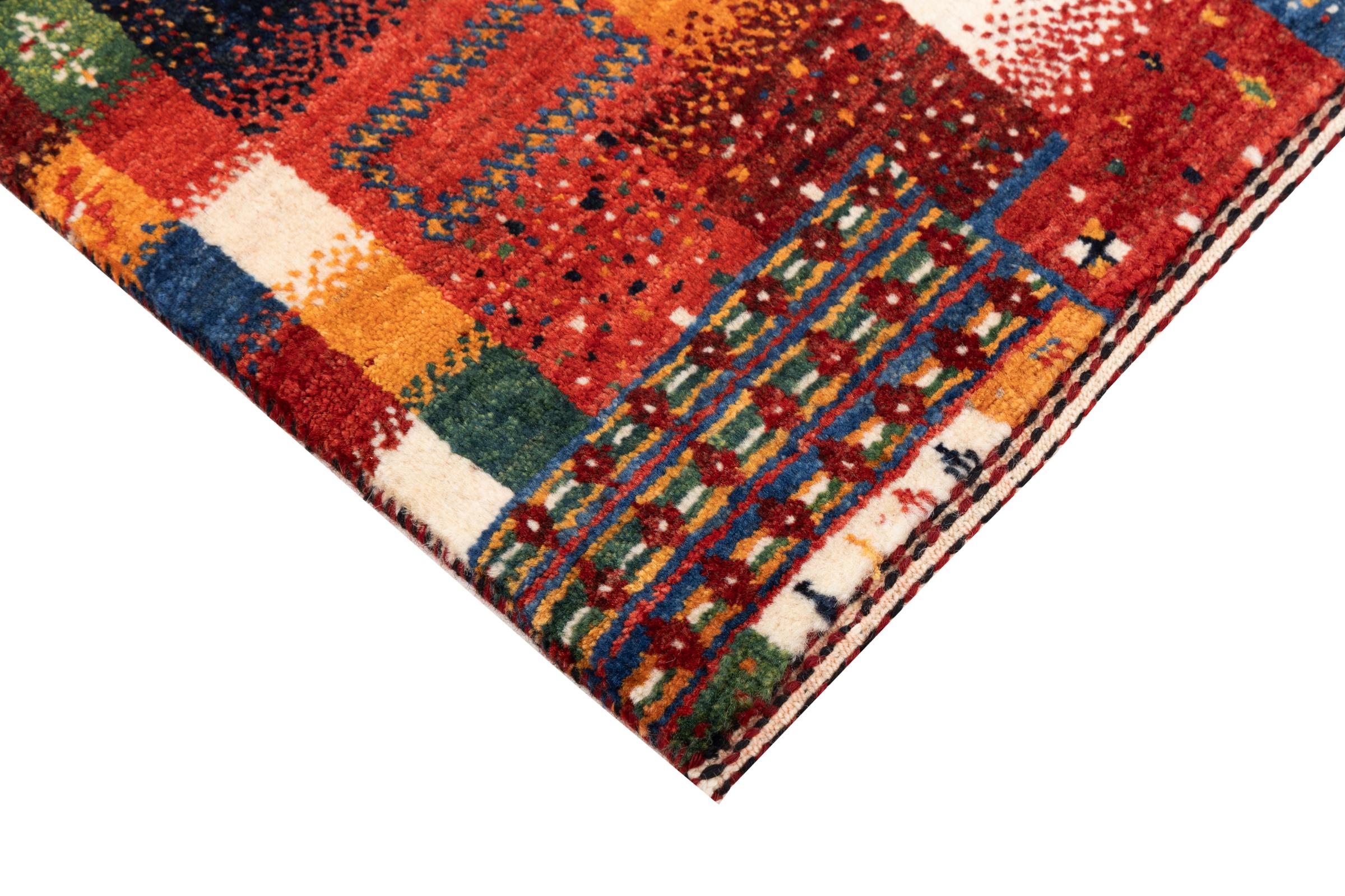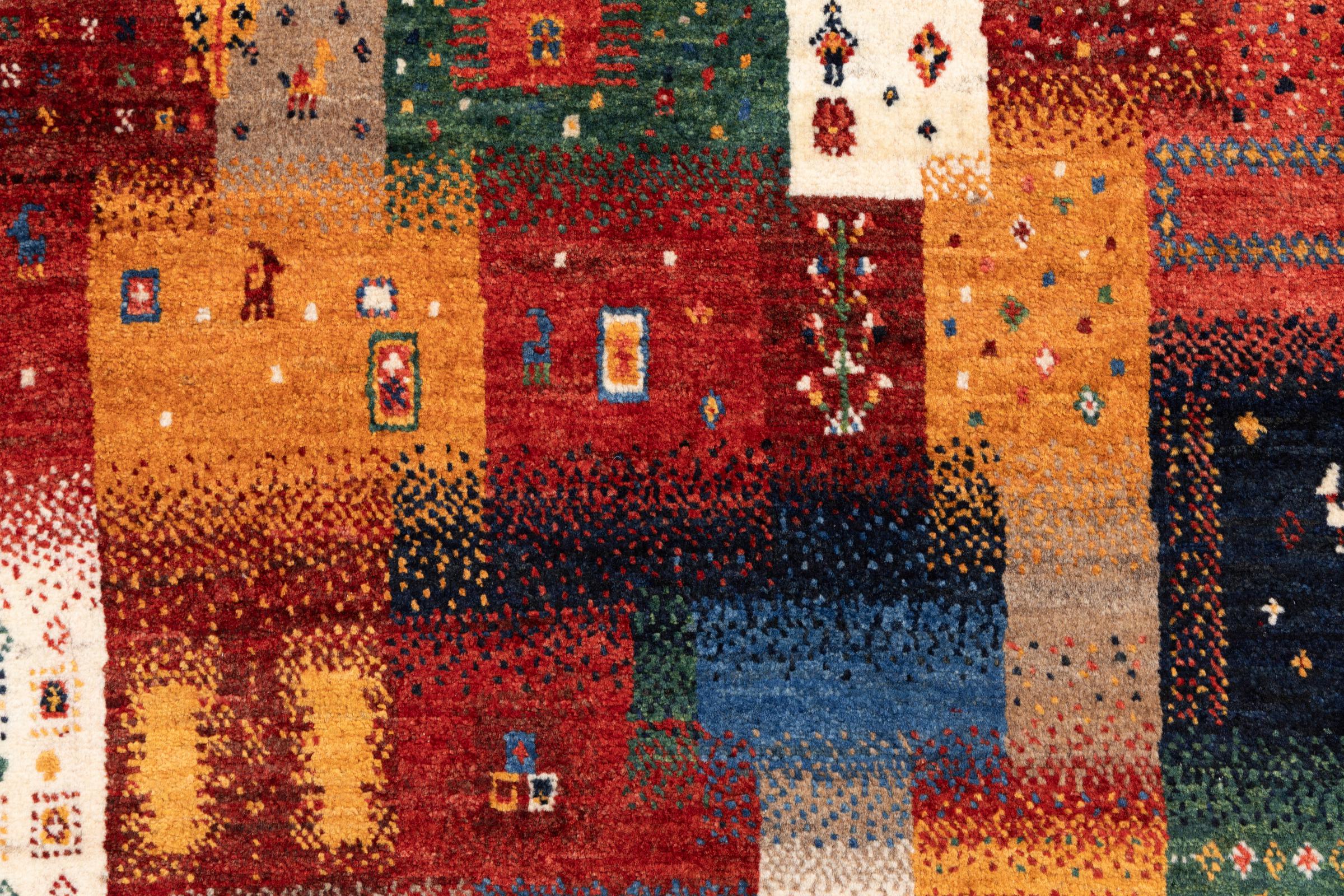 Dit prachtige tapijt is een Perzisch Gabbeh-tapijt en behoort daarom tot de hoogste kwaliteit Gabbeh-tapijten. De tapijten worden geknoopt door nomaden of semi-nomaden in Iran volgens traditioneel vakmanschap. De eenvoudige motieven en patronen zijn vooral geïnspireerd op de directe omgeving van de nomaden. Zo zijn er bijvoorbeeld kamelen, bomen of struiken te vinden op de traditionele tapijten. De Perzische Gabbeh-tapijten zijn gemaakt van wol van lokaal opgefokte kuddes schapen. De wol wordt dus meestal nog met de hand gesponnen. Elk van deze oosterse tapijten belichaamt dus een uniek karakter van de eeuwenoude cultuur.