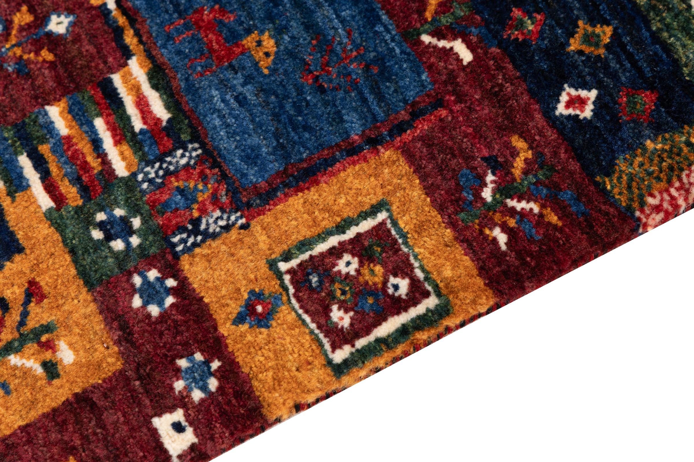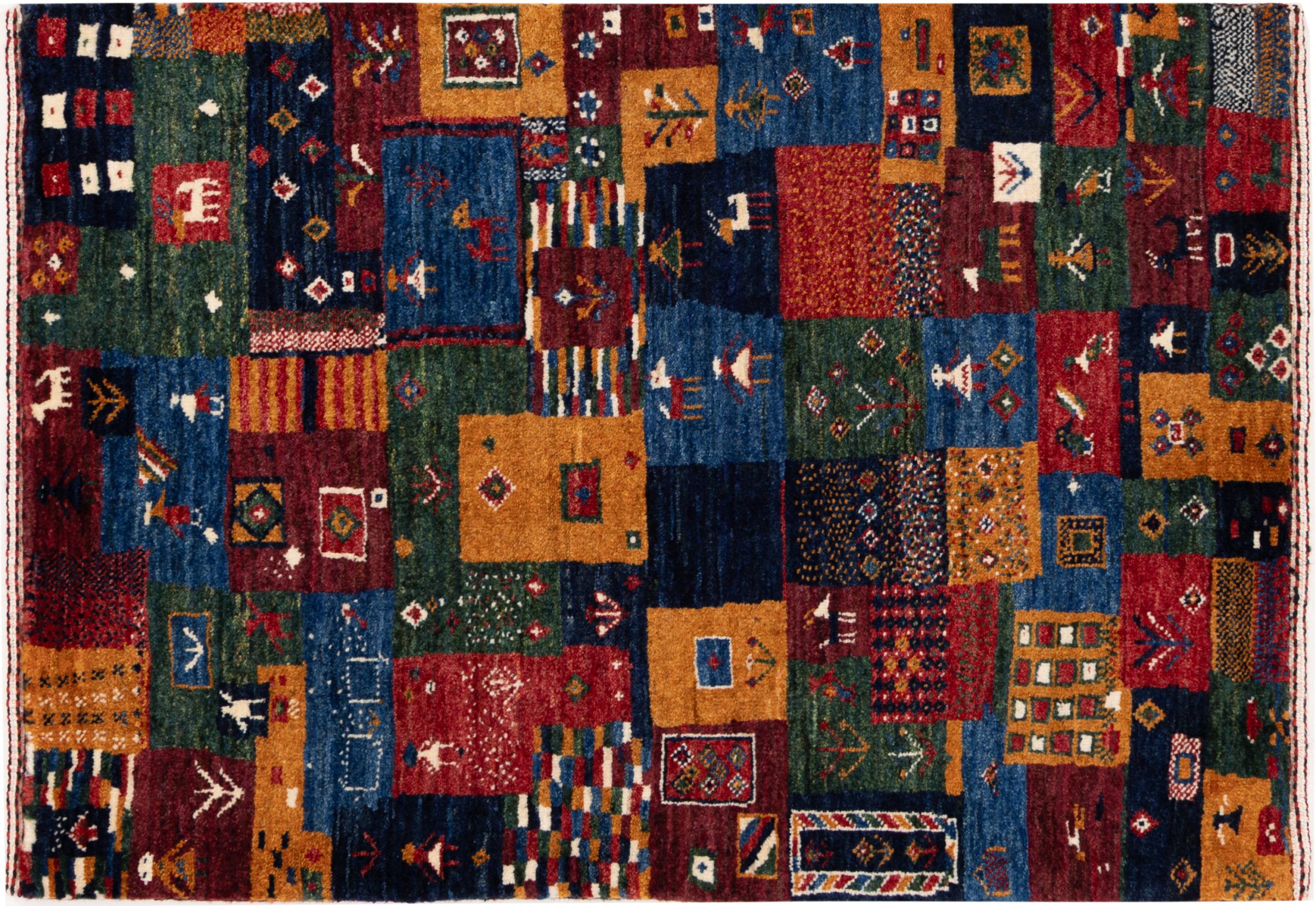 Dit prachtige tapijt is een Perzisch Gabbeh-tapijt en behoort daarom tot de hoogste kwaliteit Gabbeh-tapijten. De tapijten worden geknoopt door nomaden of semi-nomaden in Iran volgens traditioneel vakmanschap. De eenvoudige motieven en patronen zijn vooral geïnspireerd op de directe omgeving van de nomaden. Zo zijn er bijvoorbeeld kamelen, bomen of struiken te vinden op de traditionele tapijten. De Perzische Gabbeh-tapijten zijn gemaakt van wol van lokaal opgefokte kuddes schapen. De wol wordt dus meestal nog met de hand gesponnen. Elk van deze oosterse tapijten belichaamt dus een uniek karakter van de eeuwenoude cultuur.