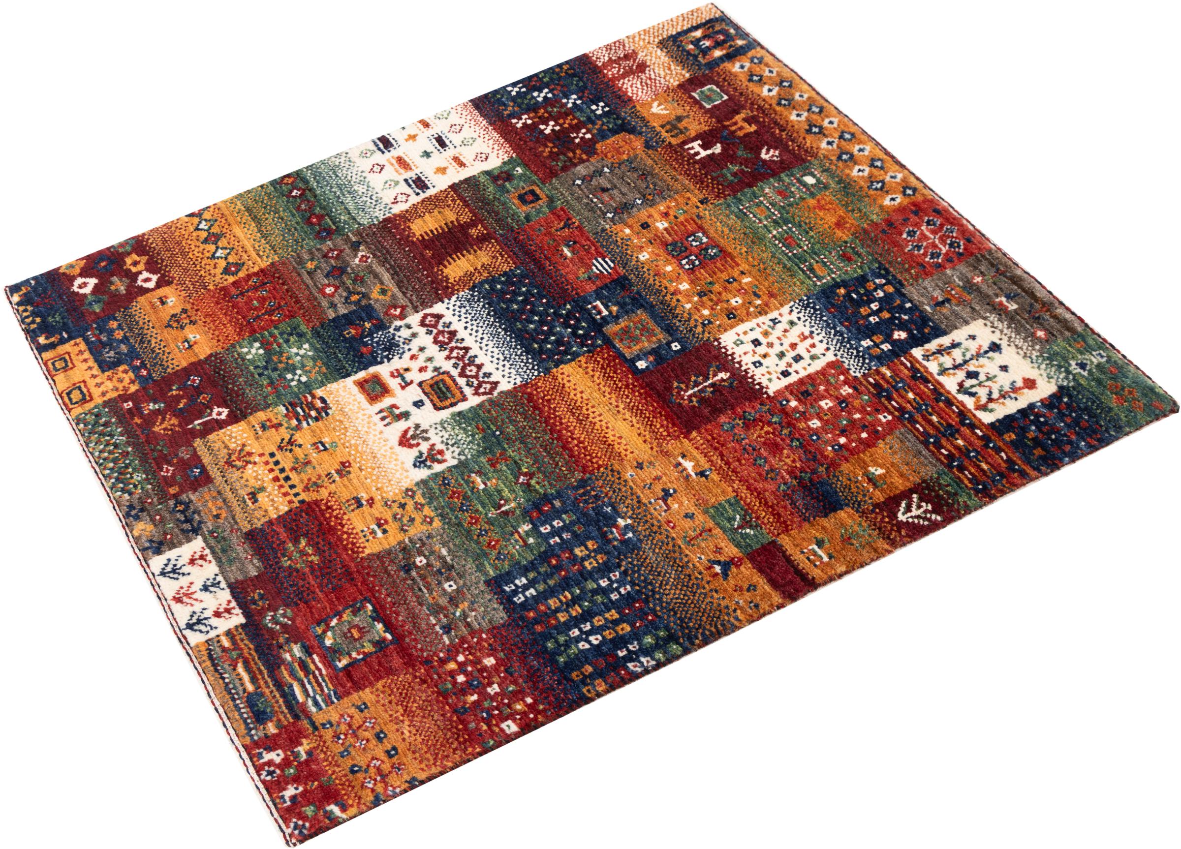 Een verfijning van de al bekende Gabbeh-tapijten: Dit is deze Perzische Gabbeh Loribaft. Het weet indruk te maken met zijn fijnere weefsel en prachtige ontwerp. Het werd door Loren in het zuiden van Perzië met de hand geknoopt van de beste handgesponnen schapenwol. Voor het verven van de wol worden uitsluitend pure plantaardige kleurstoffen gebruikt. Met dit vloerkleed haal je de hoogste standaard van een Gabbeh-tapijt in huis.
