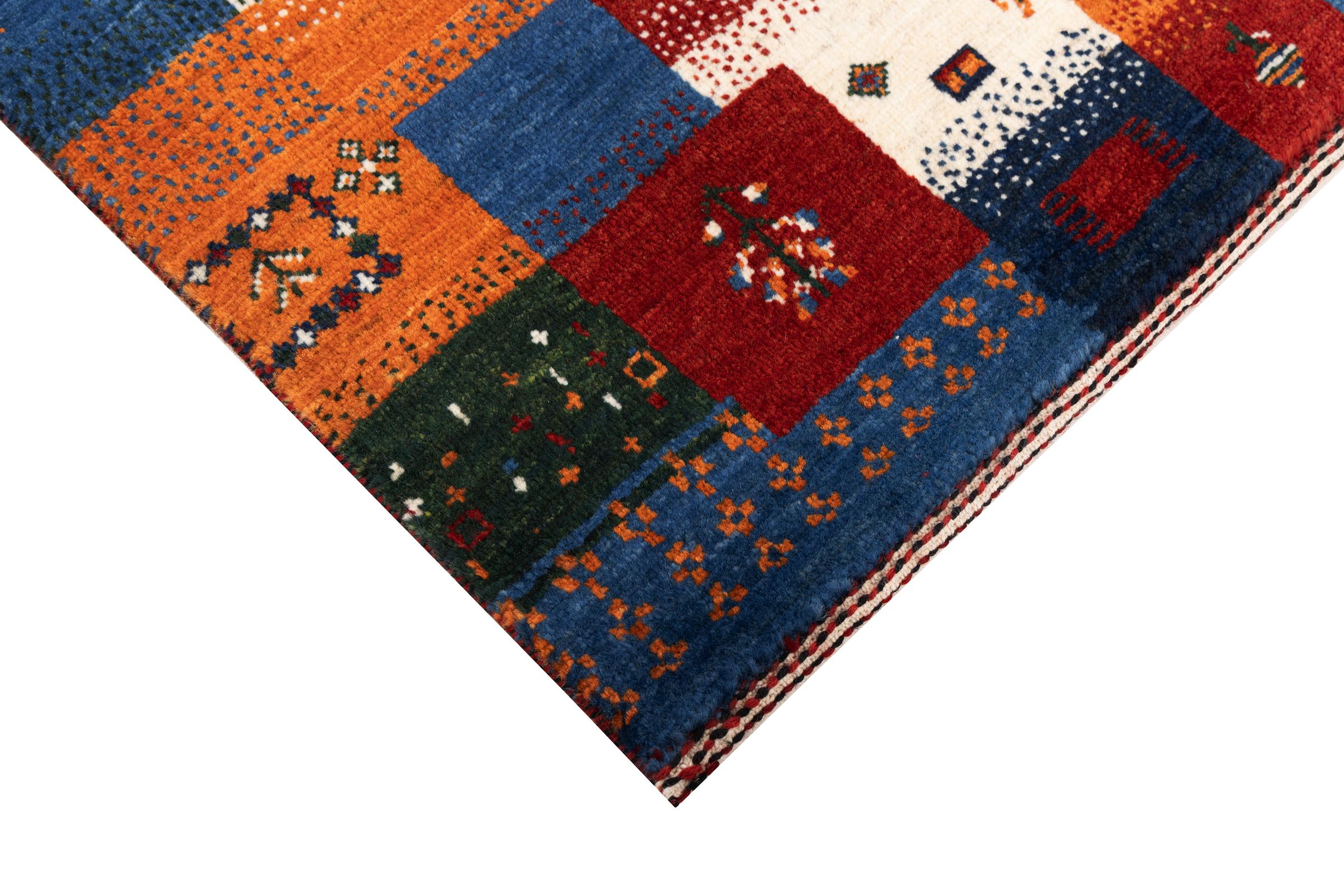 Een verfijning van de al bekende Gabbeh-tapijten: Dit is deze Perzische Gabbeh Loribaft. Het weet indruk te maken met zijn fijnere weefsel en prachtige ontwerp. Het werd door Loren in het zuiden van Perzië met de hand geknoopt van de beste handgesponnen schapenwol. Voor het verven van de wol worden uitsluitend pure plantaardige kleurstoffen gebruikt. Met dit vloerkleed haal je de hoogste standaard van een Gabbeh-tapijt in huis.