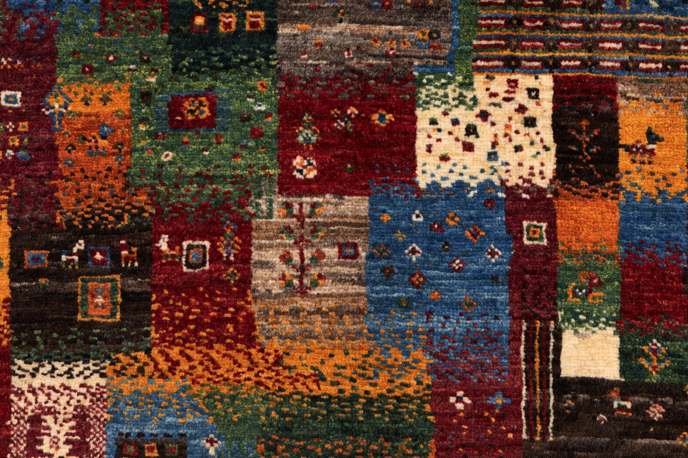 Dit prachtige tapijt is een Perzisch Gabbeh-tapijt en behoort daarom tot de hoogste kwaliteit Gabbeh-tapijten. De tapijten worden geknoopt door nomaden of semi-nomaden in Iran volgens traditioneel vakmanschap. De eenvoudige motieven en patronen zijn vooral geïnspireerd op de directe omgeving van de nomaden. Zo zijn er bijvoorbeeld kamelen, bomen of struiken te vinden op de traditionele tapijten. De Perzische Gabbeh-tapijten zijn gemaakt van wol van lokaal opgefokte kuddes schapen. De wol wordt dus meestal nog met de hand gesponnen. Elk van deze oosterse tapijten belichaamt dus een uniek karakter van de eeuwenoude cultuur.