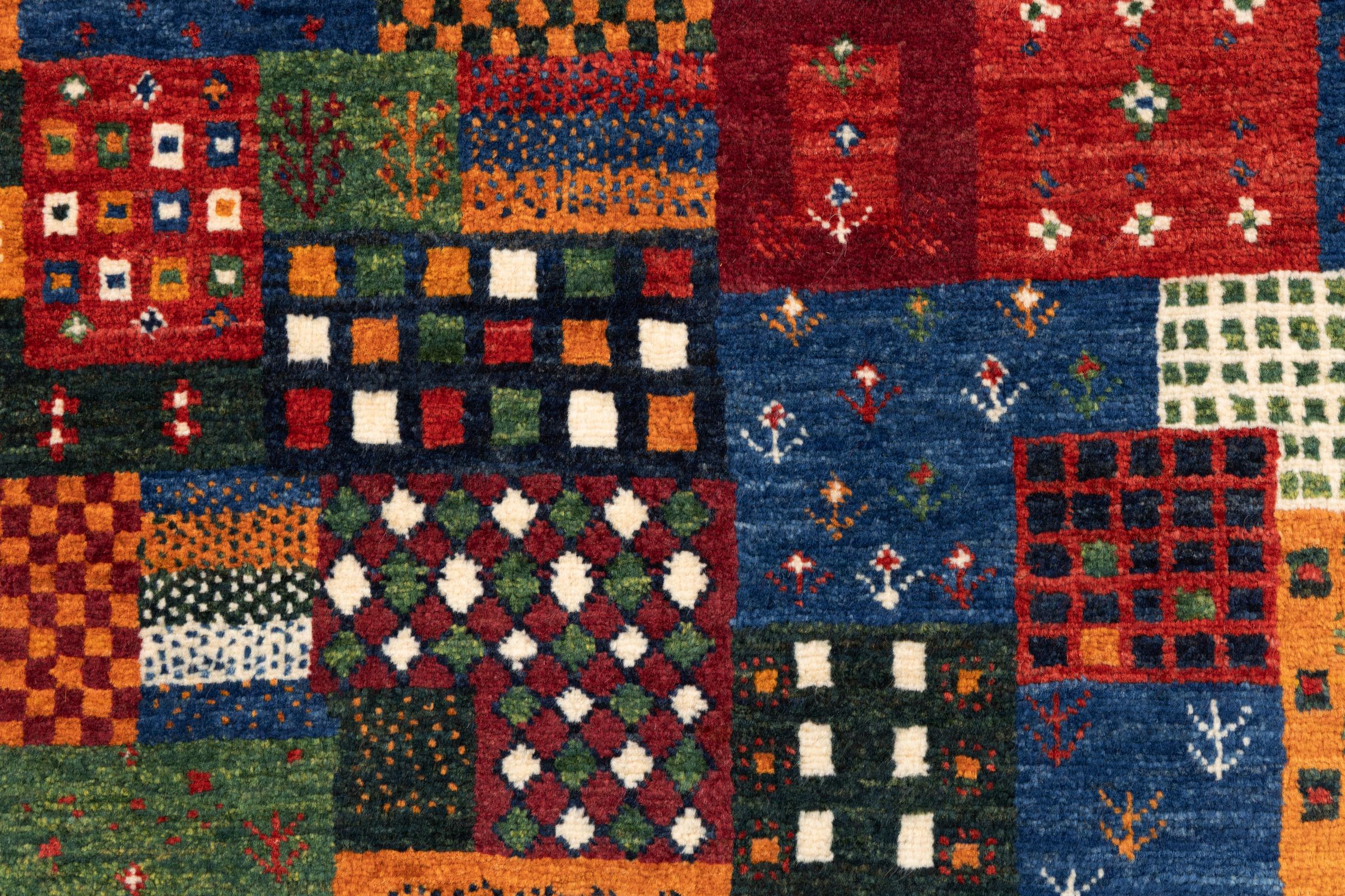 Een verfijning van de al bekende Gabbeh-tapijten: Dit is deze Perzische Gabbeh Loribaft. Het weet indruk te maken met zijn fijnere weefsel en prachtige ontwerp. Het werd door Loren in het zuiden van Perzië met de hand geknoopt van de beste handgesponnen schapenwol. Voor het verven van de wol worden uitsluitend pure plantaardige kleurstoffen gebruikt. Met dit vloerkleed haal je de hoogste standaard van een Gabbeh-tapijt in huis.