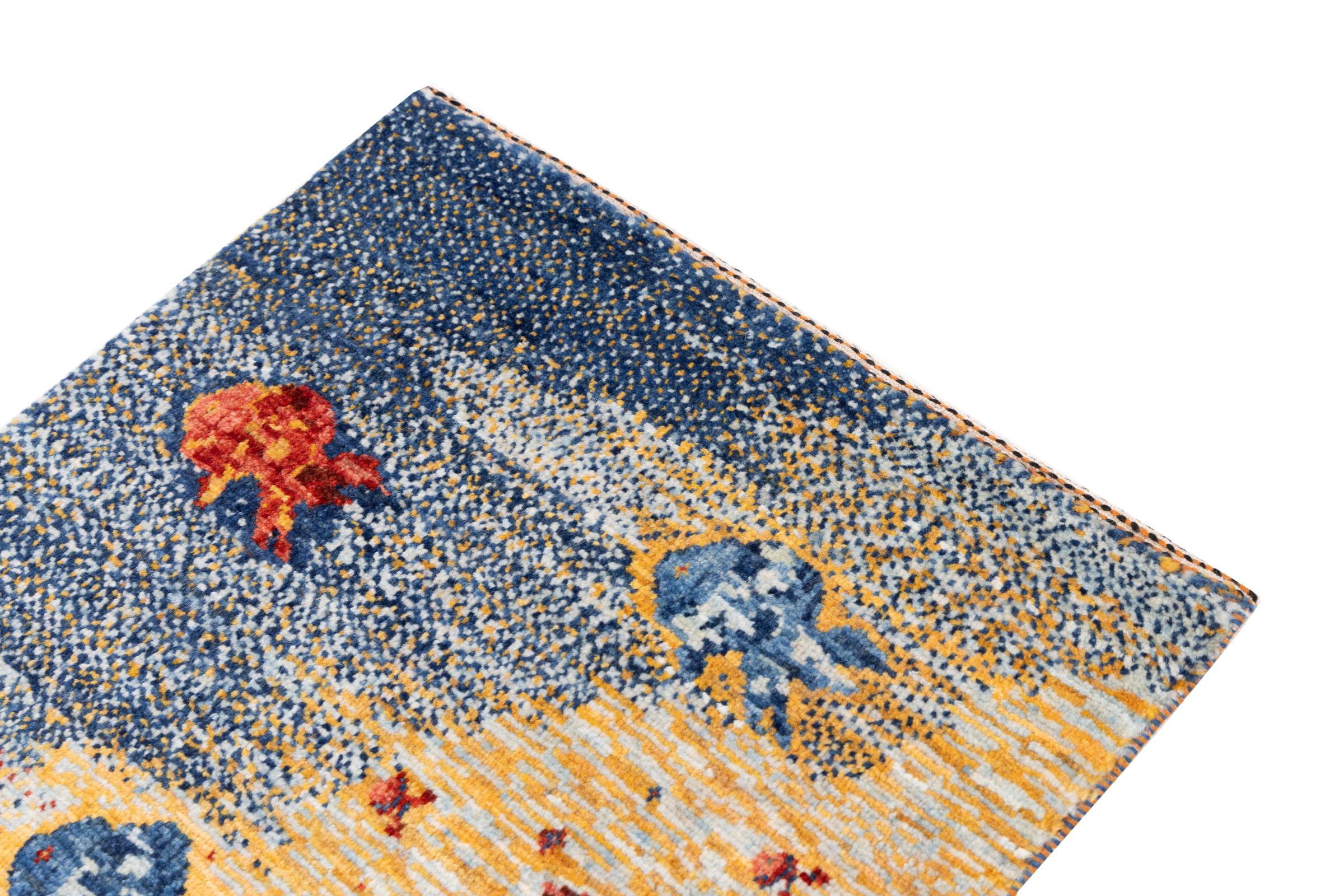 Dit prachtige tapijt is een Perzisch Gabbeh-tapijt en behoort daarom tot de hoogste kwaliteit Gabbeh-tapijten. De tapijten worden geknoopt door nomaden of semi-nomaden in Iran volgens traditioneel vakmanschap. De eenvoudige motieven en patronen zijn vooral geïnspireerd op de directe omgeving van de nomaden. Zo zijn er bijvoorbeeld kamelen, bomen of struiken te vinden op de traditionele tapijten. De Perzische Gabbeh-tapijten zijn gemaakt van wol van lokaal opgefokte kuddes schapen. De wol wordt dus meestal nog met de hand gesponnen. Elk van deze oosterse tapijten belichaamt dus een uniek karakter van de eeuwenoude cultuur.