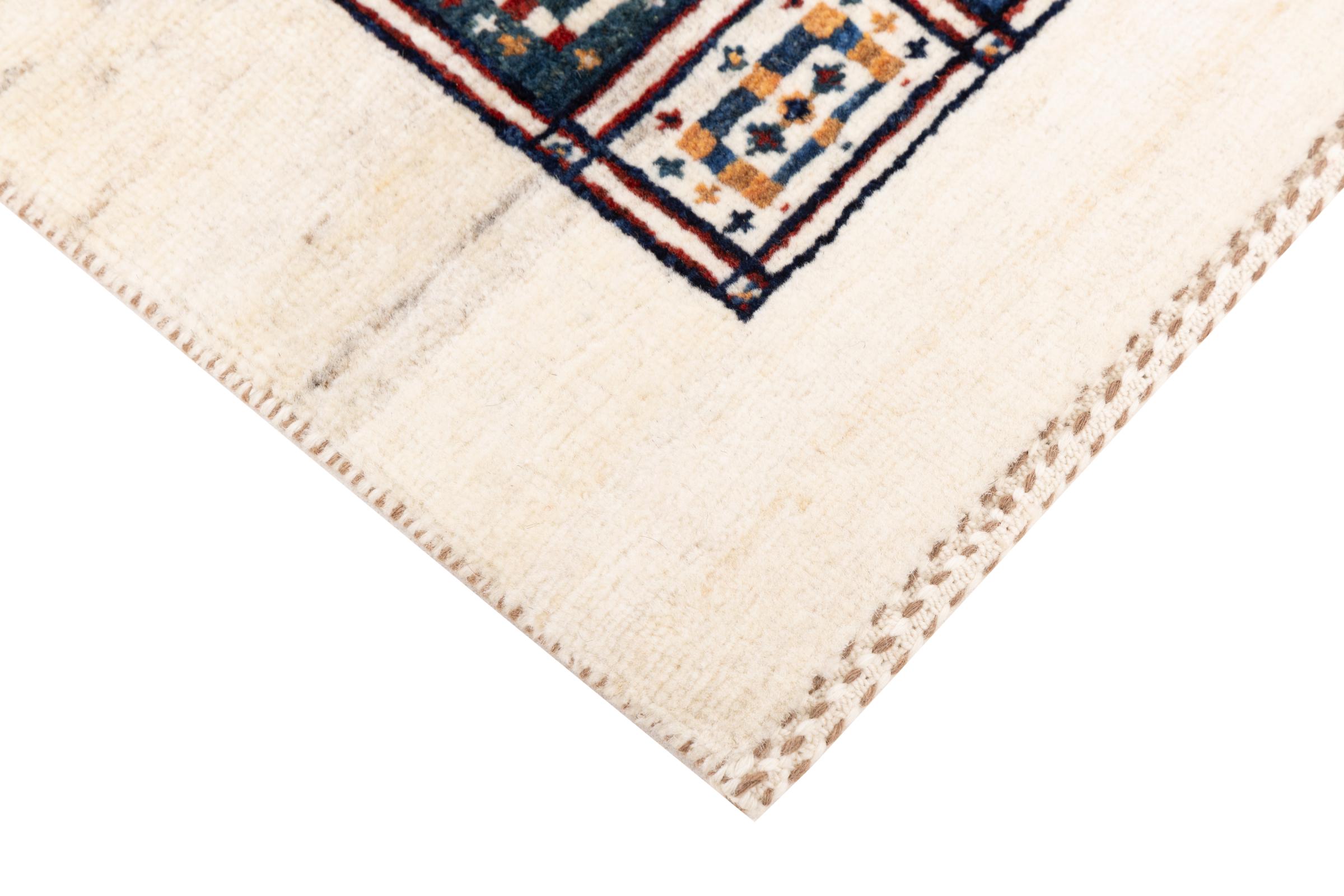Een verfijning van de al bekende Gabbeh-tapijten: Dit is deze Perzische Gabbeh Loribaft. Het weet indruk te maken met zijn fijnere weefsel en prachtige ontwerp. Het werd door Loren in het zuiden van Perzië met de hand geknoopt van de beste handgesponnen schapenwol. Voor het verven van de wol worden uitsluitend pure plantaardige kleurstoffen gebruikt. Met dit vloerkleed haal je de hoogste standaard van een Gabbeh-tapijt in huis.
