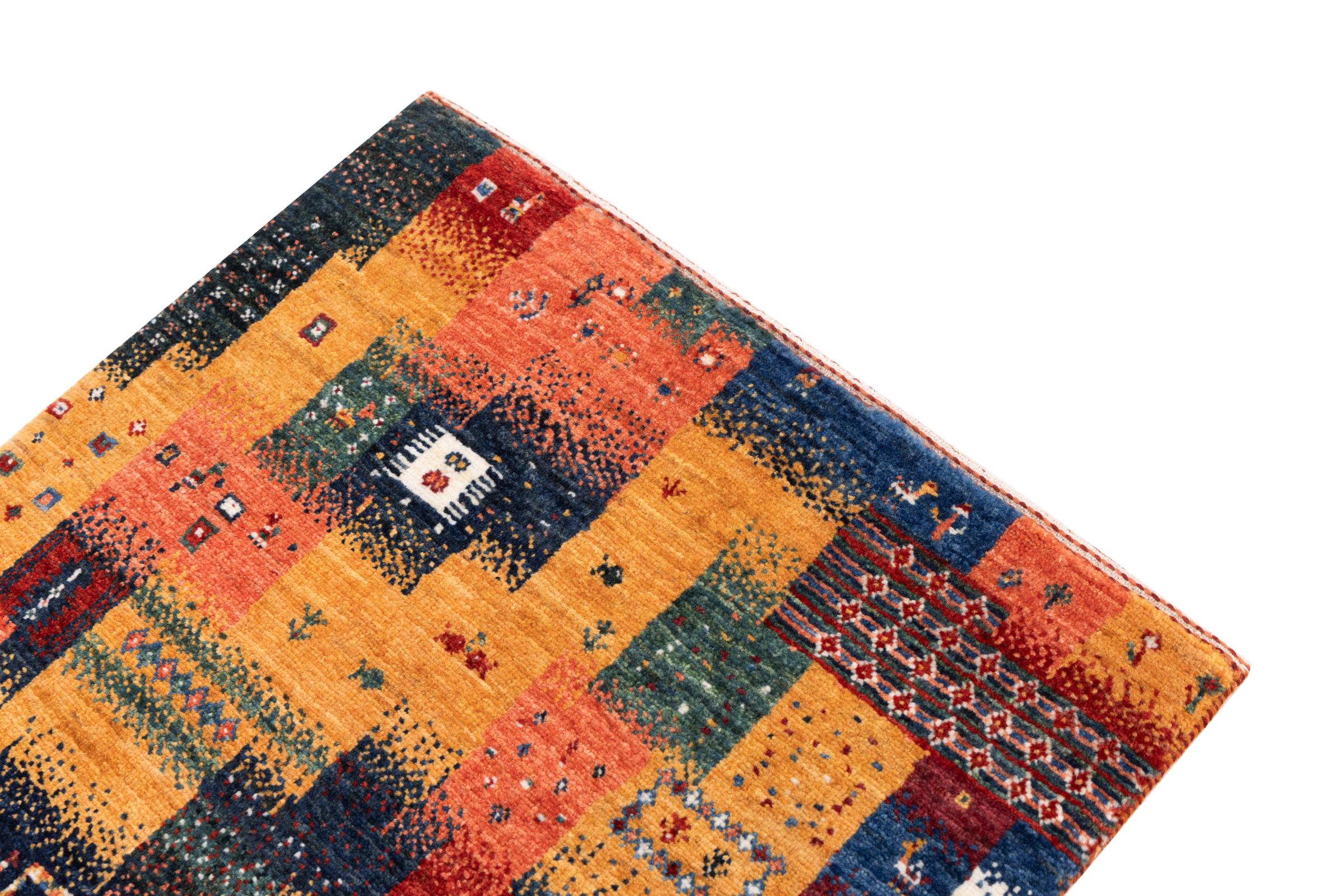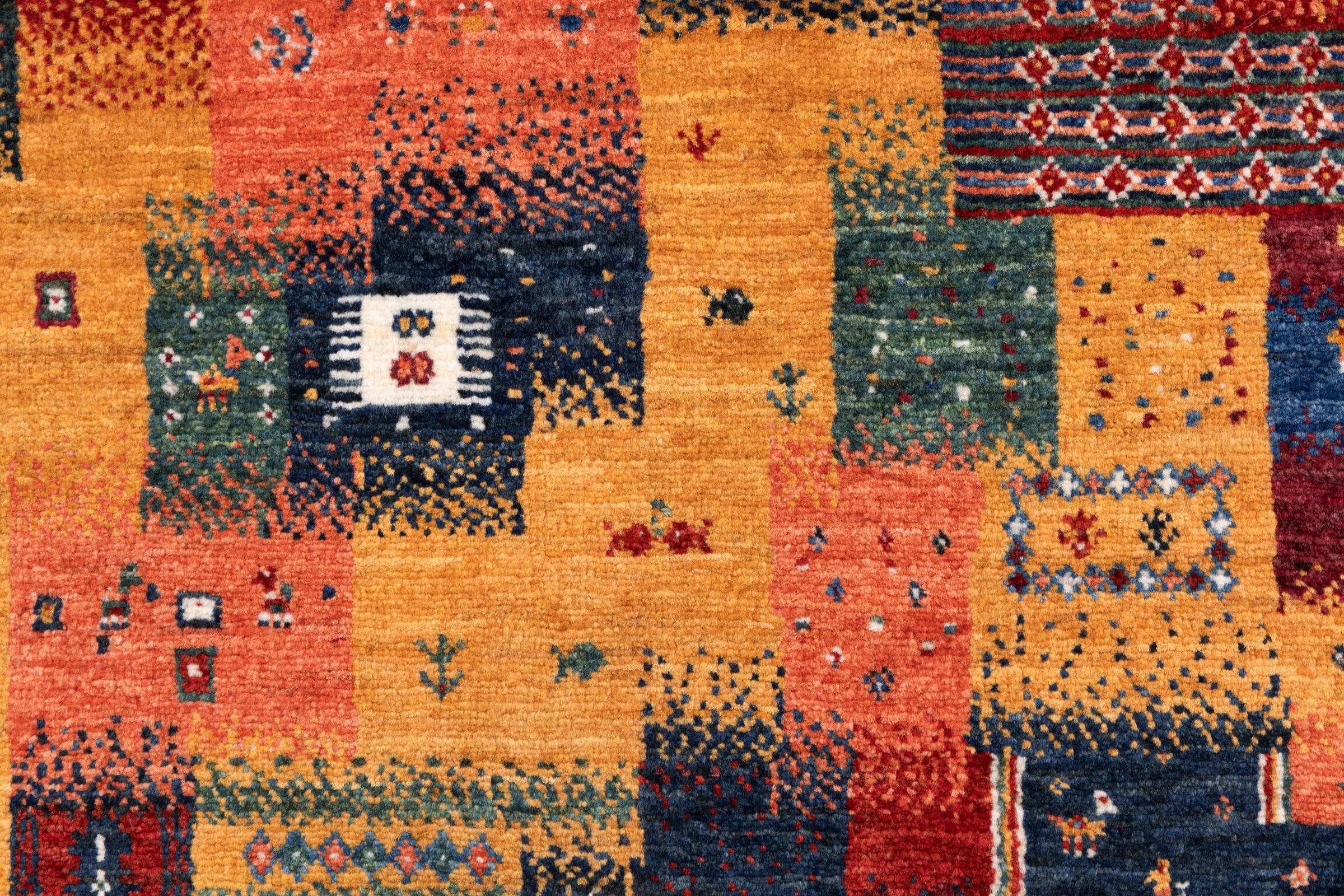 Een verfijning van de al bekende Gabbeh-tapijten: Dit is deze Perzische Gabbeh Loribaft. Het weet indruk te maken met zijn fijnere weefsel en prachtige ontwerp. Het werd door Loren in het zuiden van Perzië met de hand geknoopt van de beste handgesponnen schapenwol. Voor het verven van de wol worden uitsluitend pure plantaardige kleurstoffen gebruikt. Met dit vloerkleed haal je de hoogste standaard van een Gabbeh-tapijt in huis.