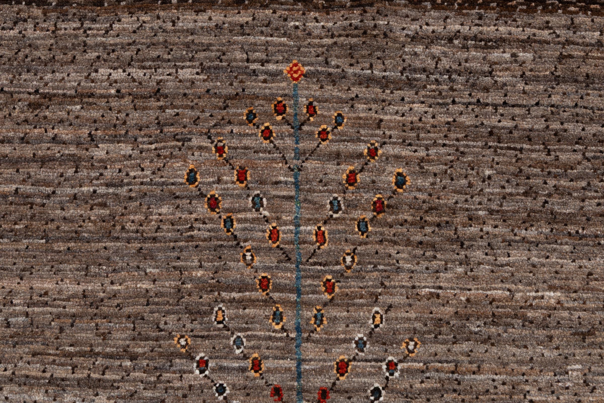 Dit prachtige tapijt is een Perzisch Gabbeh-tapijt en behoort daarom tot de hoogste kwaliteit Gabbeh-tapijten. De tapijten worden geknoopt door nomaden of semi-nomaden in Iran volgens traditioneel vakmanschap. De eenvoudige motieven en patronen zijn vooral geïnspireerd op de directe omgeving van de nomaden. Zo zijn er bijvoorbeeld kamelen, bomen of struiken te vinden op de traditionele tapijten. De Perzische Gabbeh-tapijten zijn gemaakt van wol van lokaal opgefokte kuddes schapen. De wol wordt dus meestal nog met de hand gesponnen. Elk van deze oosterse tapijten belichaamt dus een uniek karakter van de eeuwenoude cultuur.