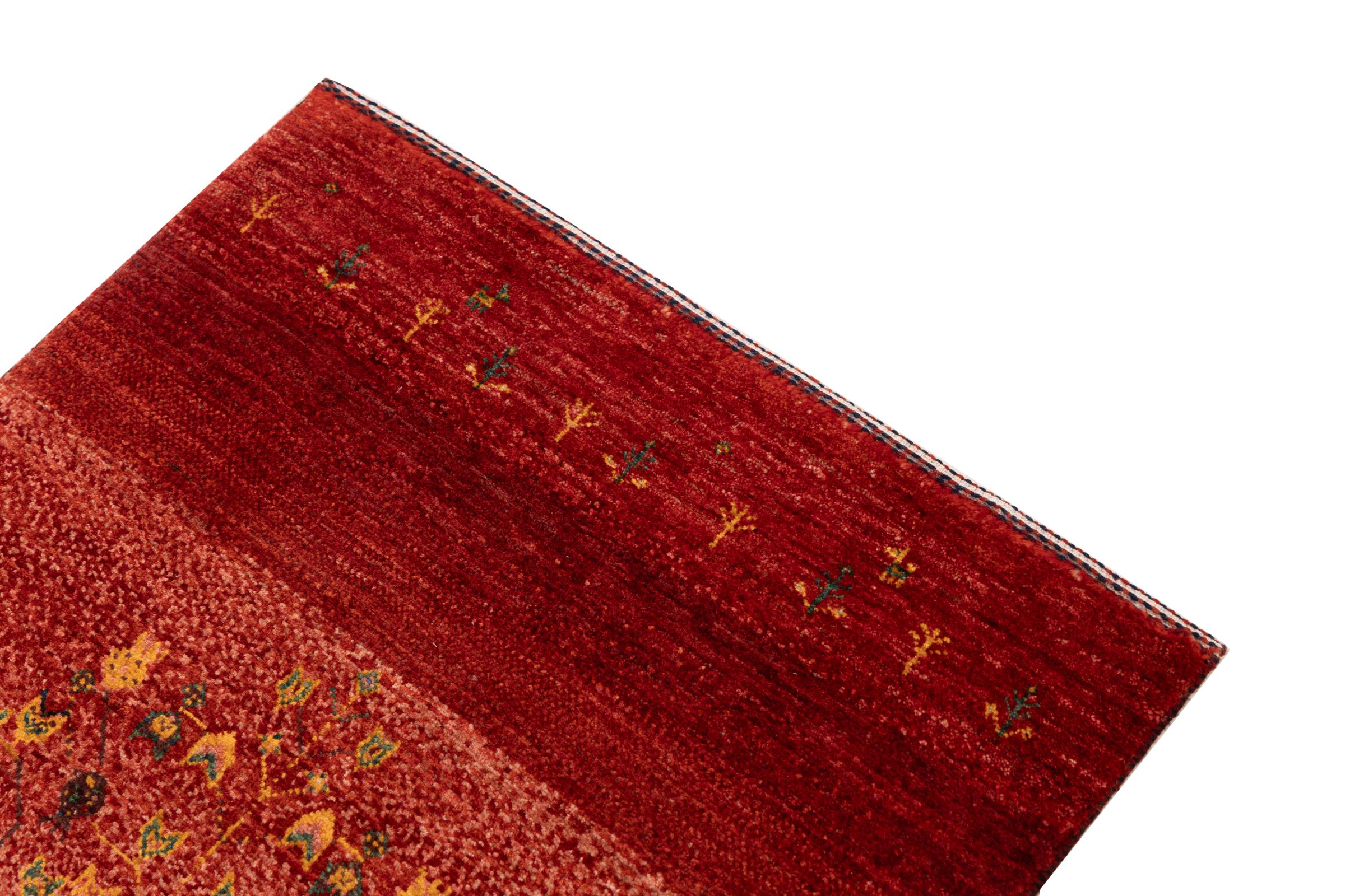 Een verfijning van de al bekende Gabbeh-tapijten: Dit is deze Perzische Gabbeh Loribaft. Het weet indruk te maken met zijn fijnere weefsel en prachtige ontwerp. Het werd door Loren in het zuiden van Perzië met de hand geknoopt van de beste handgesponnen schapenwol. Voor het verven van de wol worden uitsluitend pure plantaardige kleurstoffen gebruikt. Met dit vloerkleed haal je de hoogste standaard van een Gabbeh-tapijt in huis.