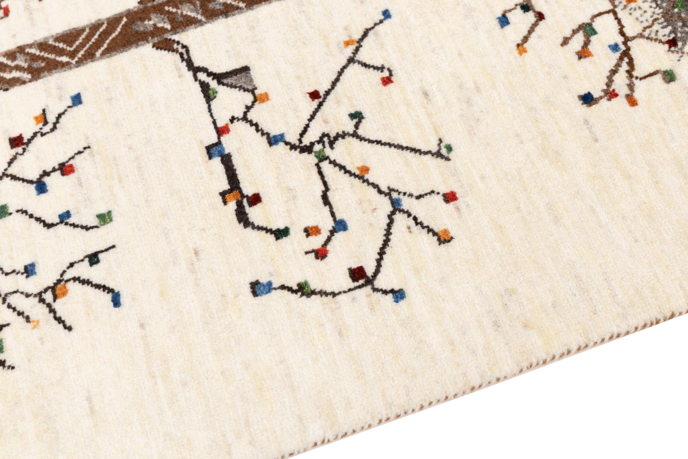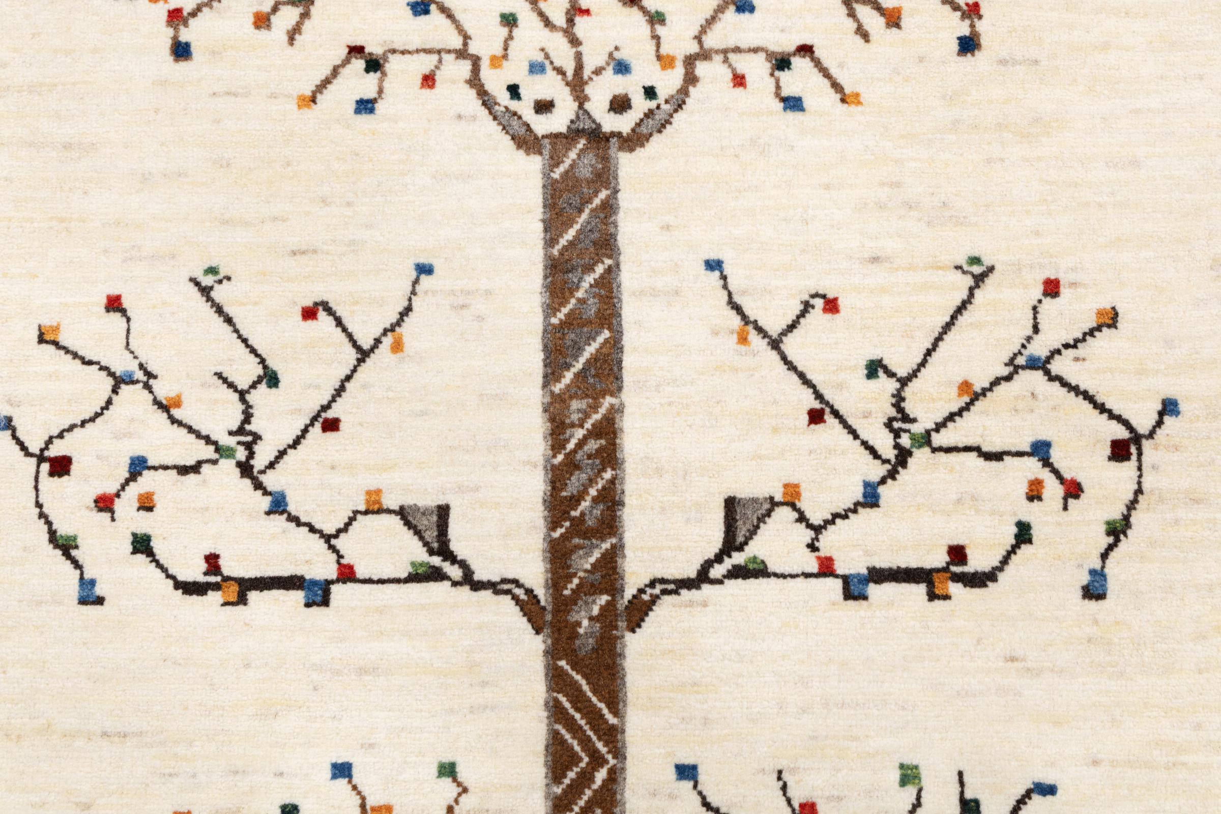 Dit prachtige tapijt is een Perzisch Gabbeh-tapijt en behoort daarom tot de hoogste kwaliteit Gabbeh-tapijten. De tapijten worden geknoopt door nomaden of semi-nomaden in Iran volgens traditioneel vakmanschap. De eenvoudige motieven en patronen zijn vooral geïnspireerd op de directe omgeving van de nomaden. Zo zijn er bijvoorbeeld kamelen, bomen of struiken te vinden op de traditionele tapijten. De Perzische Gabbeh-tapijten zijn gemaakt van wol van lokaal opgefokte kuddes schapen. De wol wordt dus meestal nog met de hand gesponnen. Elk van deze oosterse tapijten belichaamt dus een uniek karakter van de eeuwenoude cultuur.
