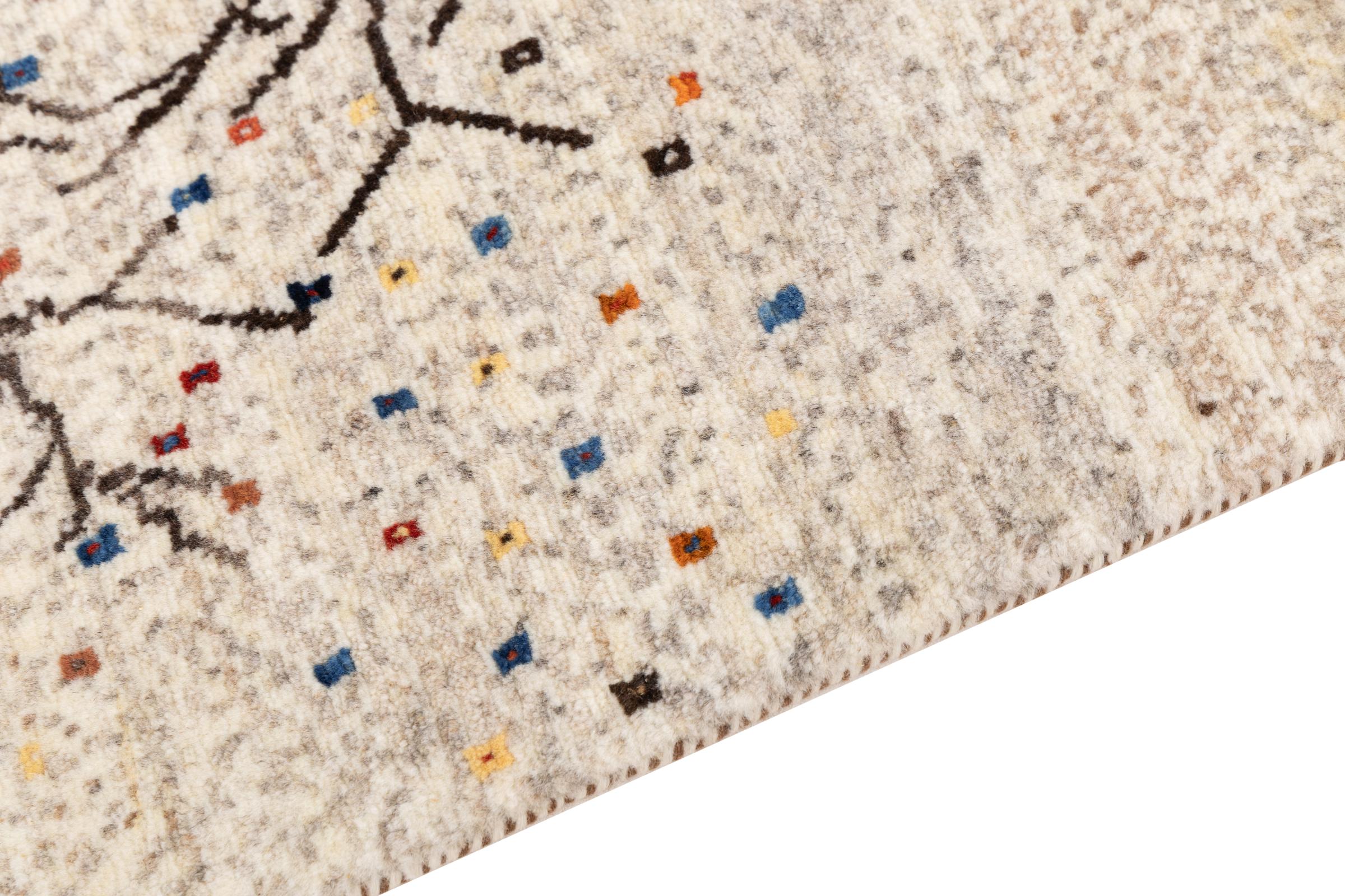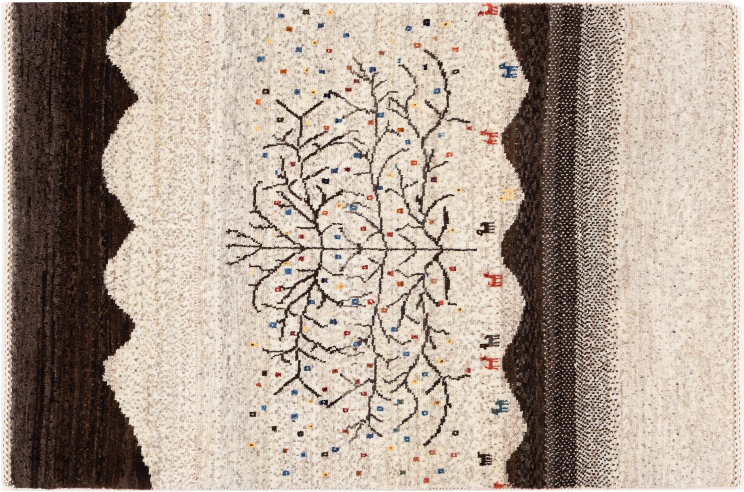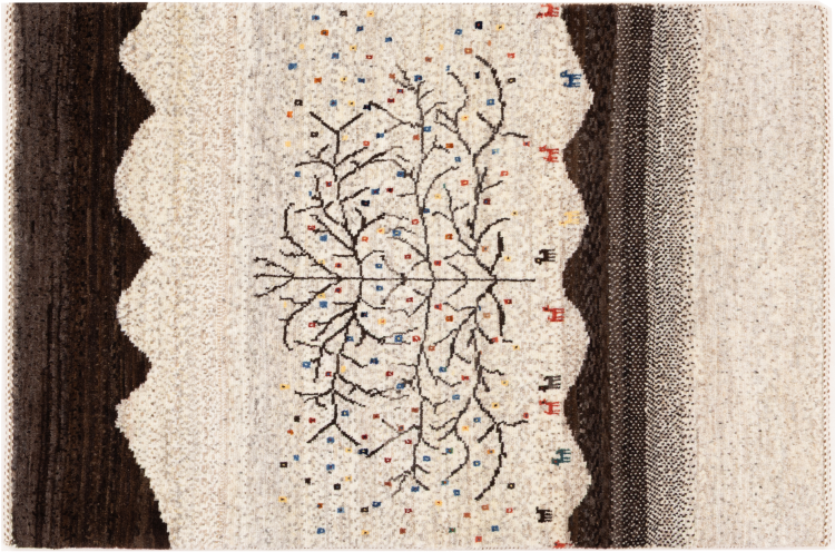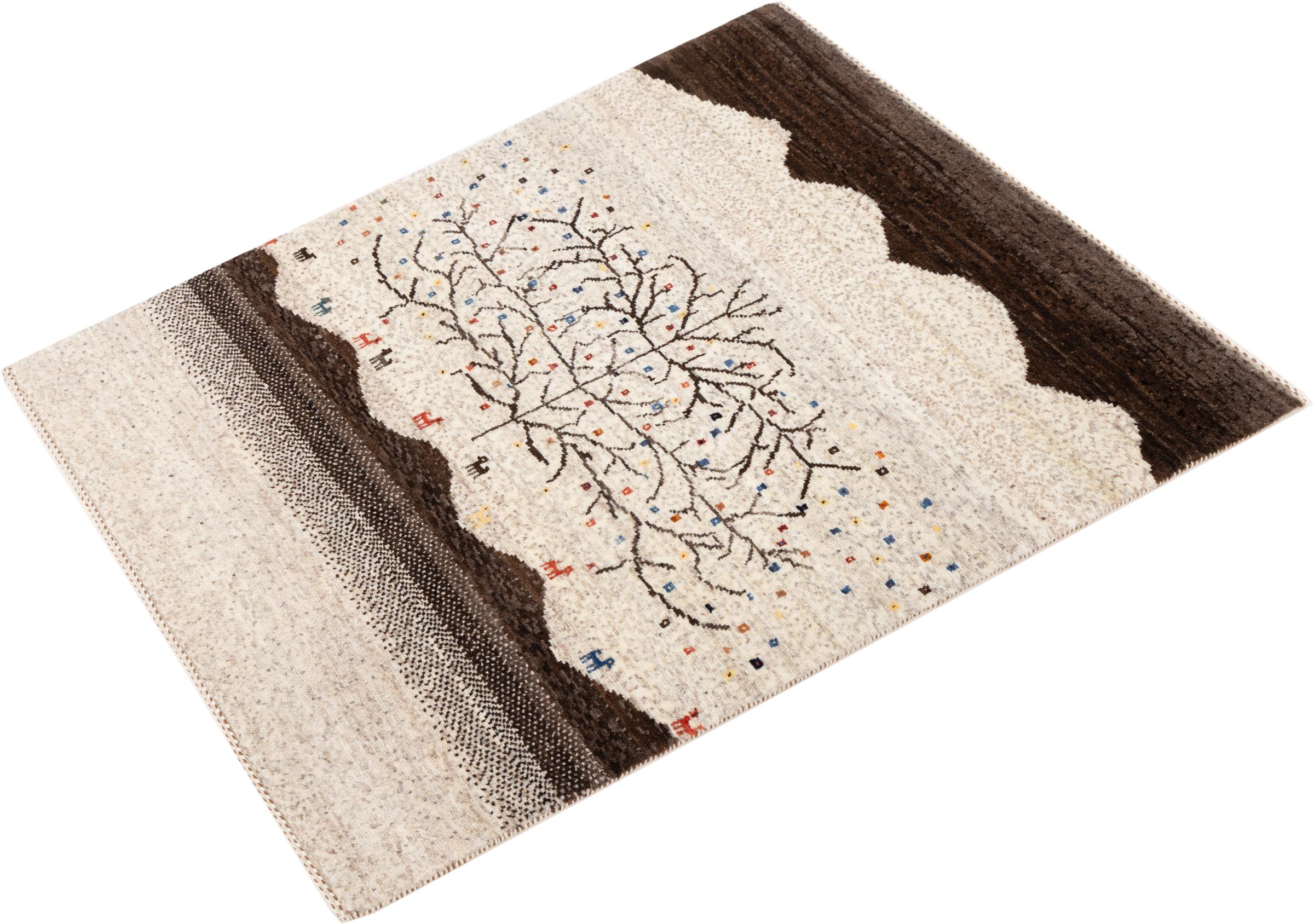 Dit prachtige tapijt is een Perzisch Gabbeh-tapijt en behoort daarom tot de hoogste kwaliteit Gabbeh-tapijten. De tapijten worden geknoopt door nomaden of semi-nomaden in Iran volgens traditioneel vakmanschap. De eenvoudige motieven en patronen zijn vooral geïnspireerd op de directe omgeving van de nomaden. Zo zijn er bijvoorbeeld kamelen, bomen of struiken te vinden op de traditionele tapijten. De Perzische Gabbeh-tapijten zijn gemaakt van wol van lokaal opgefokte kuddes schapen. De wol wordt dus meestal nog met de hand gesponnen. Elk van deze oosterse tapijten belichaamt dus een uniek karakter van de eeuwenoude cultuur.