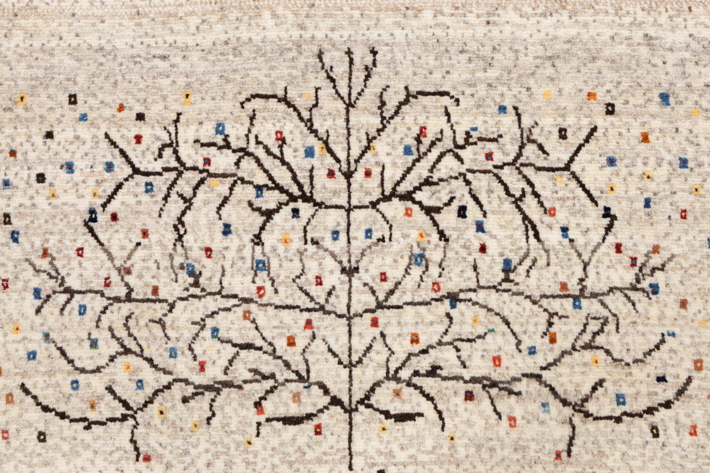 Een verfijning van de al bekende Gabbeh-tapijten: Dit is deze Perzische Gabbeh Loribaft. Het weet indruk te maken met zijn fijnere weefsel en prachtige ontwerp. Het werd door Loren in het zuiden van Perzië met de hand geknoopt van de beste handgesponnen schapenwol. Voor het verven van de wol worden uitsluitend pure plantaardige kleurstoffen gebruikt. Met dit vloerkleed haal je de hoogste standaard van een Gabbeh-tapijt in huis.