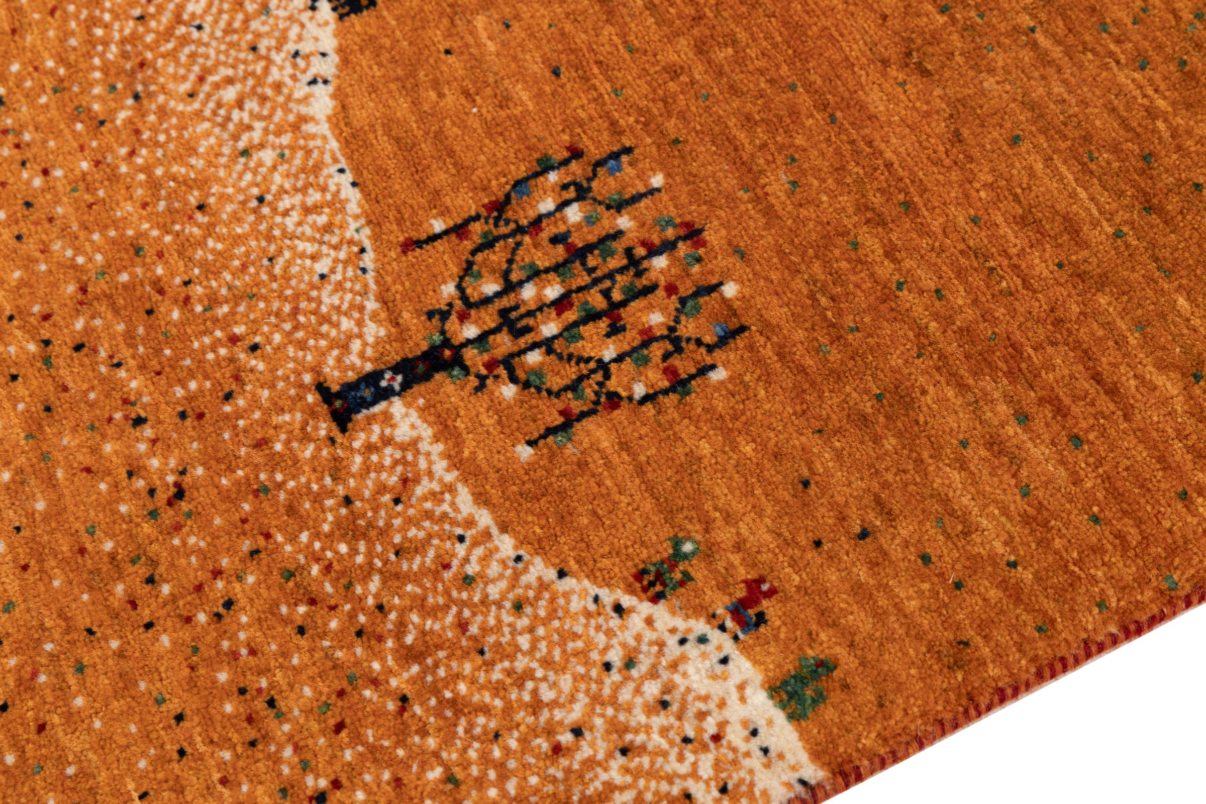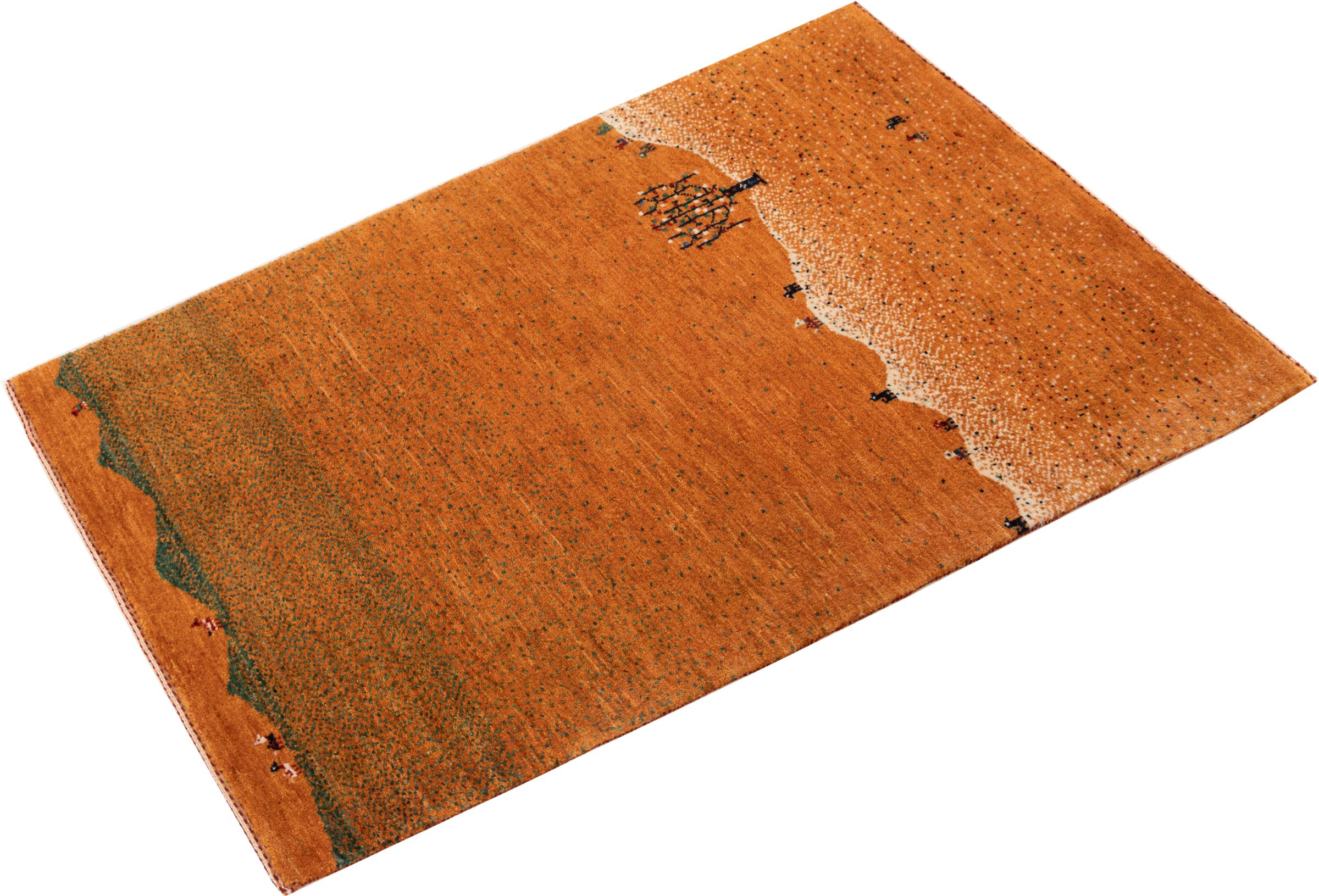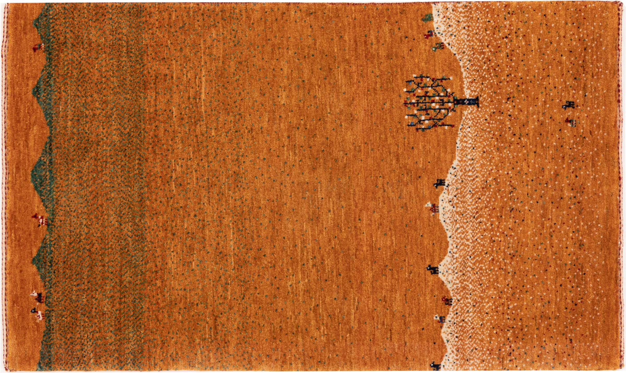 Dit prachtige tapijt is een Perzisch Gabbeh-tapijt en behoort daarom tot de hoogste kwaliteit Gabbeh-tapijten. De tapijten worden geknoopt door nomaden of semi-nomaden in Iran volgens traditioneel vakmanschap. De eenvoudige motieven en patronen zijn vooral geïnspireerd op de directe omgeving van de nomaden. Zo zijn er bijvoorbeeld kamelen, bomen of struiken te vinden op de traditionele tapijten. De Perzische Gabbeh-tapijten zijn gemaakt van wol van lokaal opgefokte kuddes schapen. De wol wordt dus meestal nog met de hand gesponnen. Elk van deze oosterse tapijten belichaamt dus een uniek karakter van de eeuwenoude cultuur.