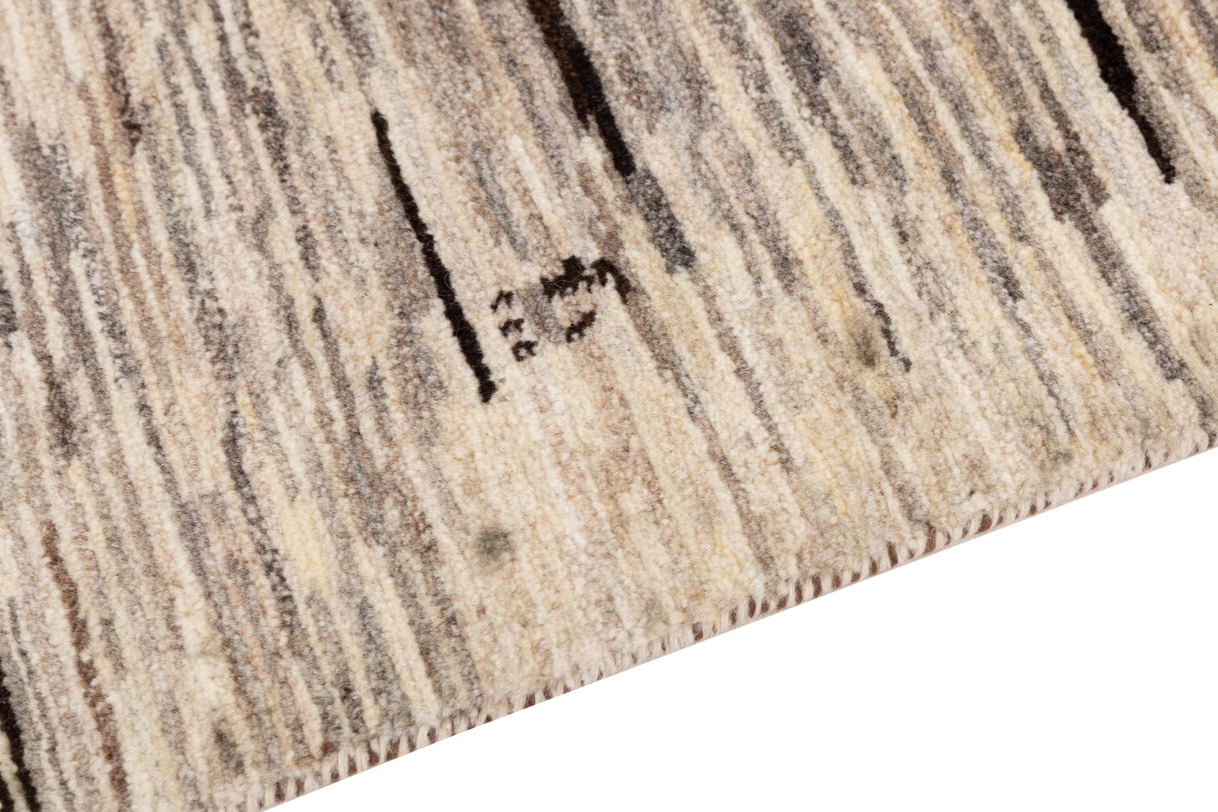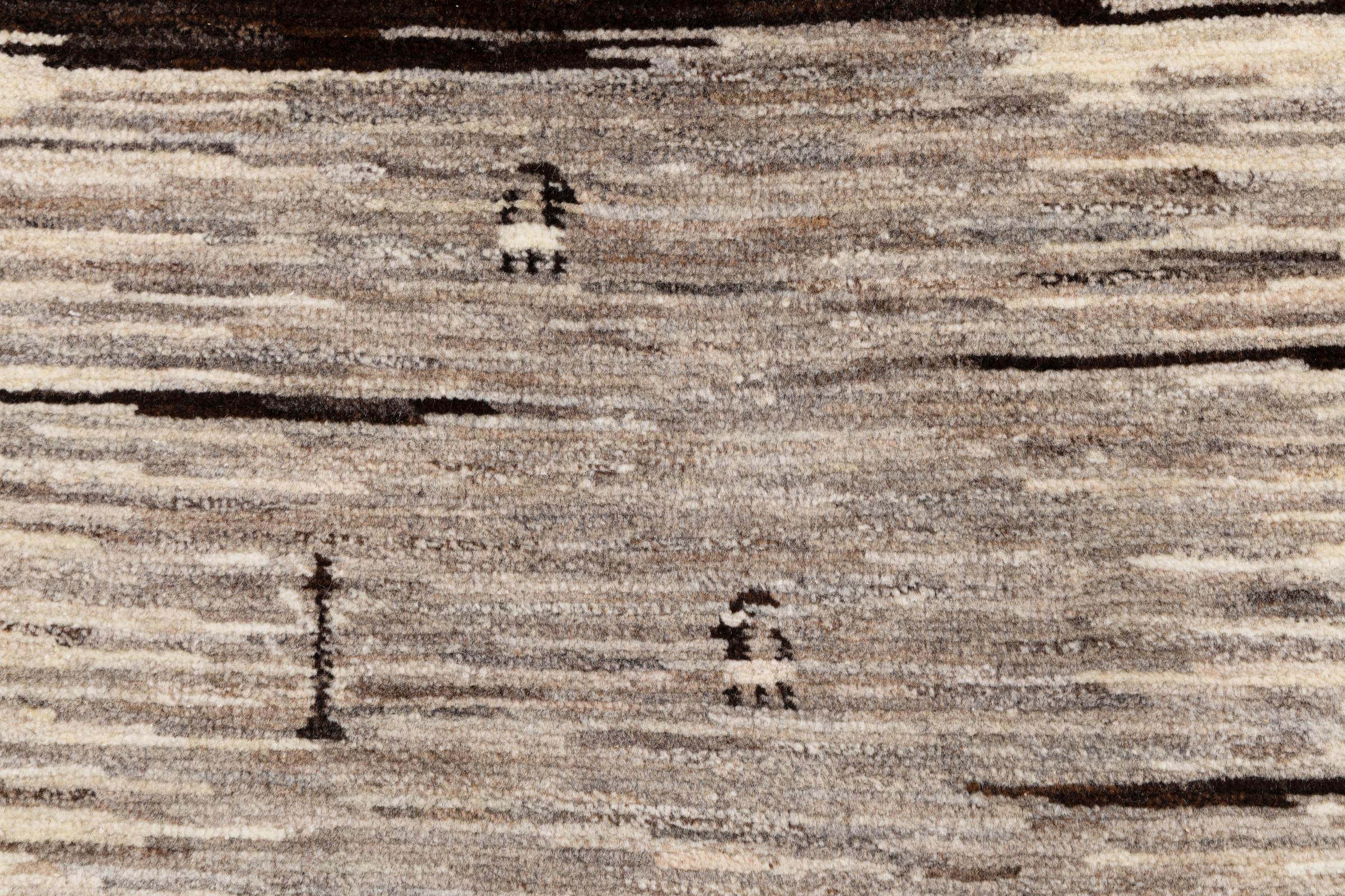 Dit prachtige tapijt is een Perzisch Gabbeh-tapijt en behoort daarom tot de hoogste kwaliteit Gabbeh-tapijten. De tapijten worden geknoopt door nomaden of semi-nomaden in Iran volgens traditioneel vakmanschap. De eenvoudige motieven en patronen zijn vooral geïnspireerd op de directe omgeving van de nomaden. Zo zijn er bijvoorbeeld kamelen, bomen of struiken te vinden op de traditionele tapijten. De Perzische Gabbeh-tapijten zijn gemaakt van wol van lokaal opgefokte kuddes schapen. De wol wordt dus meestal nog met de hand gesponnen. Elk van deze oosterse tapijten belichaamt dus een uniek karakter van de eeuwenoude cultuur.