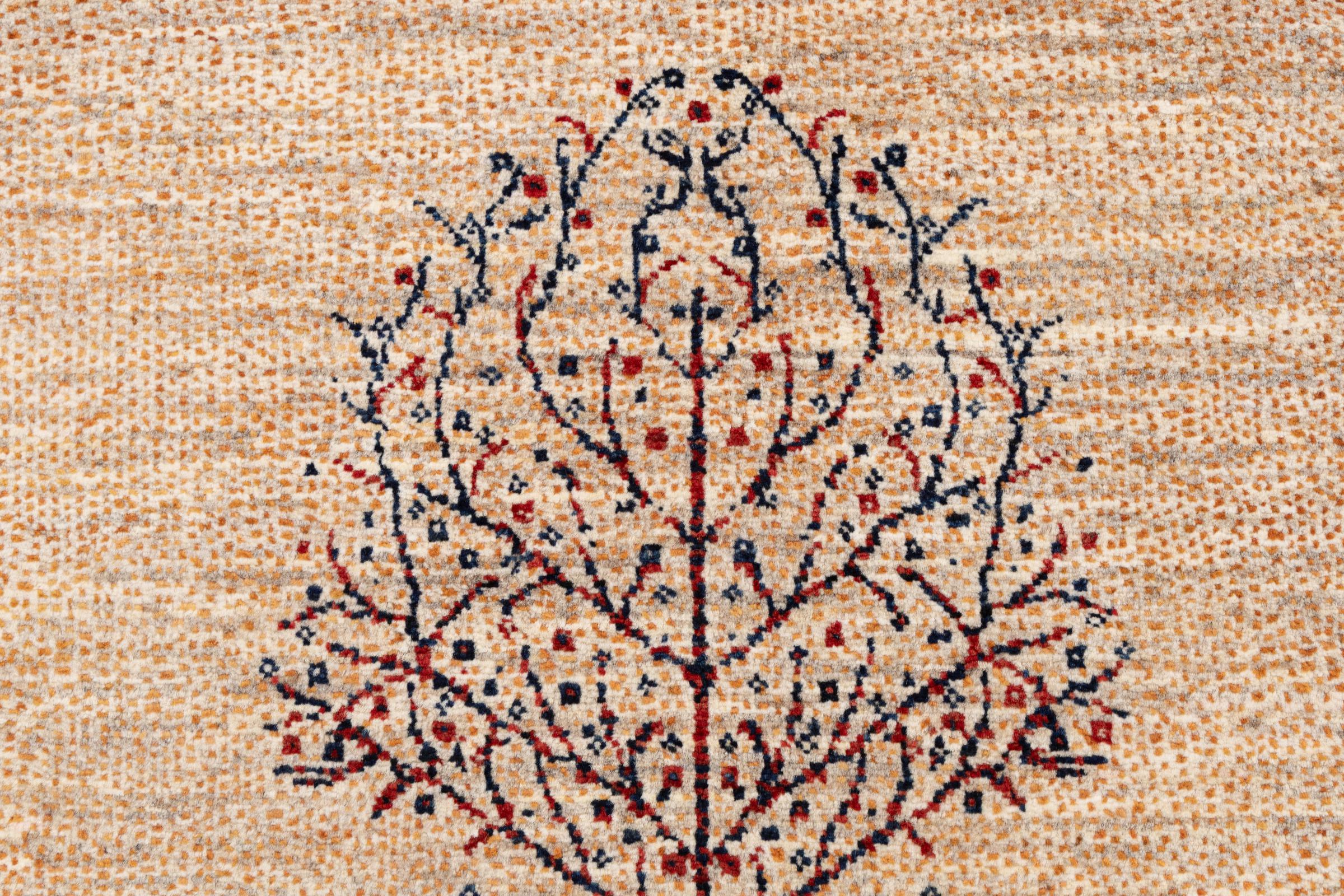 Dit prachtige tapijt is een Perzisch Gabbeh-tapijt en behoort daarom tot de hoogste kwaliteit Gabbeh-tapijten. De tapijten worden geknoopt door nomaden of semi-nomaden in Iran volgens traditioneel vakmanschap. De eenvoudige motieven en patronen zijn vooral geïnspireerd op de directe omgeving van de nomaden. Zo zijn er bijvoorbeeld kamelen, bomen of struiken te vinden op de traditionele tapijten. De Perzische Gabbeh-tapijten zijn gemaakt van wol van lokaal opgefokte kuddes schapen. De wol wordt dus meestal nog met de hand gesponnen. Elk van deze oosterse tapijten belichaamt dus een uniek karakter van de eeuwenoude cultuur.