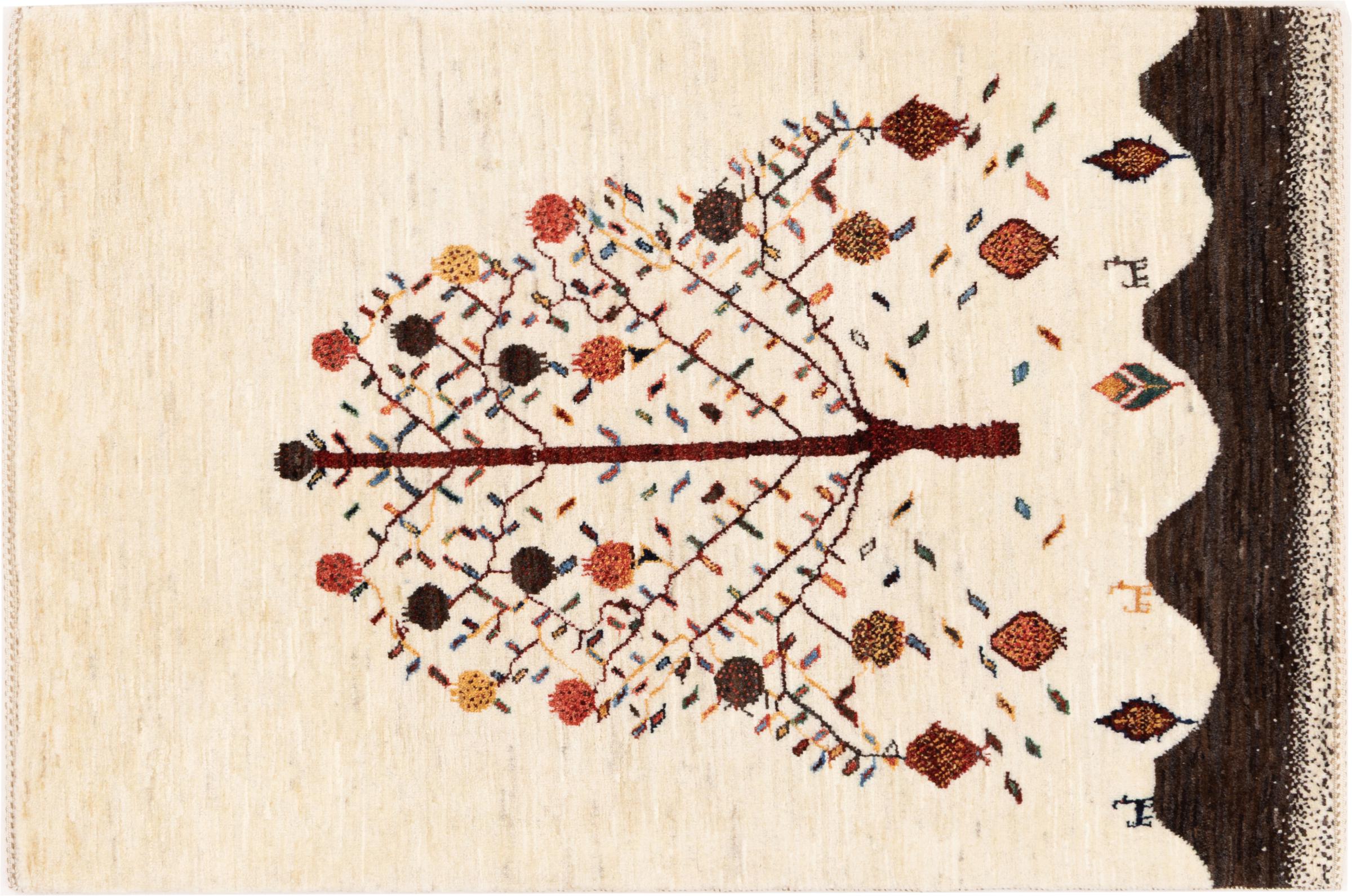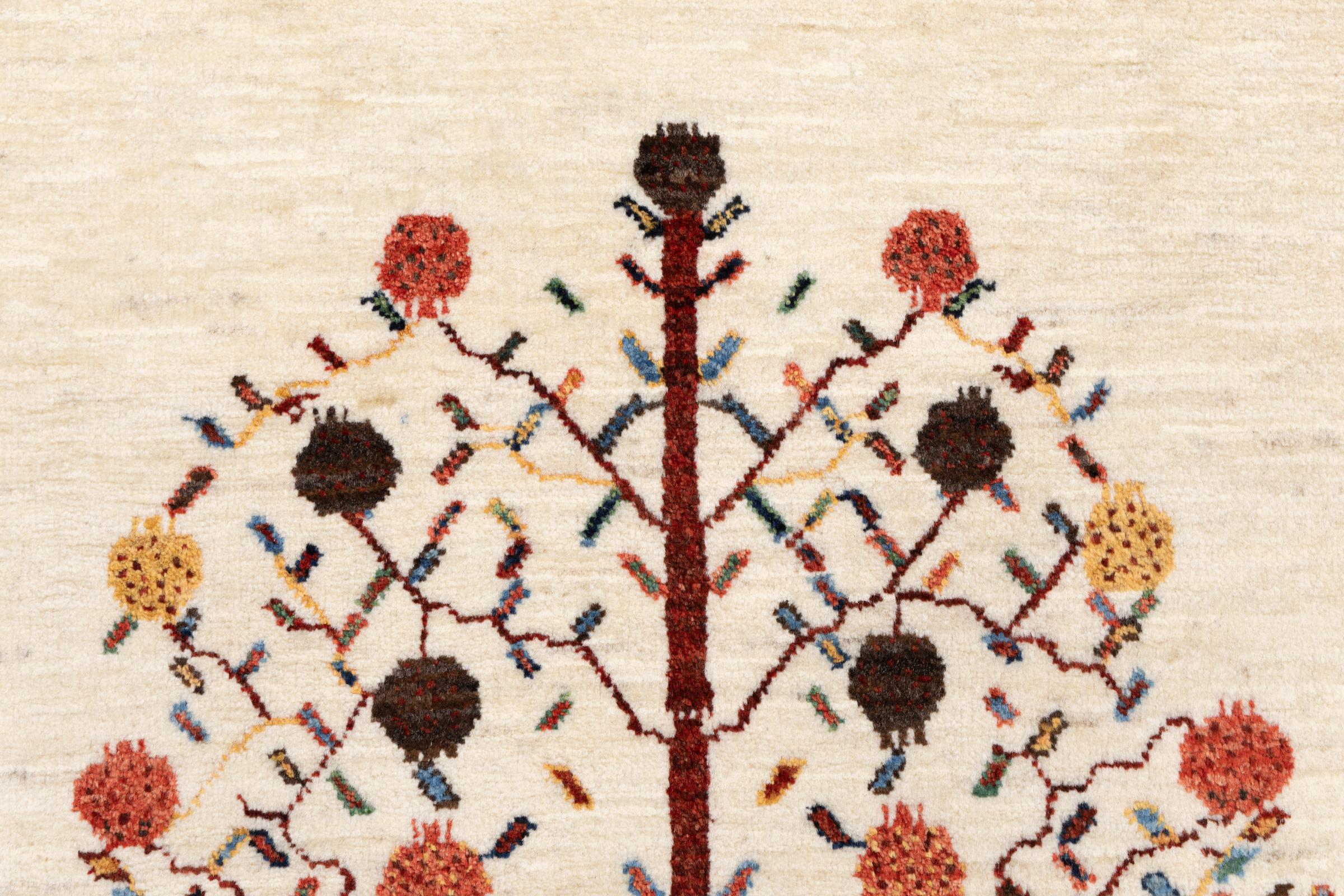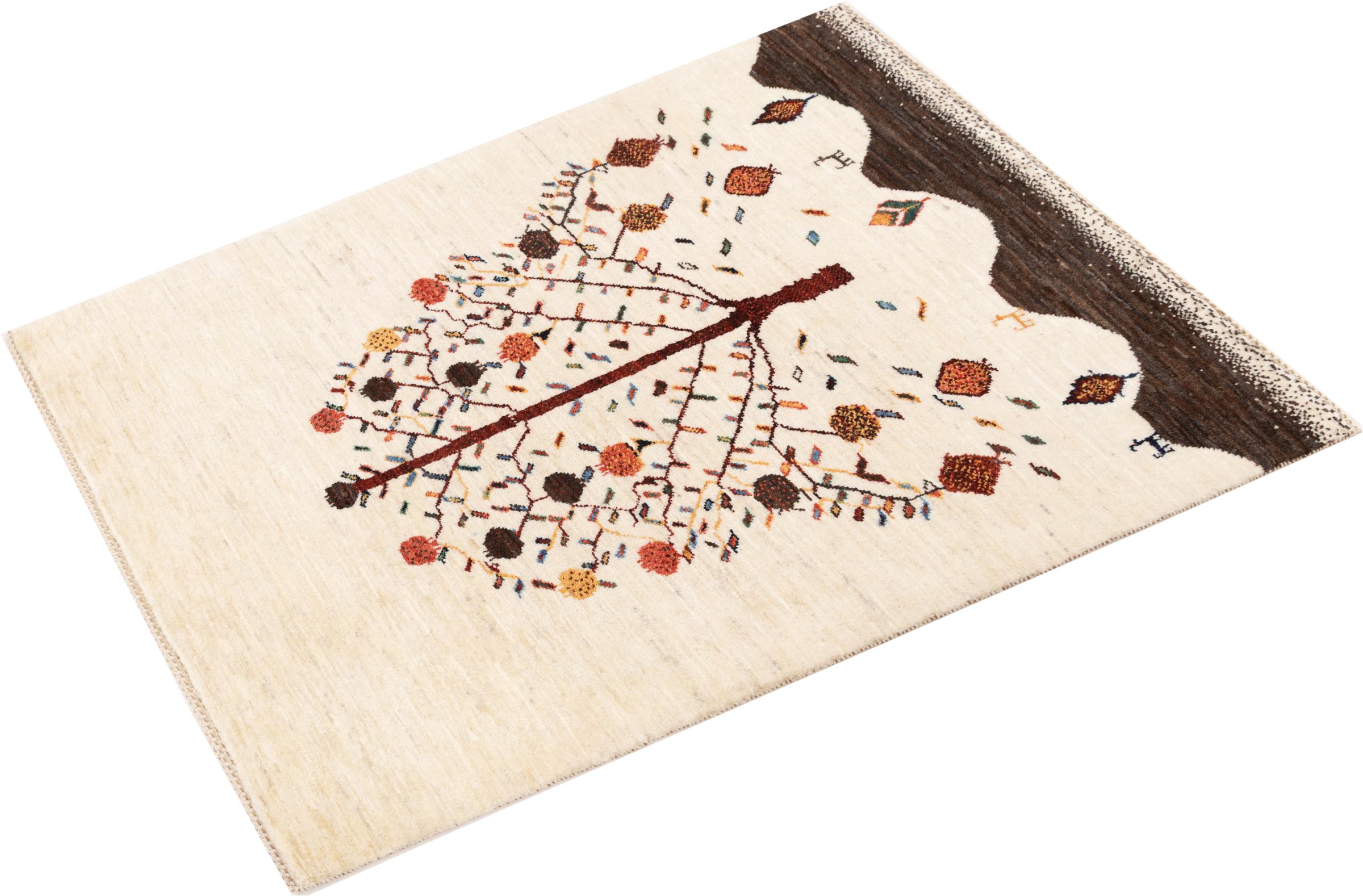 Dit prachtige tapijt is een Perzisch Gabbeh-tapijt en behoort daarom tot de hoogste kwaliteit Gabbeh-tapijten. De tapijten worden geknoopt door nomaden of semi-nomaden in Iran volgens traditioneel vakmanschap. De eenvoudige motieven en patronen zijn vooral geïnspireerd op de directe omgeving van de nomaden. Zo zijn er bijvoorbeeld kamelen, bomen of struiken te vinden op de traditionele tapijten. De Perzische Gabbeh-tapijten zijn gemaakt van wol van lokaal opgefokte kuddes schapen. De wol wordt dus meestal nog met de hand gesponnen. Elk van deze oosterse tapijten belichaamt dus een uniek karakter van de eeuwenoude cultuur.