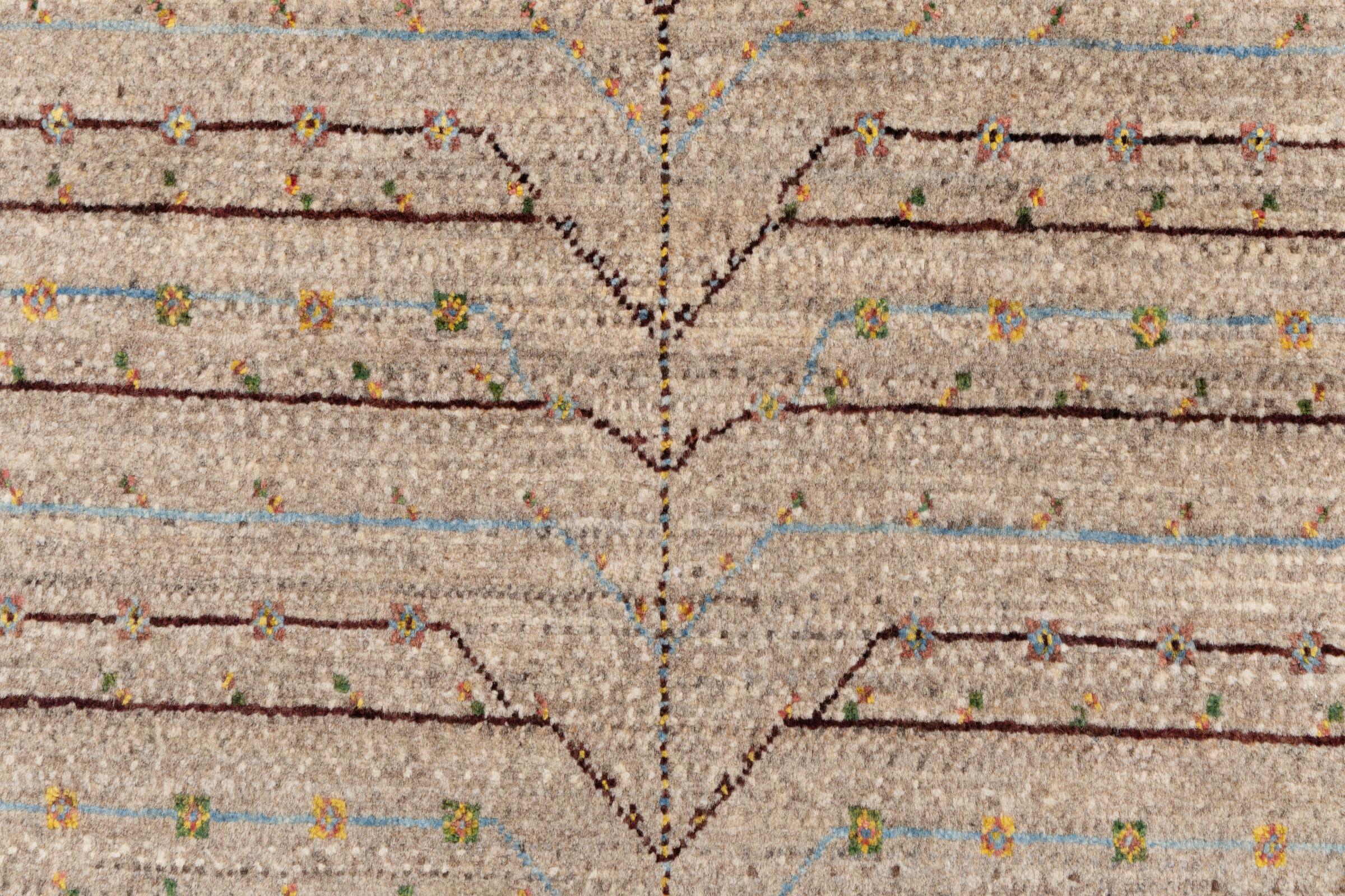 Een verfijning van de al bekende Gabbeh-tapijten: Dit is deze Perzische Gabbeh Loribaft. Het weet indruk te maken met zijn fijnere weefsel en prachtige ontwerp. Het werd door Loren in het zuiden van Perzië met de hand geknoopt van de beste handgesponnen schapenwol. Voor het verven van de wol worden uitsluitend pure plantaardige kleurstoffen gebruikt. Met dit vloerkleed haal je de hoogste standaard van een Gabbeh-tapijt in huis.