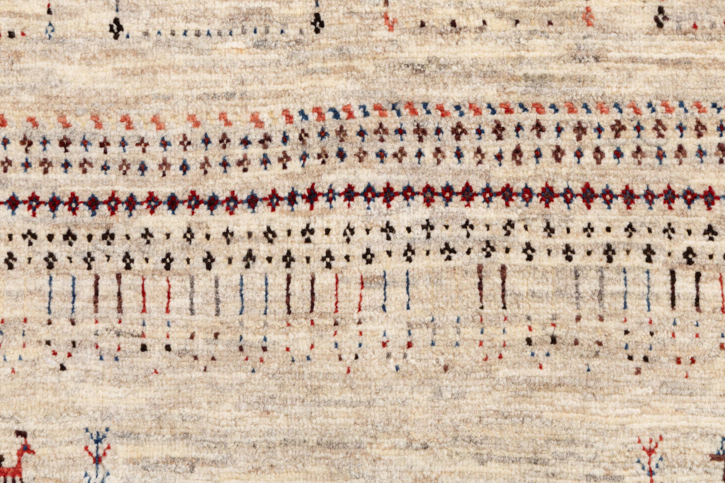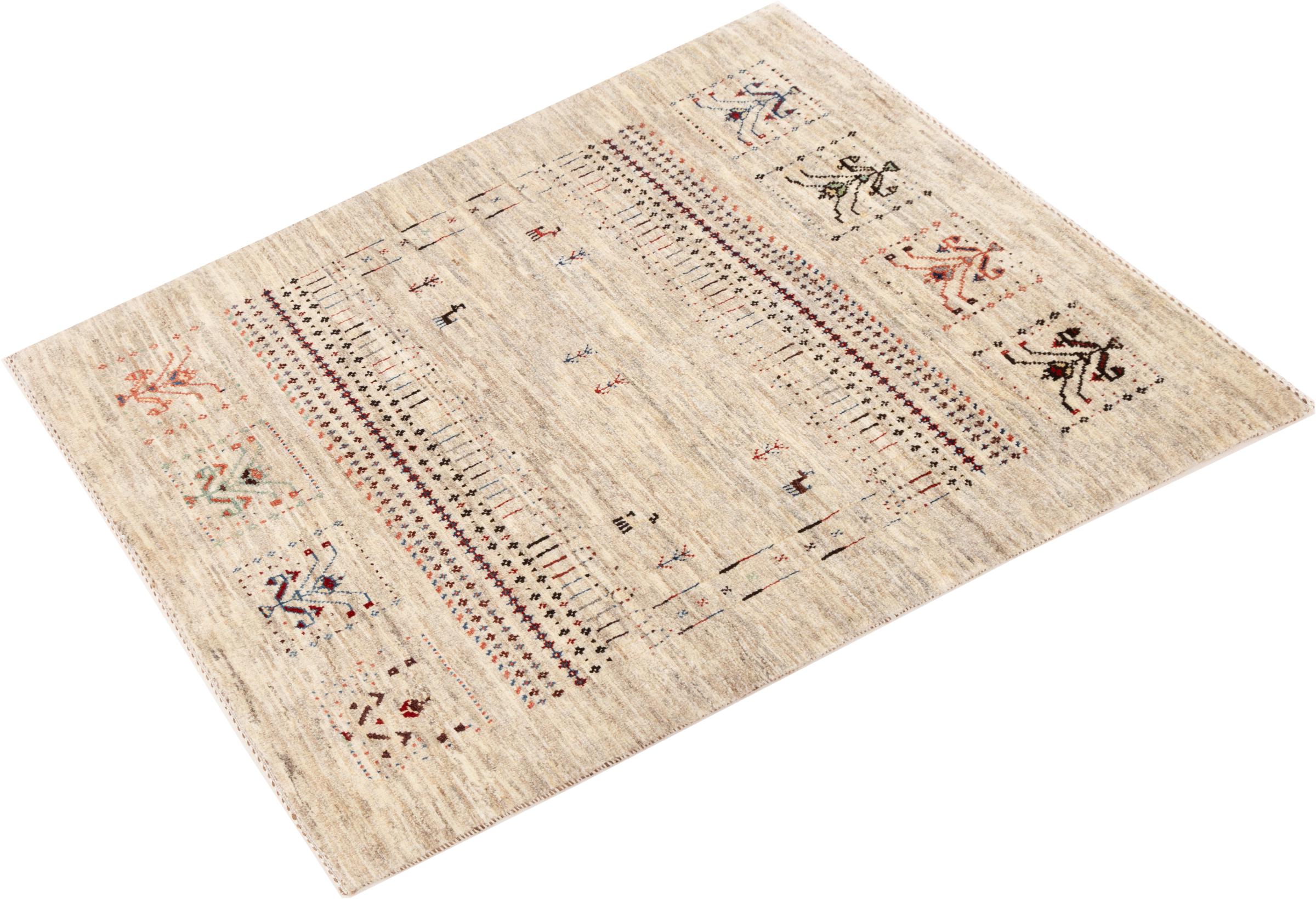 Een verfijning van de al bekende Gabbeh-tapijten: Dit is deze Perzische Gabbeh Loribaft. Het weet indruk te maken met zijn fijnere weefsel en prachtige ontwerp. Het werd door Loren in het zuiden van Perzië met de hand geknoopt van de beste handgesponnen schapenwol. Voor het verven van de wol worden uitsluitend pure plantaardige kleurstoffen gebruikt. Met dit vloerkleed haal je de hoogste standaard van een Gabbeh-tapijt in huis.