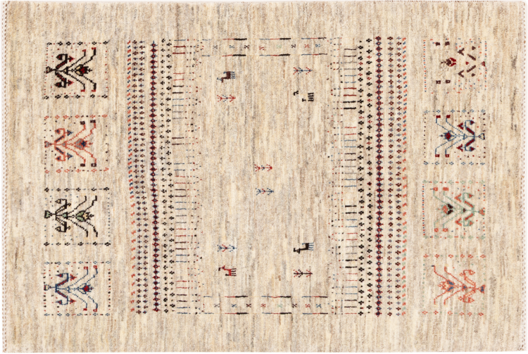Dit prachtige tapijt is een Perzisch Gabbeh-tapijt en behoort daarom tot de hoogste kwaliteit Gabbeh-tapijten. De tapijten worden geknoopt door nomaden of semi-nomaden in Iran volgens traditioneel vakmanschap. De eenvoudige motieven en patronen zijn vooral geïnspireerd op de directe omgeving van de nomaden. Zo zijn er bijvoorbeeld kamelen, bomen of struiken te vinden op de traditionele tapijten. De Perzische Gabbeh-tapijten zijn gemaakt van wol van lokaal opgefokte kuddes schapen. De wol wordt dus meestal nog met de hand gesponnen. Elk van deze oosterse tapijten belichaamt dus een uniek karakter van de eeuwenoude cultuur.
