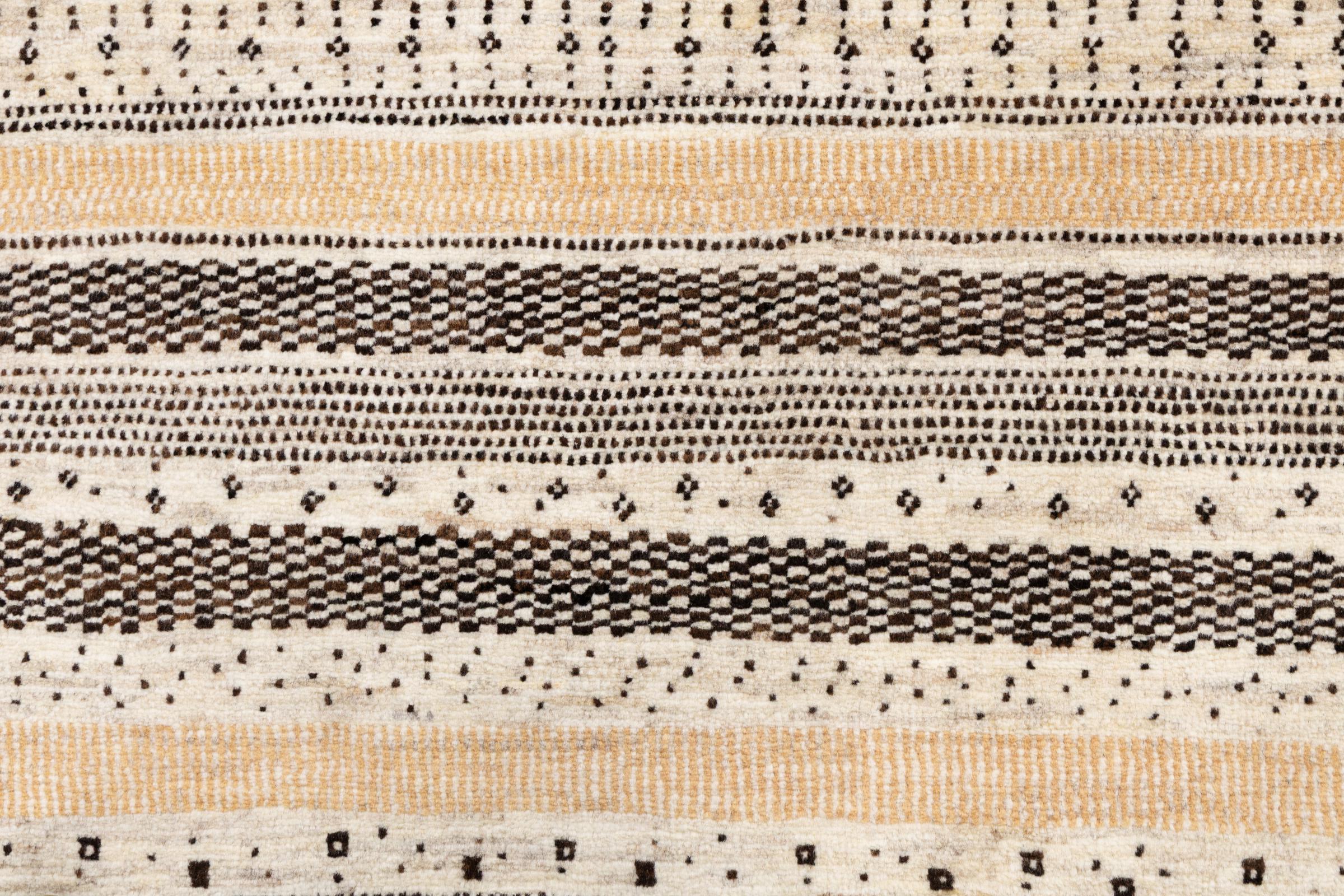 Een verfijning van de al bekende Gabbeh-tapijten: Dit is deze Perzische Gabbeh Loribaft. Het weet indruk te maken met zijn fijnere weefsel en prachtige ontwerp. Het werd door Loren in het zuiden van Perzië met de hand geknoopt van de beste handgesponnen schapenwol. Voor het verven van de wol worden uitsluitend pure plantaardige kleurstoffen gebruikt. Met dit vloerkleed haal je de hoogste standaard van een Gabbeh-tapijt in huis.