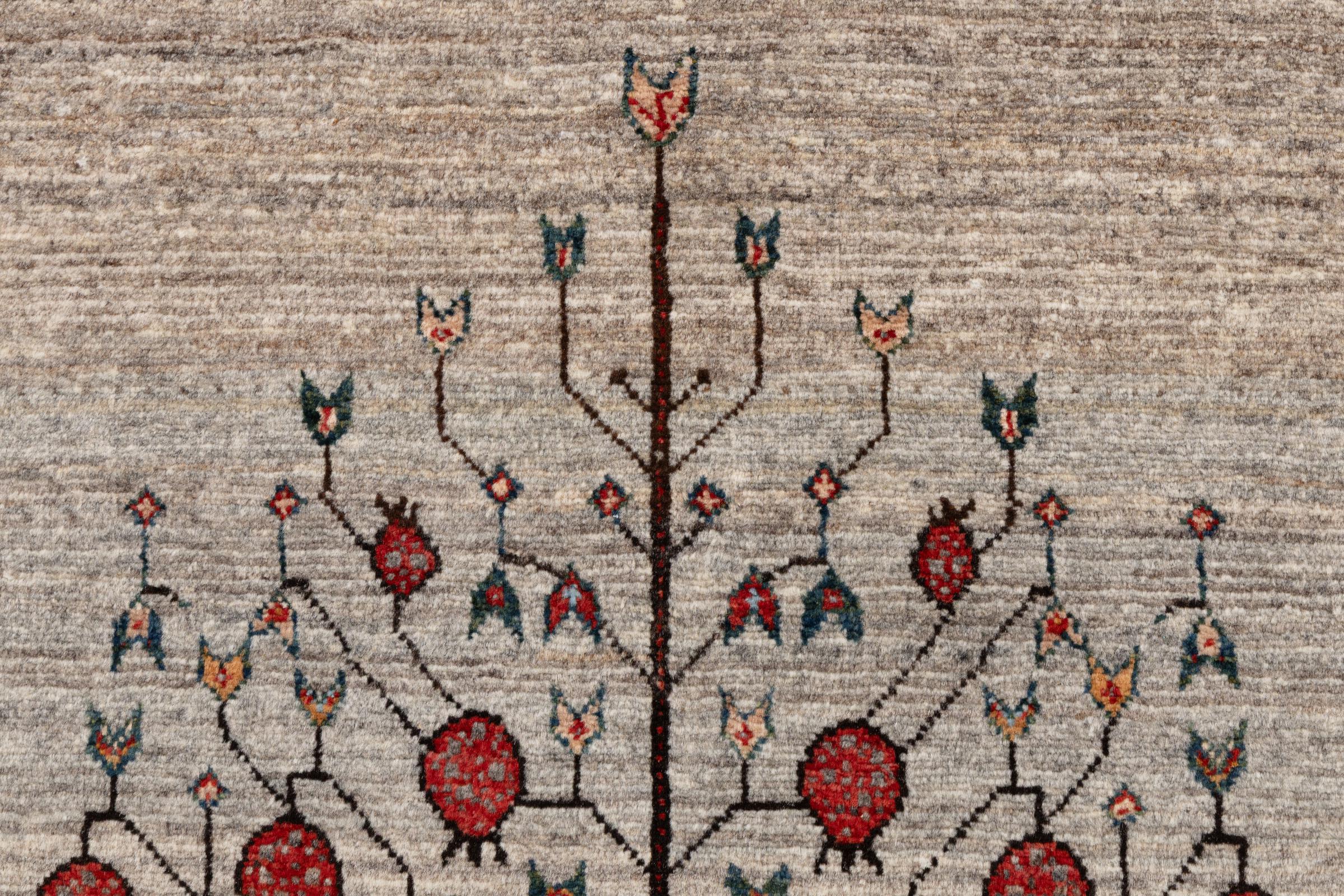 Dit prachtige tapijt is een Perzisch Gabbeh-tapijt en behoort daarom tot de hoogste kwaliteit Gabbeh-tapijten. De tapijten worden geknoopt door nomaden of semi-nomaden in Iran volgens traditioneel vakmanschap. De eenvoudige motieven en patronen zijn vooral geïnspireerd op de directe omgeving van de nomaden. Zo zijn er bijvoorbeeld kamelen, bomen of struiken te vinden op de traditionele tapijten. De Perzische Gabbeh-tapijten zijn gemaakt van wol van lokaal opgefokte kuddes schapen. De wol wordt dus meestal nog met de hand gesponnen. Elk van deze oosterse tapijten belichaamt dus een uniek karakter van de eeuwenoude cultuur.