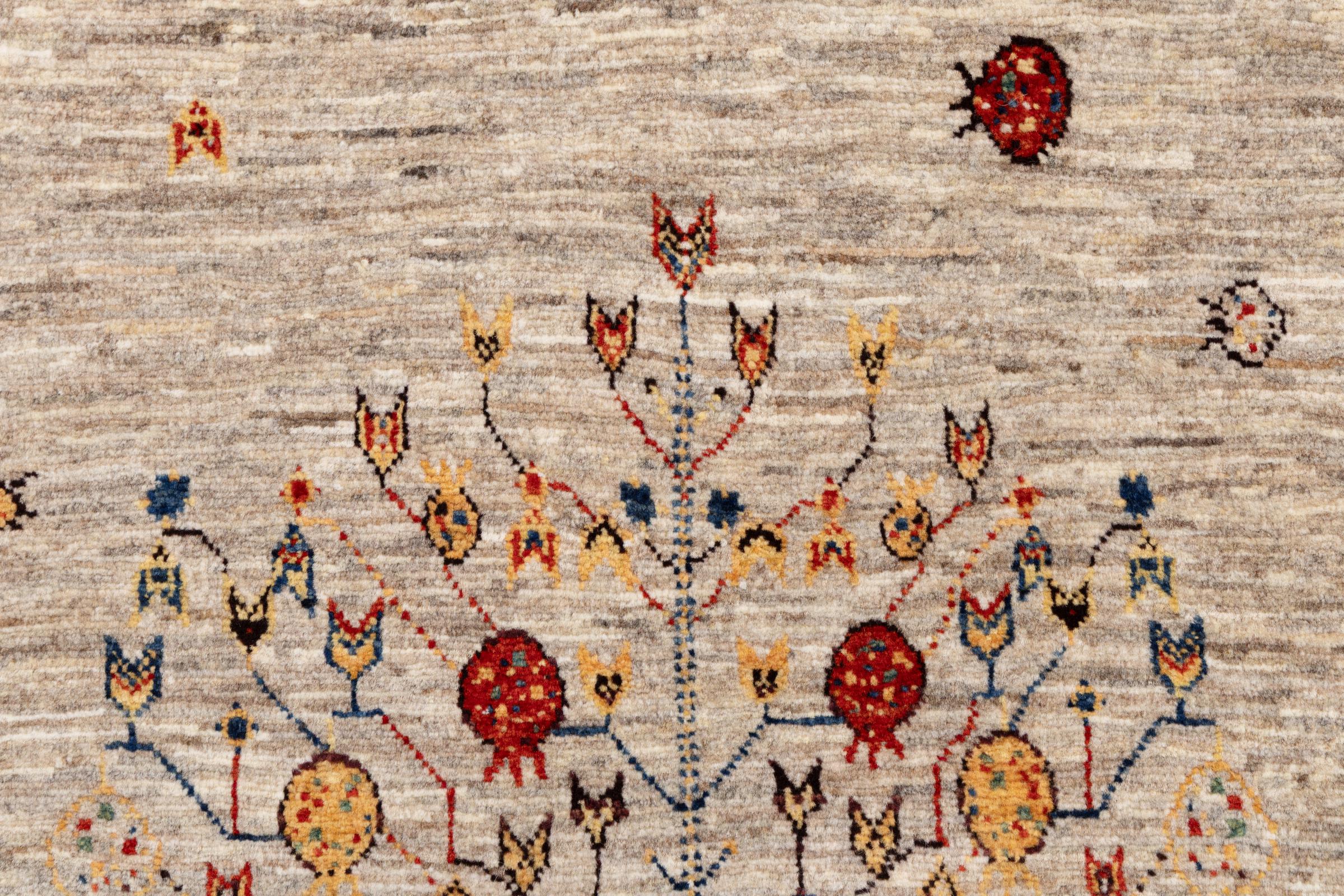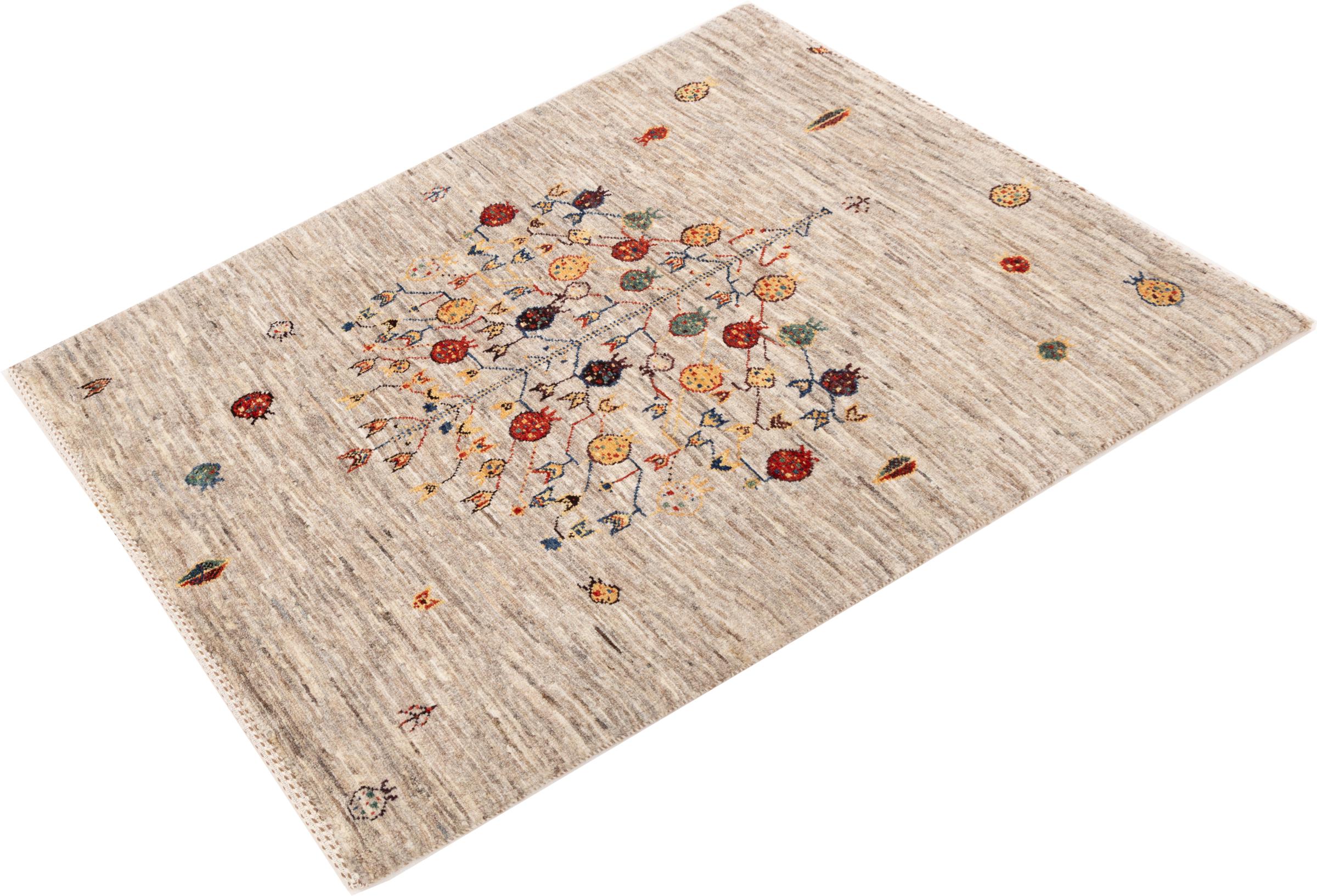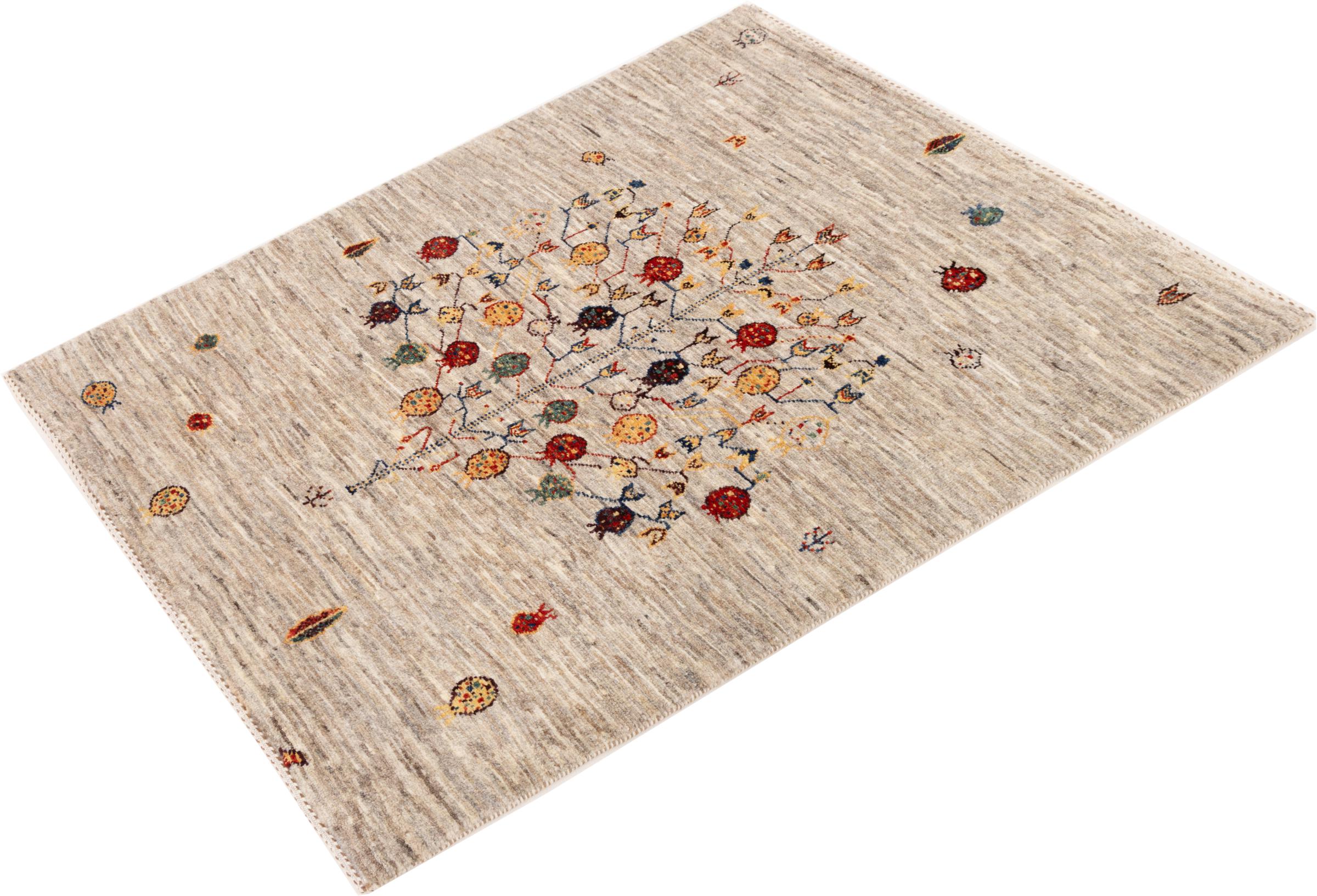 Dit prachtige tapijt is een Perzisch Gabbeh-tapijt en behoort daarom tot de hoogste kwaliteit Gabbeh-tapijten. De tapijten worden geknoopt door nomaden of semi-nomaden in Iran volgens traditioneel vakmanschap. De eenvoudige motieven en patronen zijn vooral geïnspireerd op de directe omgeving van de nomaden. Zo zijn er bijvoorbeeld kamelen, bomen of struiken te vinden op de traditionele tapijten. De Perzische Gabbeh-tapijten zijn gemaakt van wol van lokaal opgefokte kuddes schapen. De wol wordt dus meestal nog met de hand gesponnen. Elk van deze oosterse tapijten belichaamt dus een uniek karakter van de eeuwenoude cultuur.