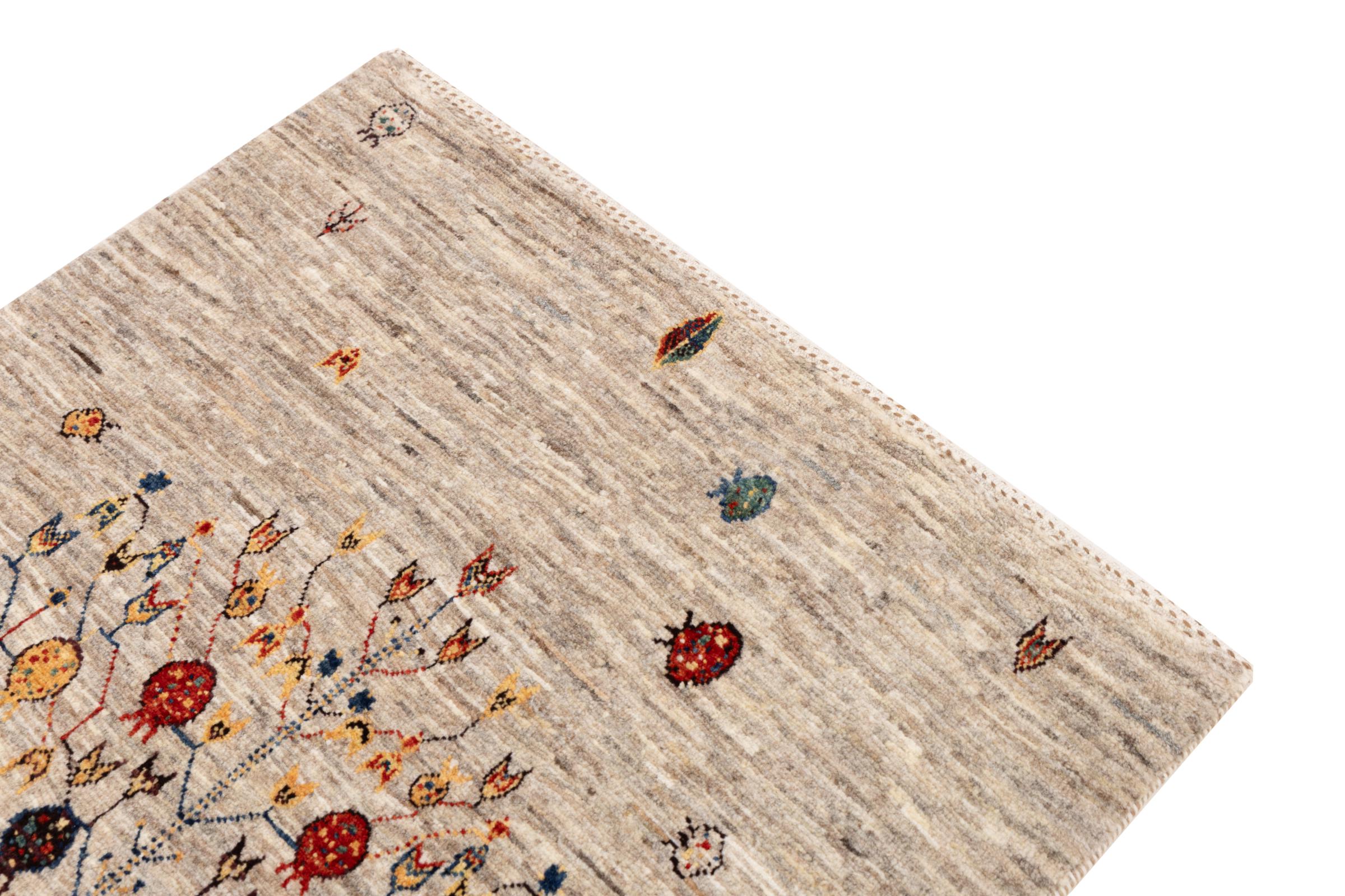 Een verfijning van de al bekende Gabbeh-tapijten: Dit is deze Perzische Gabbeh Loribaft. Het weet indruk te maken met zijn fijnere weefsel en prachtige ontwerp. Het werd door Loren in het zuiden van Perzië met de hand geknoopt van de beste handgesponnen schapenwol. Voor het verven van de wol worden uitsluitend pure plantaardige kleurstoffen gebruikt. Met dit vloerkleed haal je de hoogste standaard van een Gabbeh-tapijt in huis.