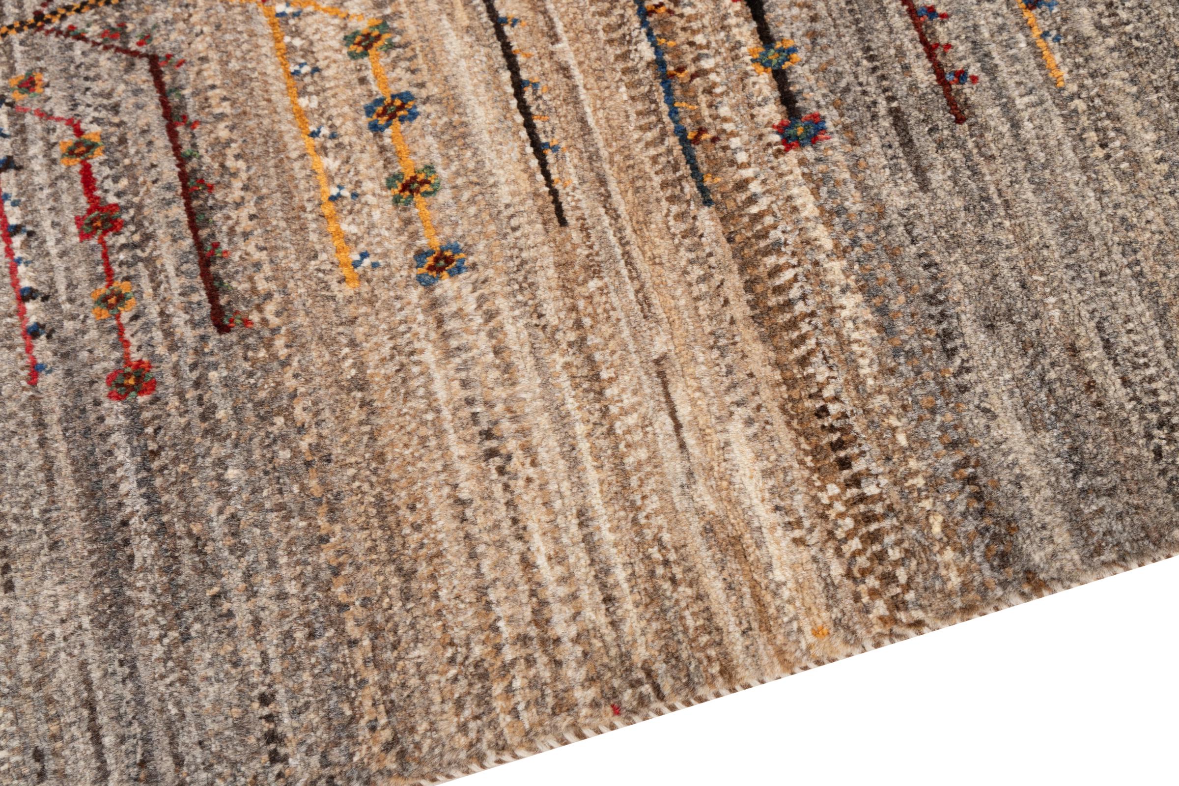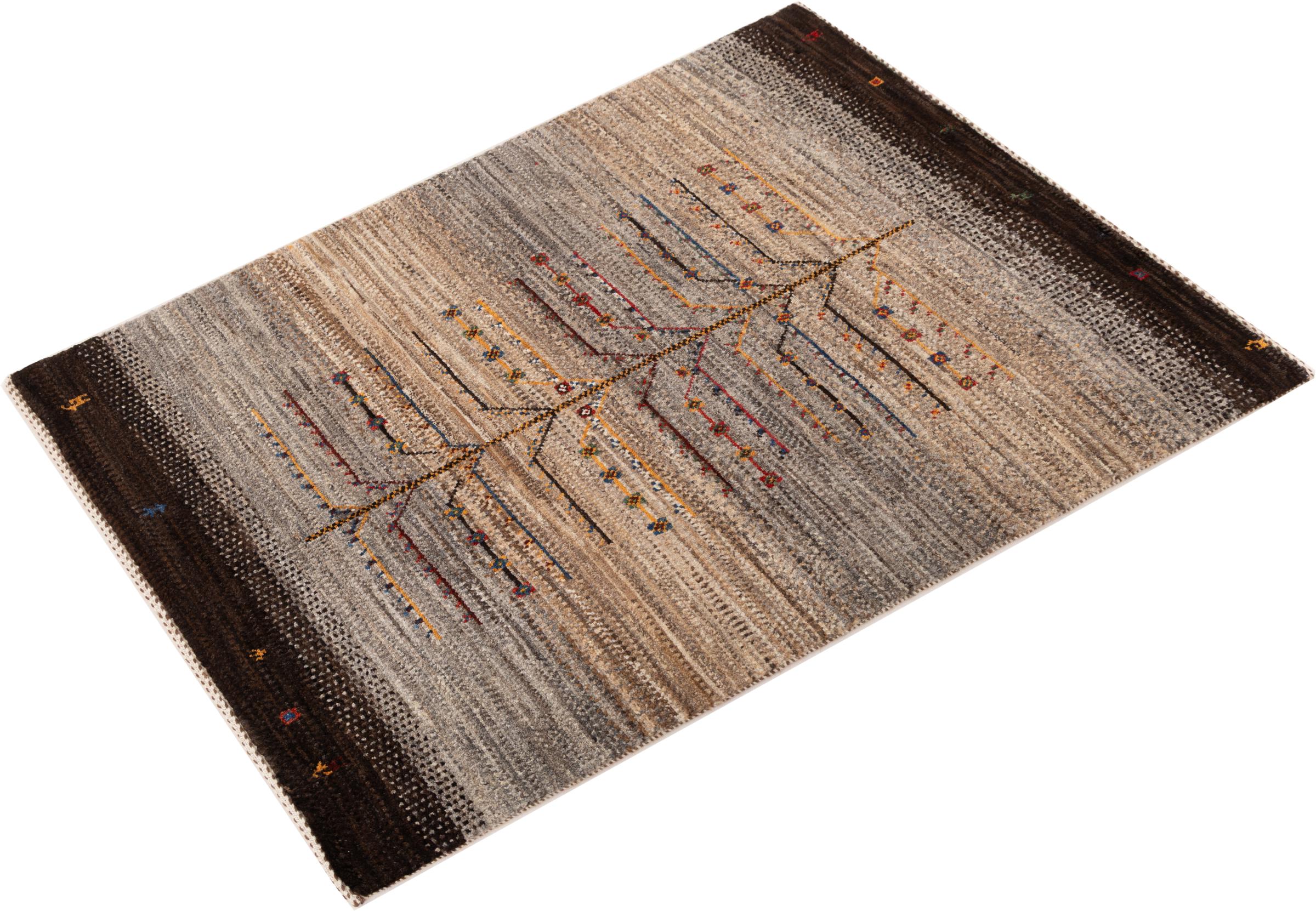 Dit prachtige tapijt is een Perzisch Gabbeh-tapijt en behoort daarom tot de hoogste kwaliteit Gabbeh-tapijten. De tapijten worden geknoopt door nomaden of semi-nomaden in Iran volgens traditioneel vakmanschap. De eenvoudige motieven en patronen zijn vooral geïnspireerd op de directe omgeving van de nomaden. Zo zijn er bijvoorbeeld kamelen, bomen of struiken te vinden op de traditionele tapijten. De Perzische Gabbeh-tapijten zijn gemaakt van wol van lokaal opgefokte kuddes schapen. De wol wordt dus meestal nog met de hand gesponnen. Elk van deze oosterse tapijten belichaamt dus een uniek karakter van de eeuwenoude cultuur.