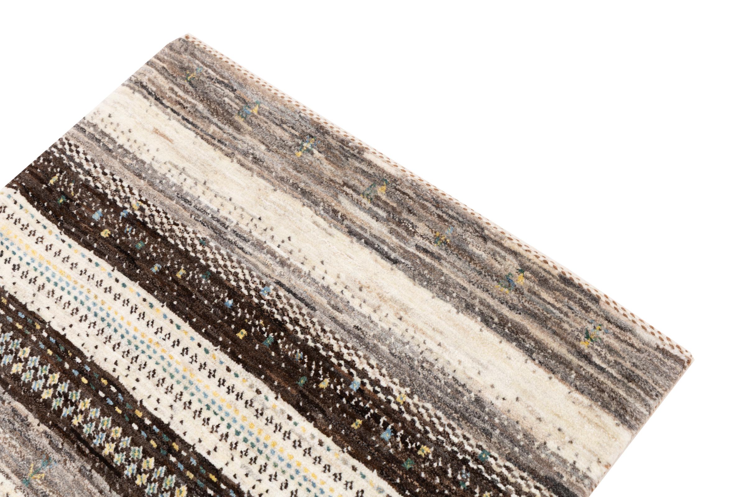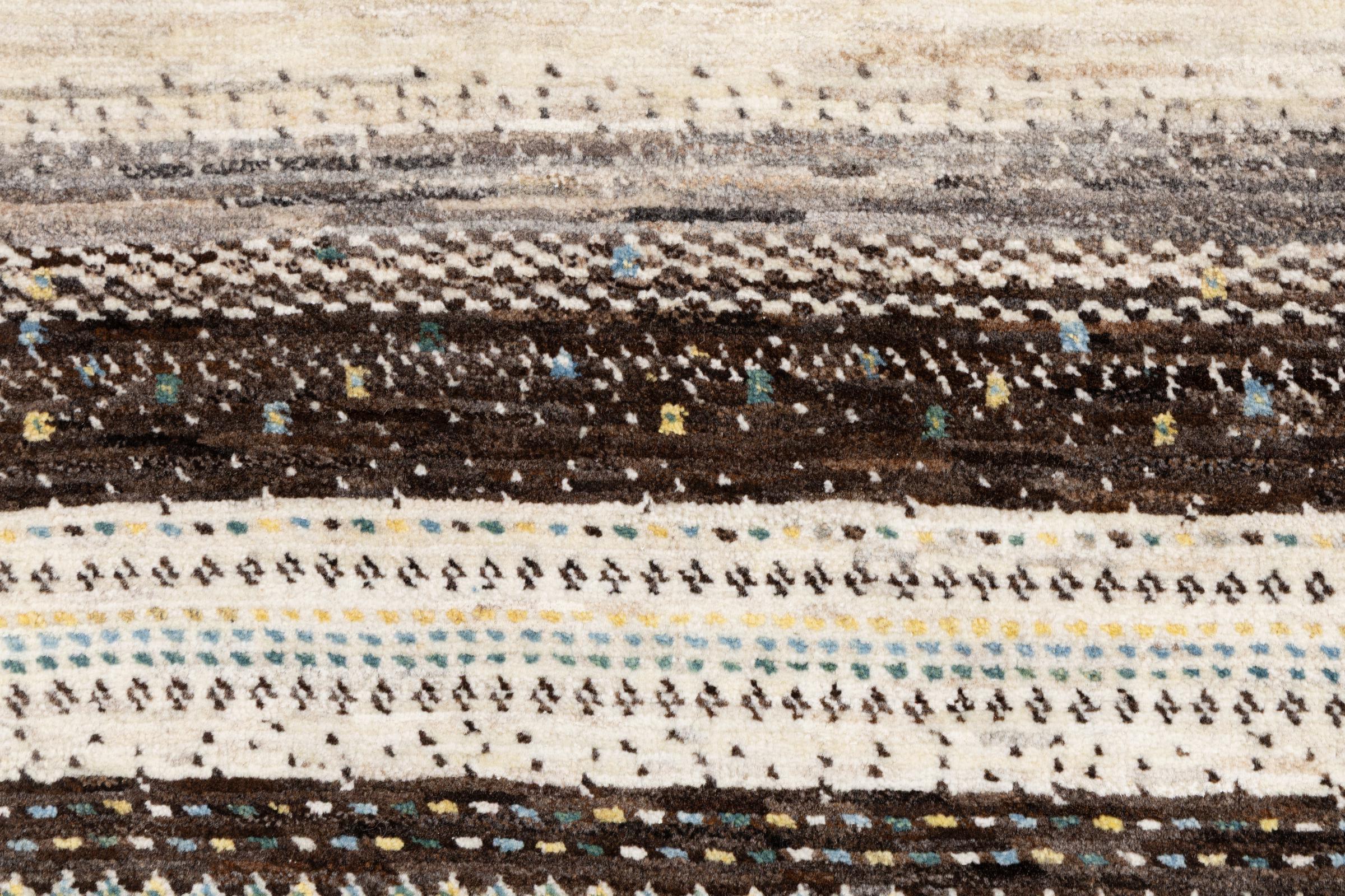 Een verfijning van de al bekende Gabbeh-tapijten: Dit is deze Perzische Gabbeh Loribaft. Het weet indruk te maken met zijn fijnere weefsel en prachtige ontwerp. Het werd door Loren in het zuiden van Perzië met de hand geknoopt van de beste handgesponnen schapenwol. Voor het verven van de wol worden uitsluitend pure plantaardige kleurstoffen gebruikt. Met dit vloerkleed haal je de hoogste standaard van een Gabbeh-tapijt in huis.