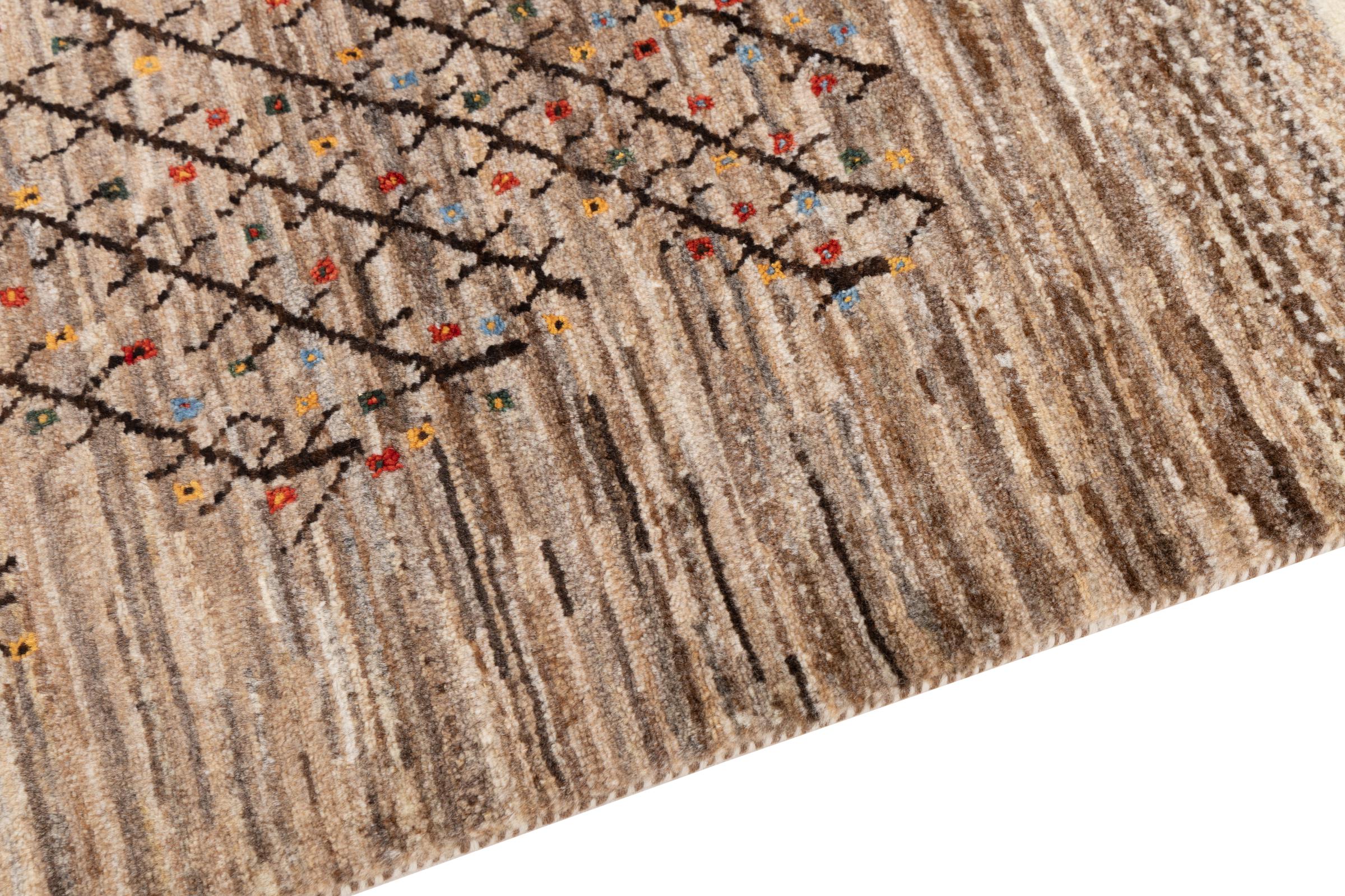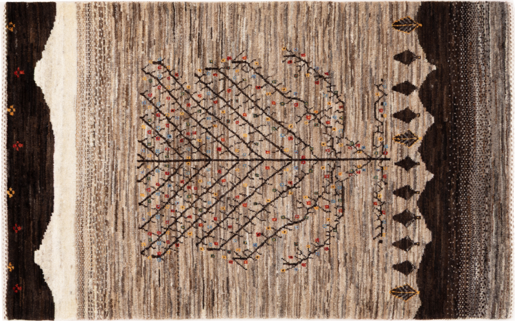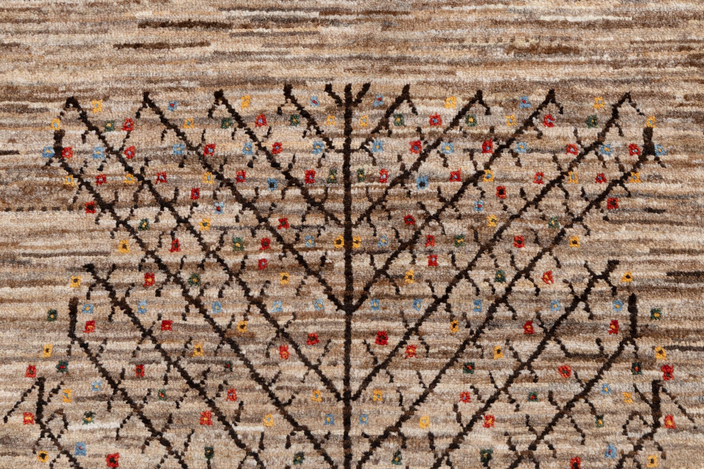 Dit prachtige tapijt is een Perzisch Gabbeh-tapijt en behoort daarom tot de hoogste kwaliteit Gabbeh-tapijten. De tapijten worden geknoopt door nomaden of semi-nomaden in Iran volgens traditioneel vakmanschap. De eenvoudige motieven en patronen zijn vooral geïnspireerd op de directe omgeving van de nomaden. Zo zijn er bijvoorbeeld kamelen, bomen of struiken te vinden op de traditionele tapijten. De Perzische Gabbeh-tapijten zijn gemaakt van wol van lokaal opgefokte kuddes schapen. De wol wordt dus meestal nog met de hand gesponnen. Elk van deze oosterse tapijten belichaamt dus een uniek karakter van de eeuwenoude cultuur.
