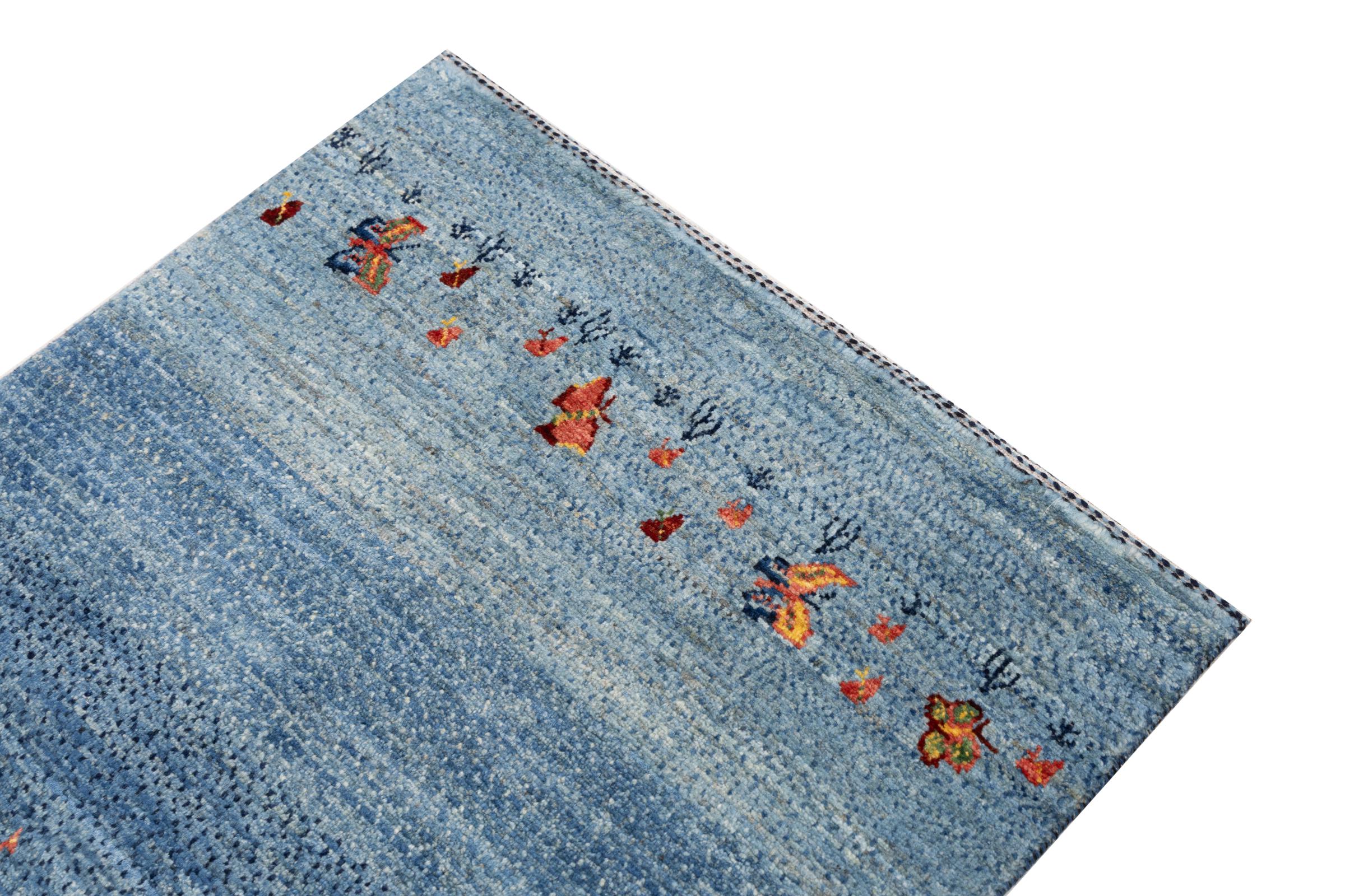 Een verfijning van de al bekende Gabbeh-tapijten: Dit is deze Perzische Gabbeh Loribaft. Het weet indruk te maken met zijn fijnere weefsel en prachtige ontwerp. Het werd door Loren in het zuiden van Perzië met de hand geknoopt van de beste handgesponnen schapenwol. Voor het verven van de wol worden uitsluitend pure plantaardige kleurstoffen gebruikt. Met dit vloerkleed haal je de hoogste standaard van een Gabbeh-tapijt in huis.