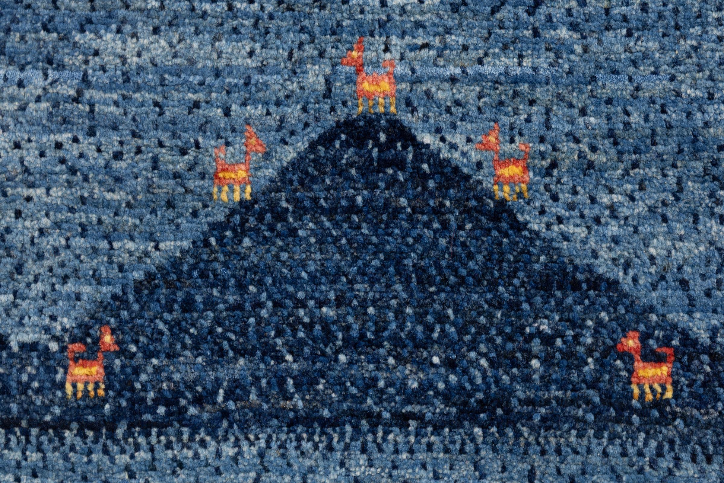 Dit prachtige tapijt is een Perzisch Gabbeh-tapijt en behoort daarom tot de hoogste kwaliteit Gabbeh-tapijten. De tapijten worden geknoopt door nomaden of semi-nomaden in Iran volgens traditioneel vakmanschap. De eenvoudige motieven en patronen zijn vooral geïnspireerd op de directe omgeving van de nomaden. Zo zijn er bijvoorbeeld kamelen, bomen of struiken te vinden op de traditionele tapijten. De Perzische Gabbeh-tapijten zijn gemaakt van wol van lokaal opgefokte kuddes schapen. De wol wordt dus meestal nog met de hand gesponnen. Elk van deze oosterse tapijten belichaamt dus een uniek karakter van de eeuwenoude cultuur.