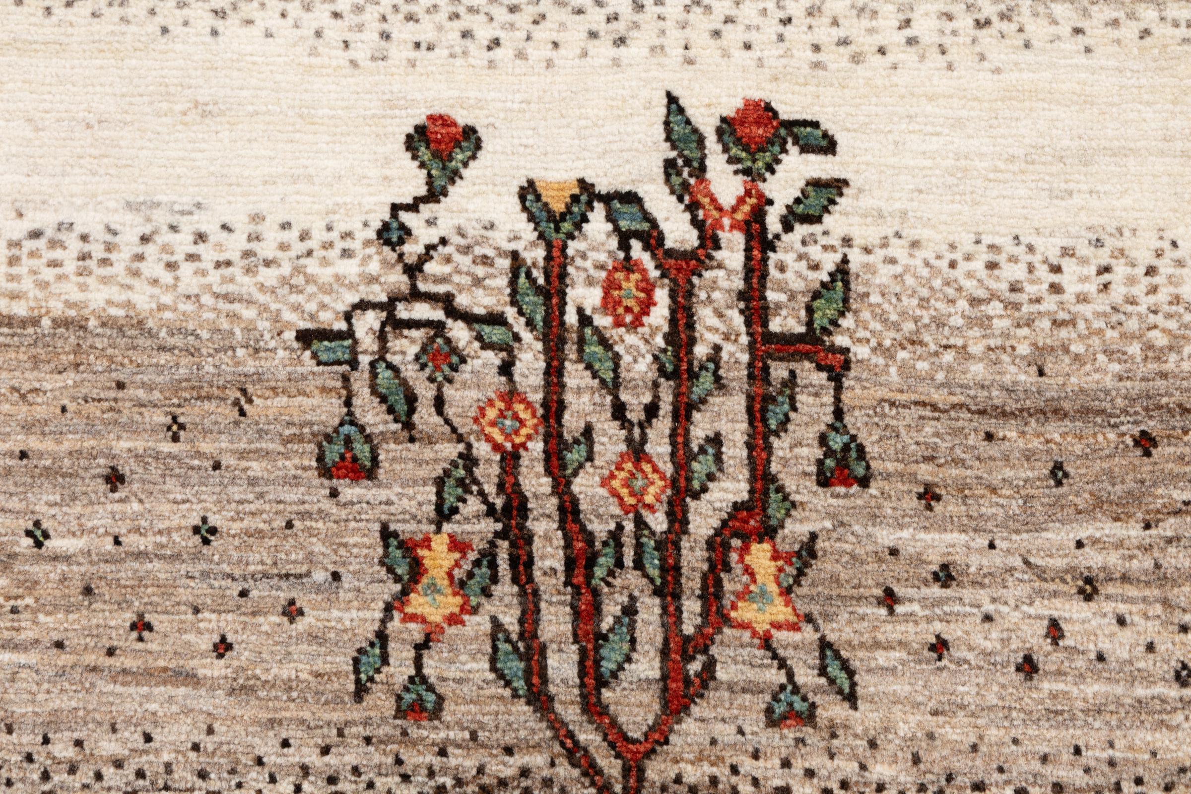 Een verfijning van de al bekende Gabbeh-tapijten: Dit is deze Perzische Gabbeh Loribaft. Het weet indruk te maken met zijn fijnere weefsel en prachtige ontwerp. Het werd door Loren in het zuiden van Perzië met de hand geknoopt van de beste handgesponnen schapenwol. Voor het verven van de wol worden uitsluitend pure plantaardige kleurstoffen gebruikt. Met dit vloerkleed haal je de hoogste standaard van een Gabbeh-tapijt in huis.
