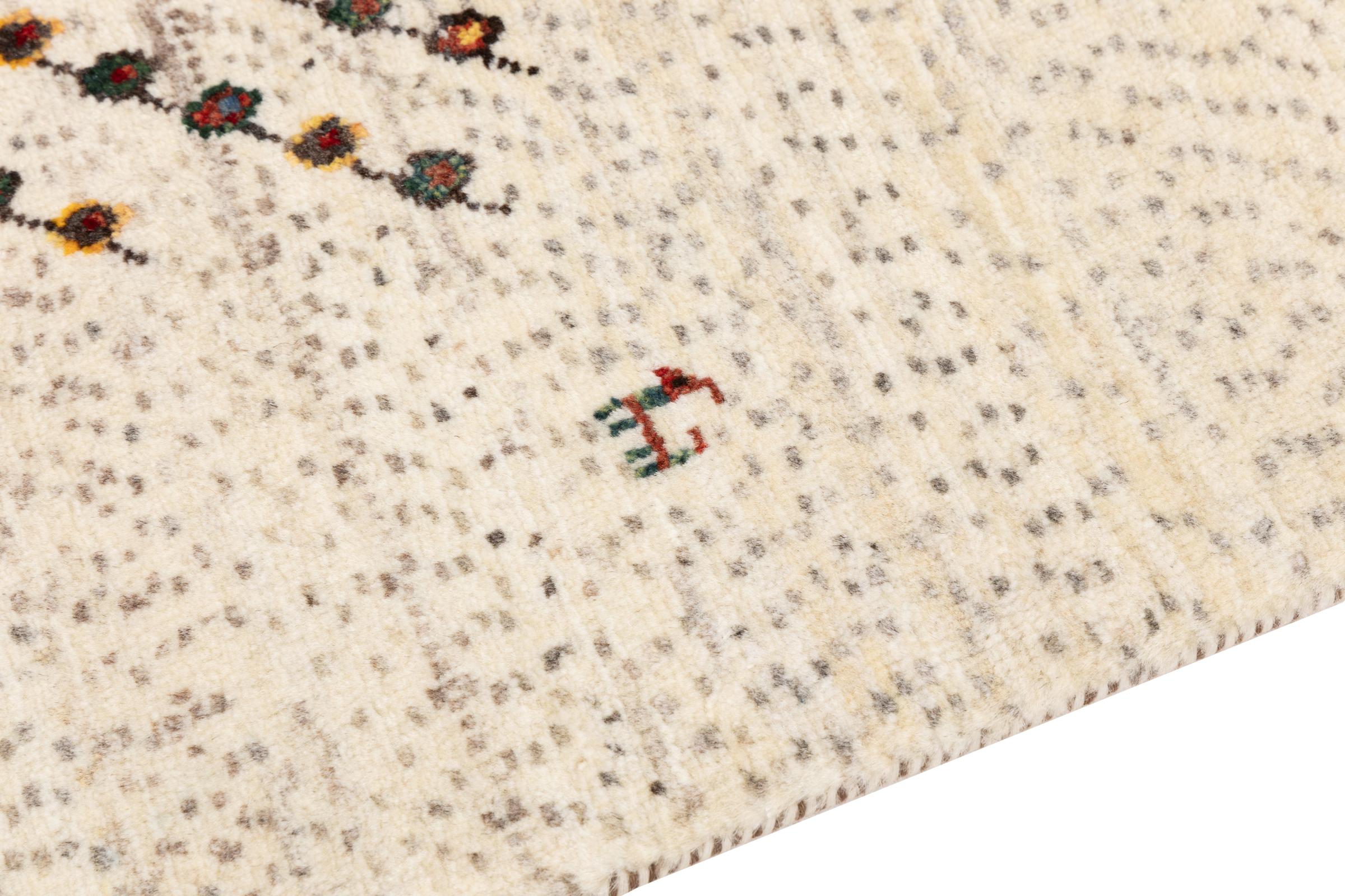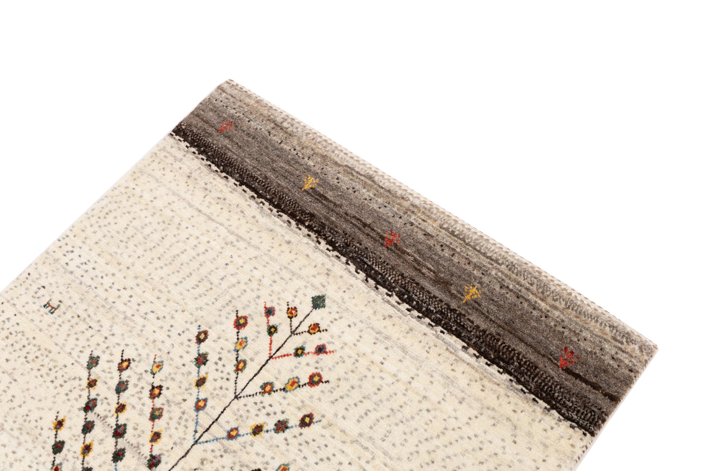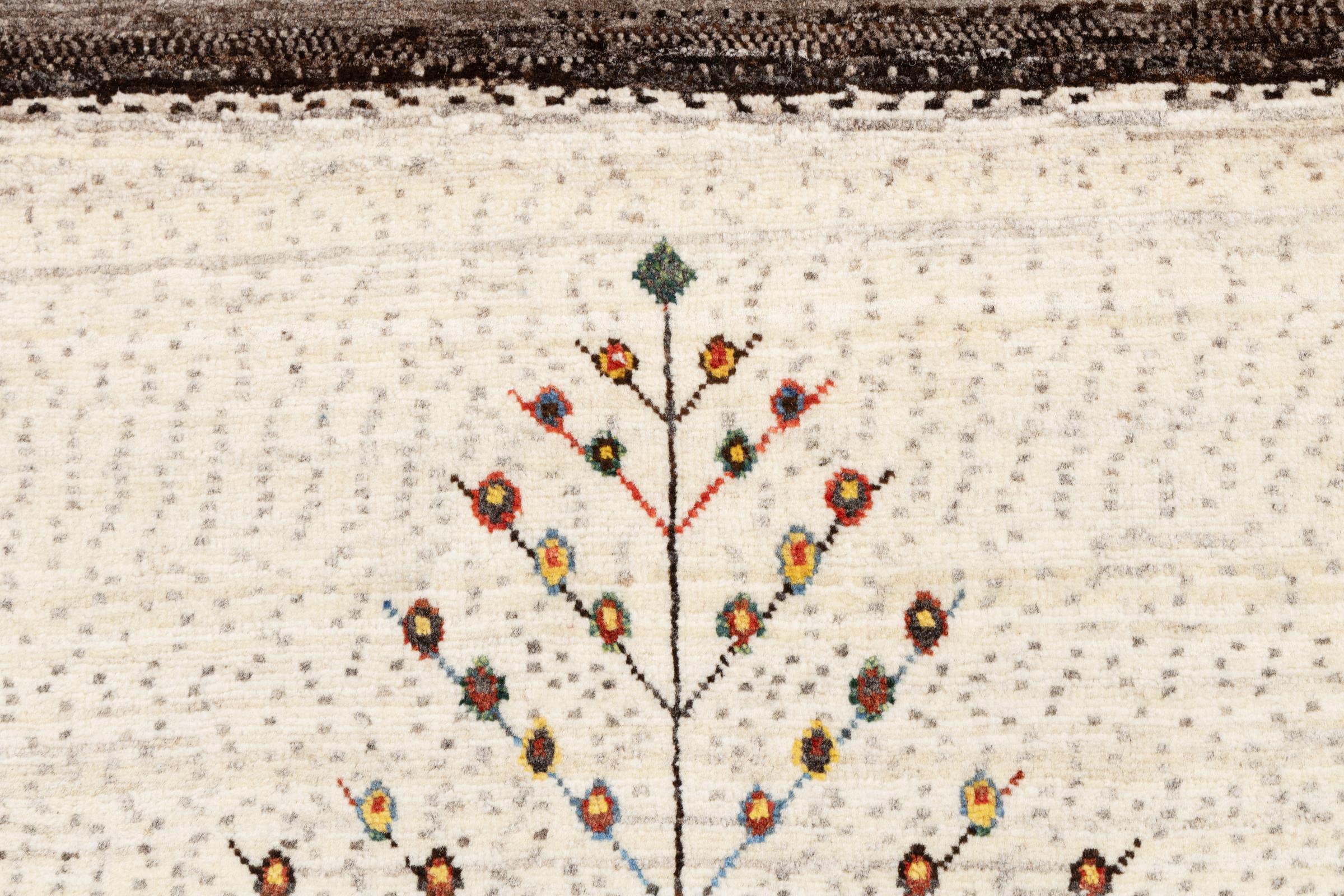 Een verfijning van de al bekende Gabbeh-tapijten: Dit is deze Perzische Gabbeh Loribaft. Het weet indruk te maken met zijn fijnere weefsel en prachtige ontwerp. Het werd door Loren in het zuiden van Perzië met de hand geknoopt van de beste handgesponnen schapenwol. Voor het verven van de wol worden uitsluitend pure plantaardige kleurstoffen gebruikt. Met dit vloerkleed haal je de hoogste standaard van een Gabbeh-tapijt in huis.