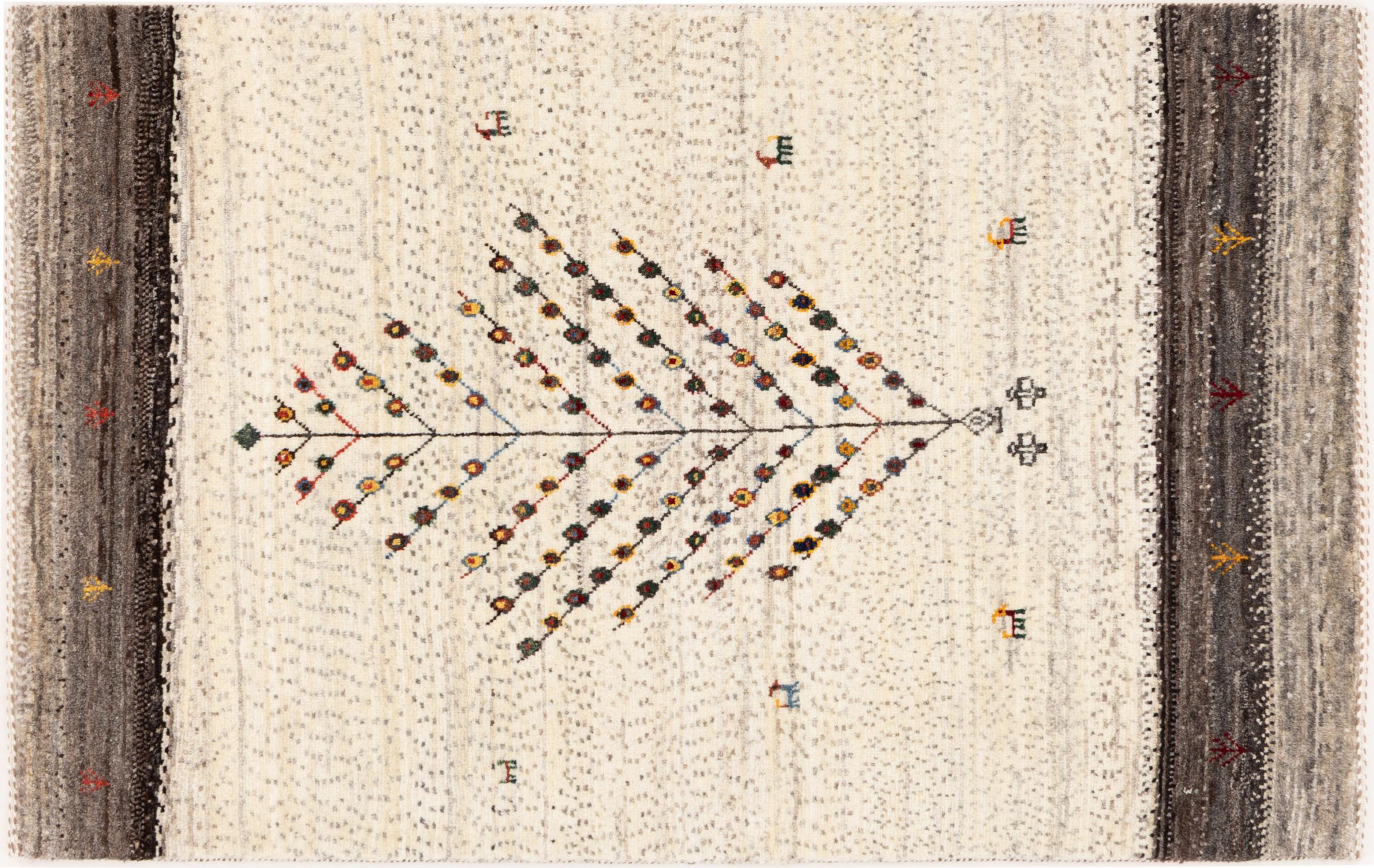 Dit prachtige tapijt is een Perzisch Gabbeh-tapijt en behoort daarom tot de hoogste kwaliteit Gabbeh-tapijten. De tapijten worden geknoopt door nomaden of semi-nomaden in Iran volgens traditioneel vakmanschap. De eenvoudige motieven en patronen zijn vooral geïnspireerd op de directe omgeving van de nomaden. Zo zijn er bijvoorbeeld kamelen, bomen of struiken te vinden op de traditionele tapijten. De Perzische Gabbeh-tapijten zijn gemaakt van wol van lokaal opgefokte kuddes schapen. De wol wordt dus meestal nog met de hand gesponnen. Elk van deze oosterse tapijten belichaamt dus een uniek karakter van de eeuwenoude cultuur.