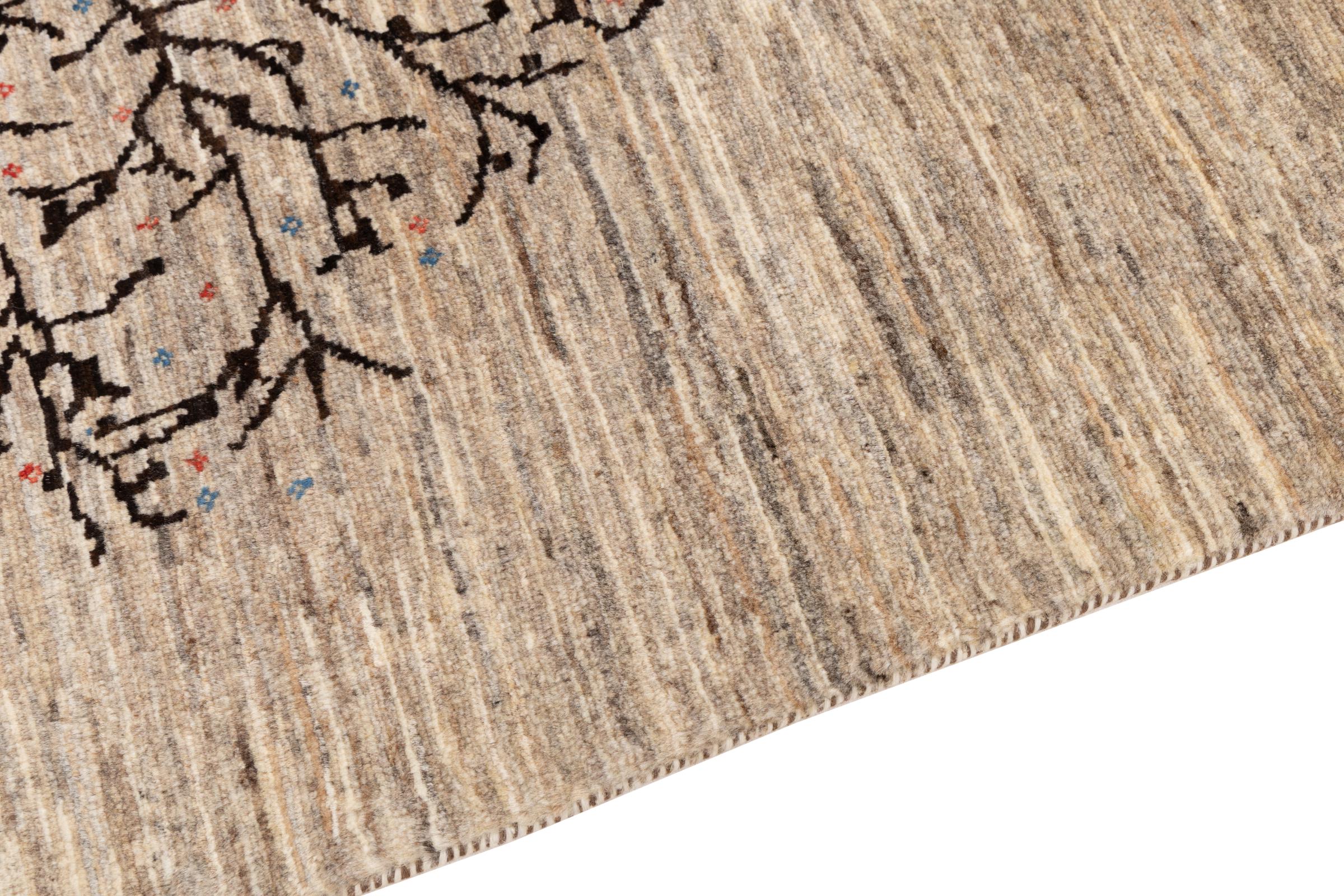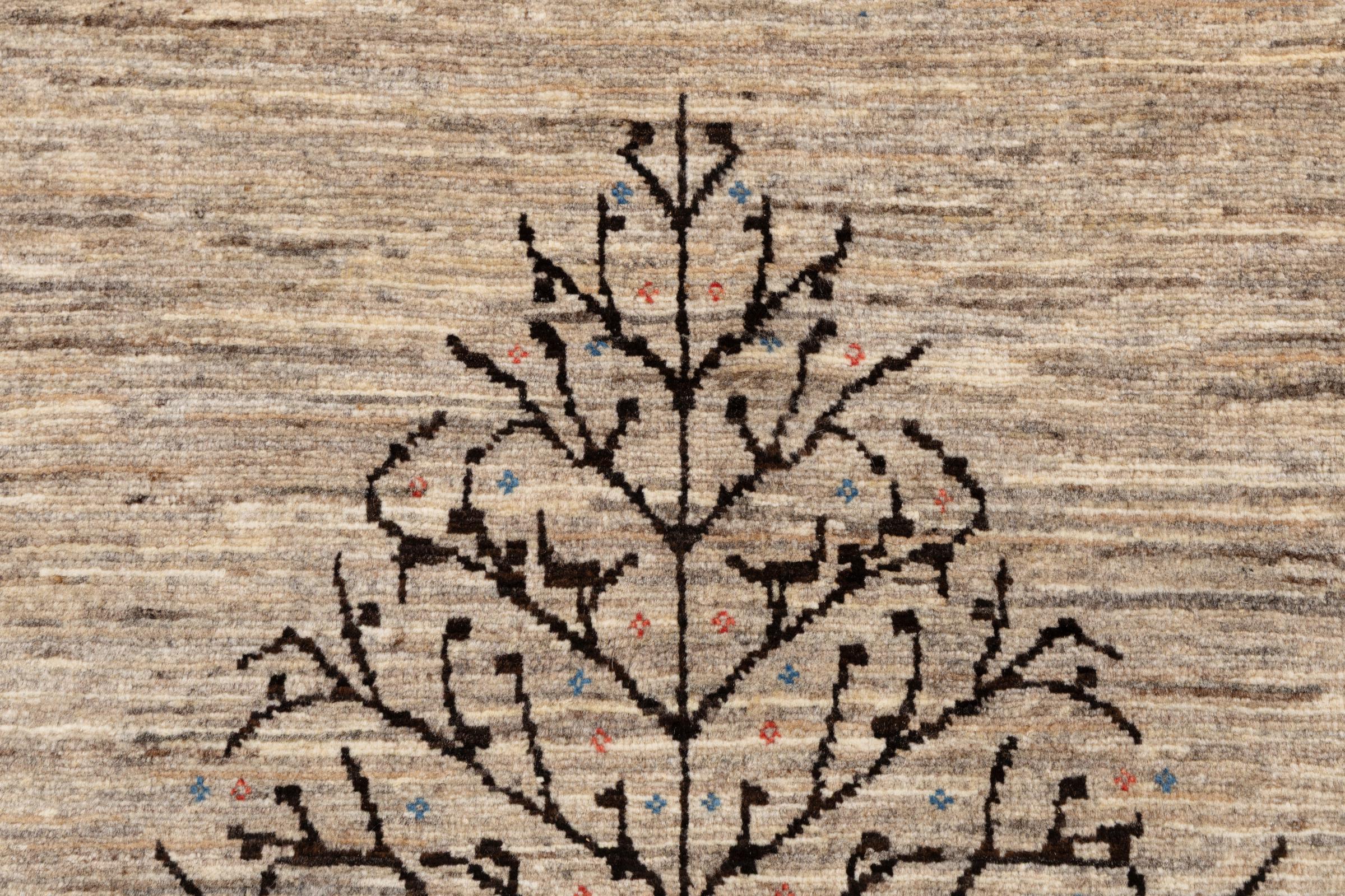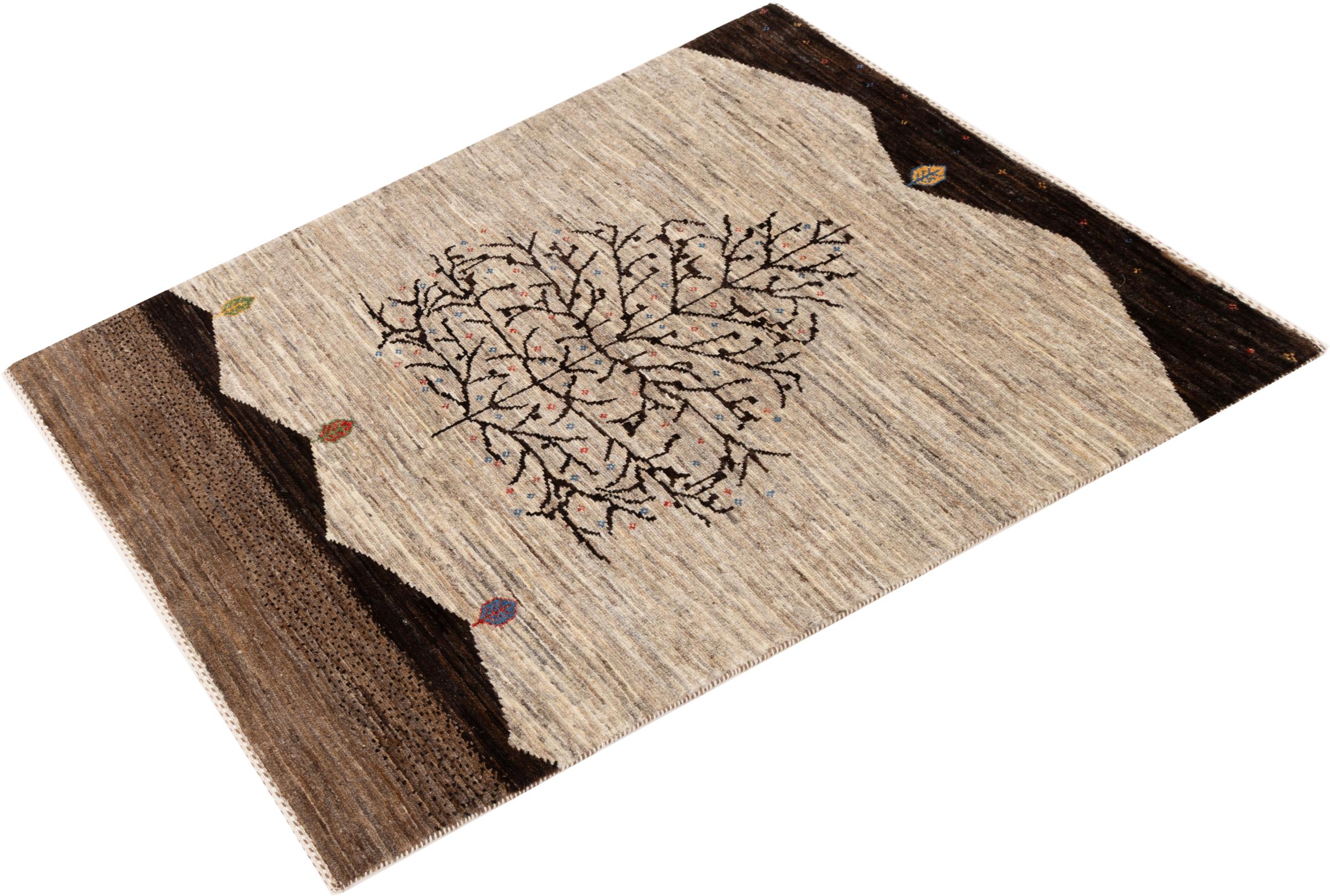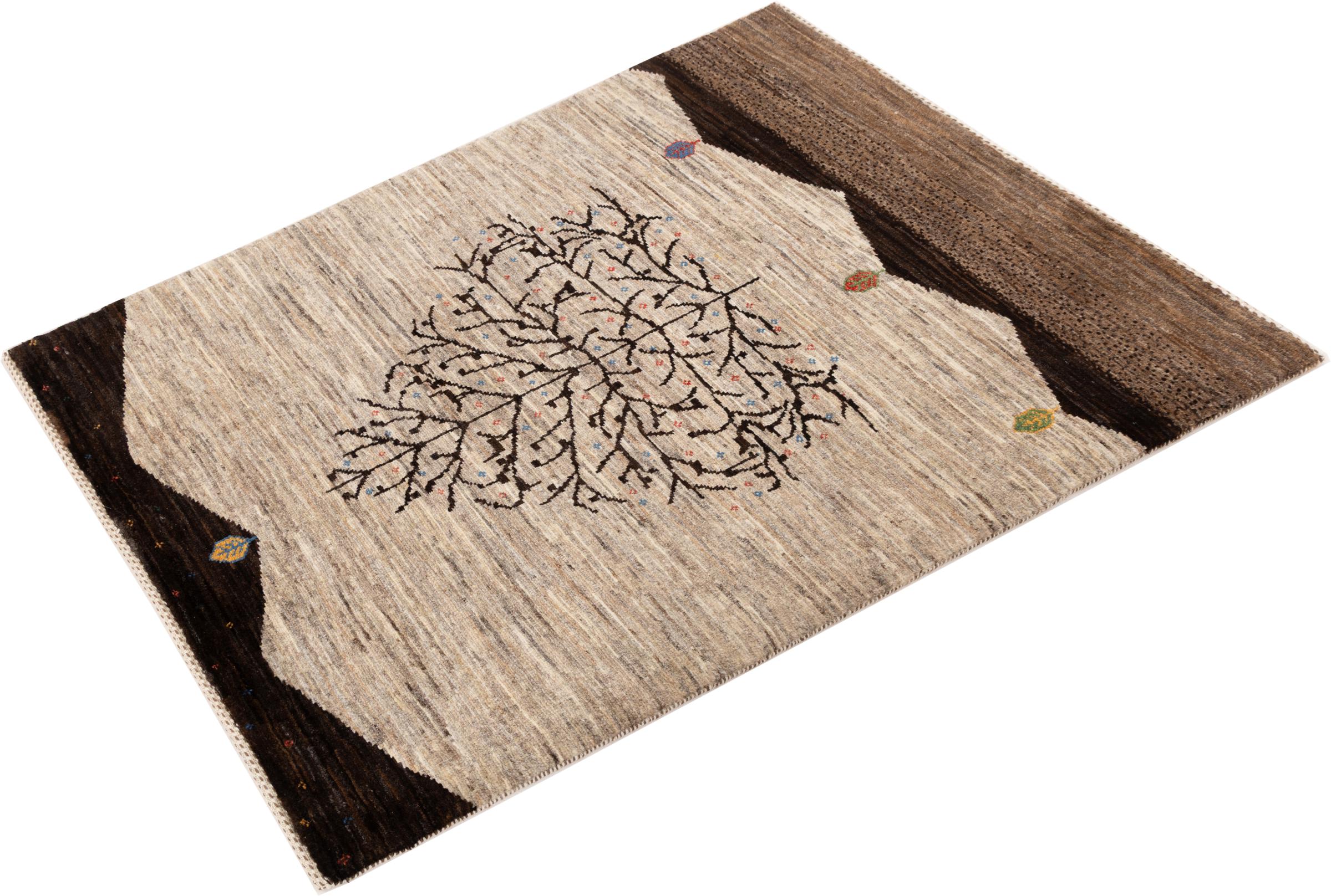 Dit prachtige tapijt is een Perzisch Gabbeh-tapijt en behoort daarom tot de hoogste kwaliteit Gabbeh-tapijten. De tapijten worden geknoopt door nomaden of semi-nomaden in Iran volgens traditioneel vakmanschap. De eenvoudige motieven en patronen zijn vooral geïnspireerd op de directe omgeving van de nomaden. Zo zijn er bijvoorbeeld kamelen, bomen of struiken te vinden op de traditionele tapijten. De Perzische Gabbeh-tapijten zijn gemaakt van wol van lokaal opgefokte kuddes schapen. De wol wordt dus meestal nog met de hand gesponnen. Elk van deze oosterse tapijten belichaamt dus een uniek karakter van de eeuwenoude cultuur.