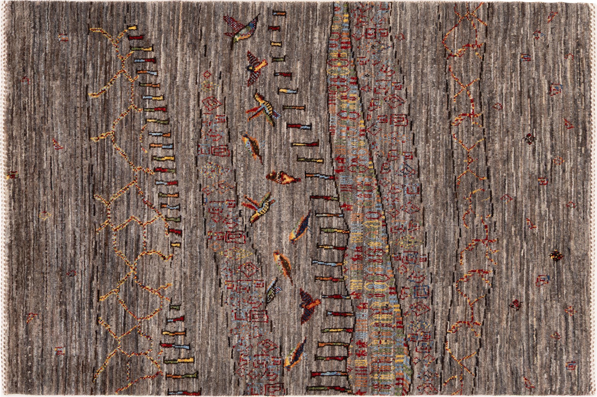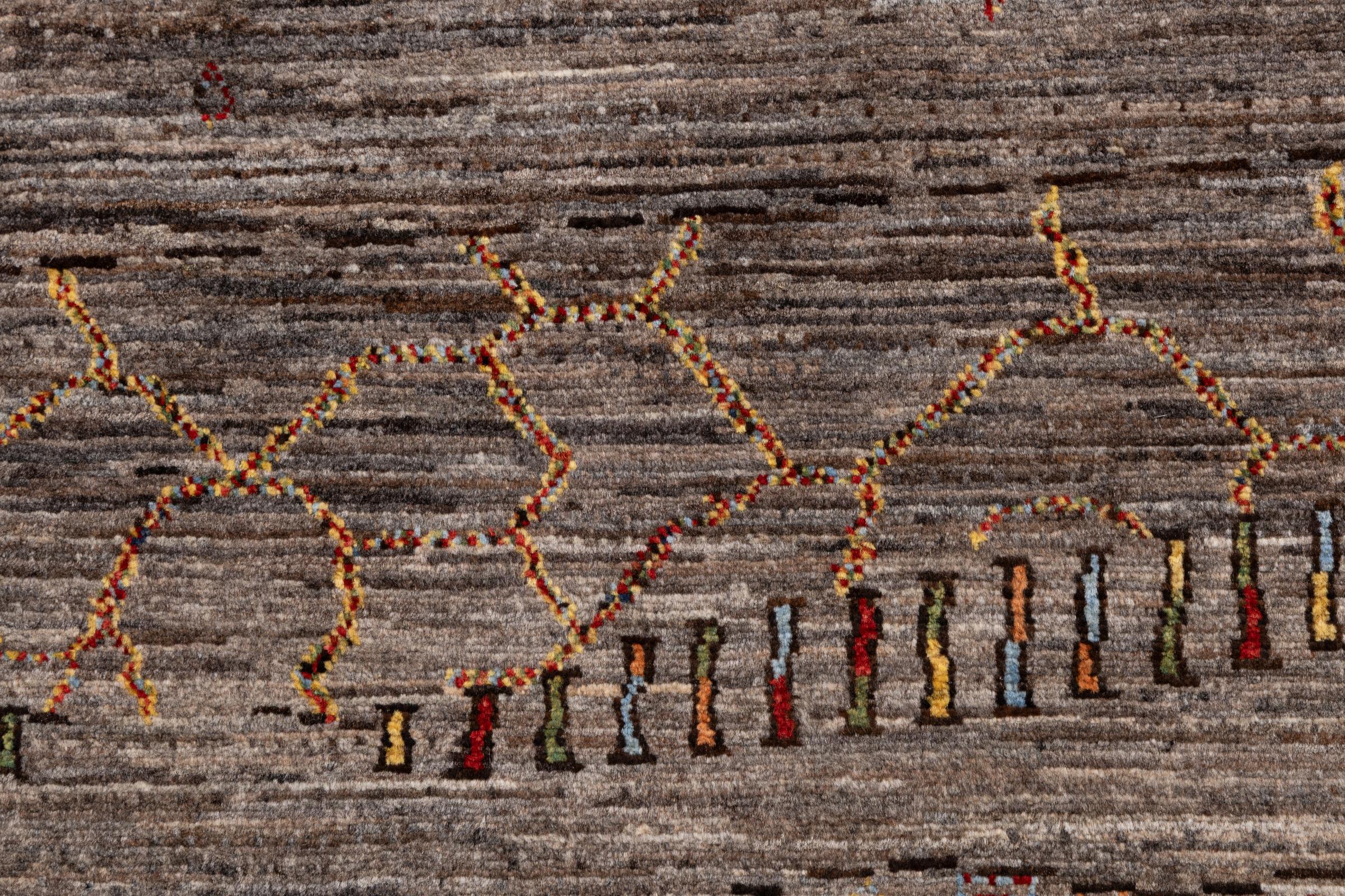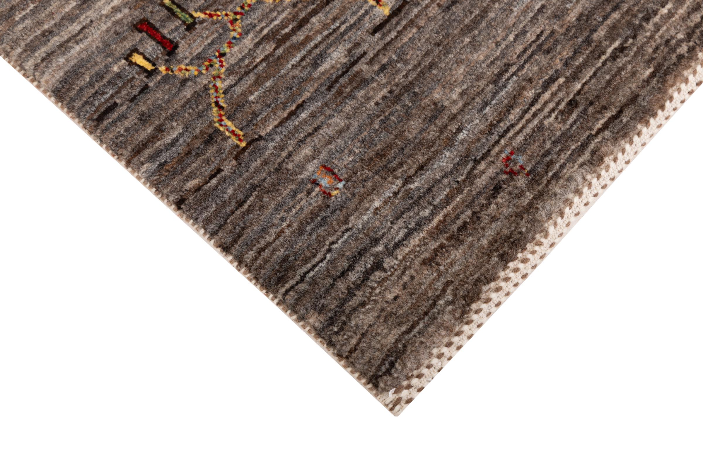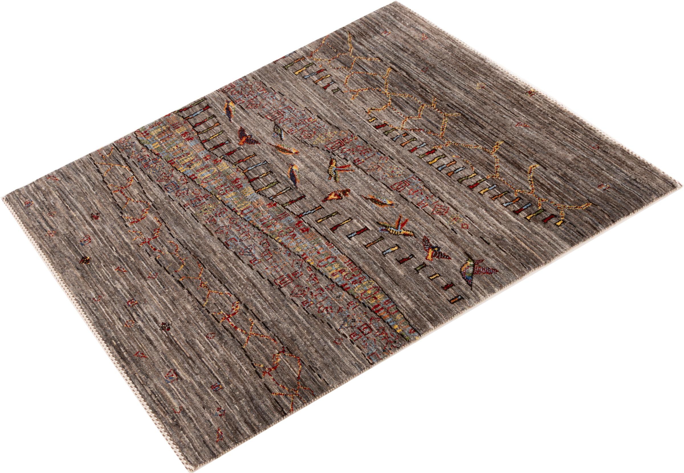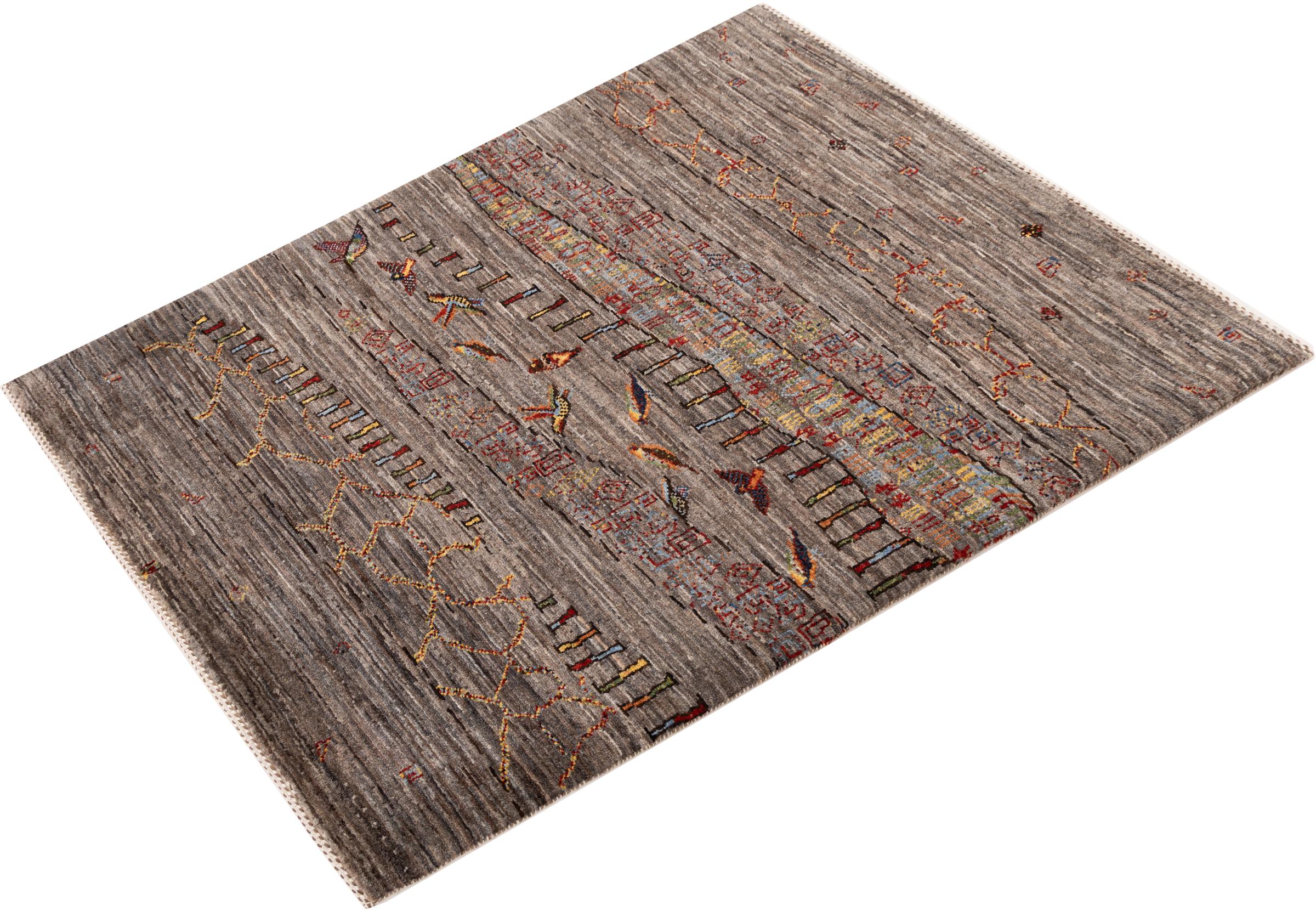Een verfijning van de al bekende Gabbeh-tapijten: Dit is deze Perzische Gabbeh Loribaft. Het weet indruk te maken met zijn fijnere weefsel en prachtige ontwerp. Het werd door Loren in het zuiden van Perzië met de hand geknoopt van de beste handgesponnen schapenwol. Voor het verven van de wol worden uitsluitend pure plantaardige kleurstoffen gebruikt. Met dit vloerkleed haal je de hoogste standaard van een Gabbeh-tapijt in huis.