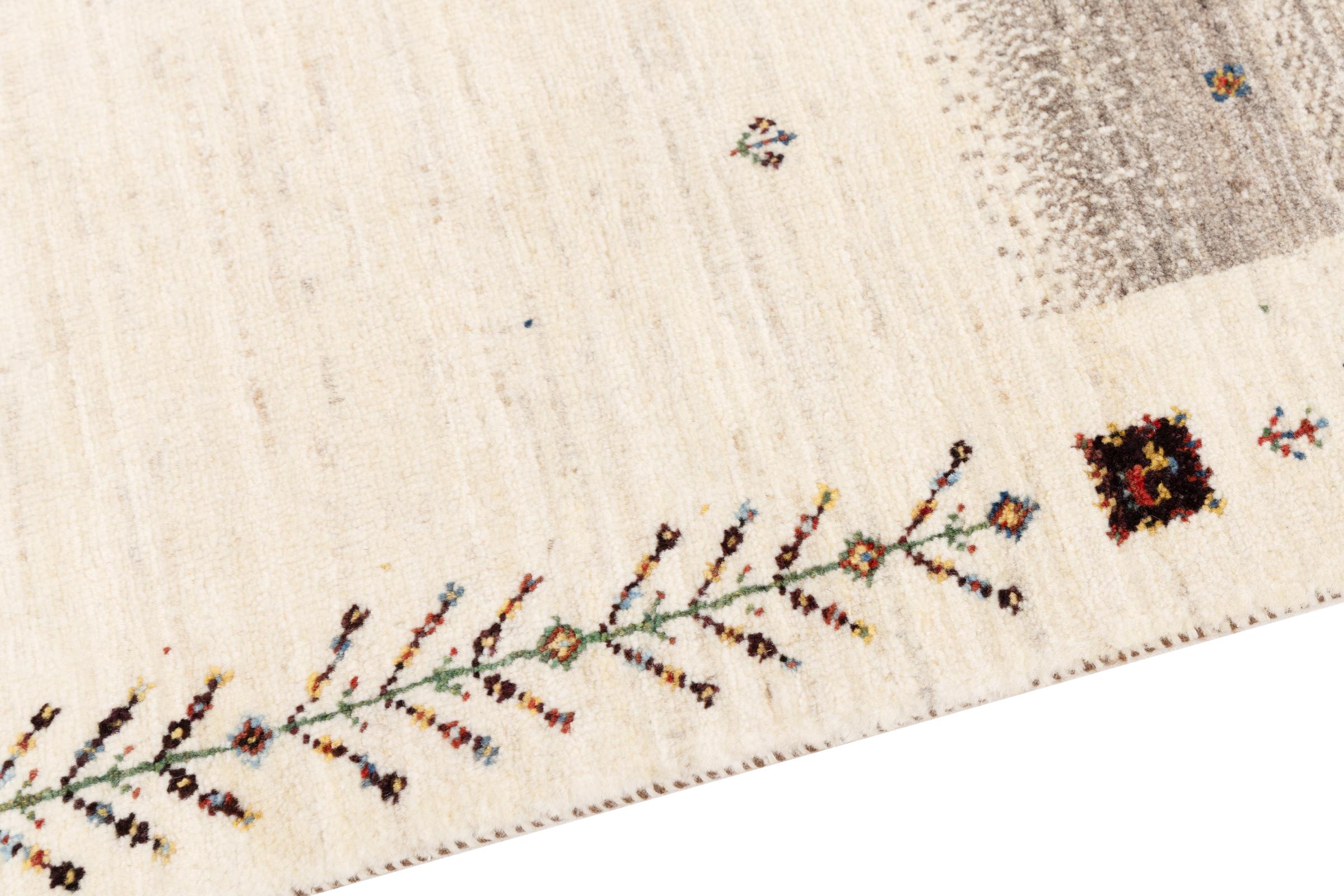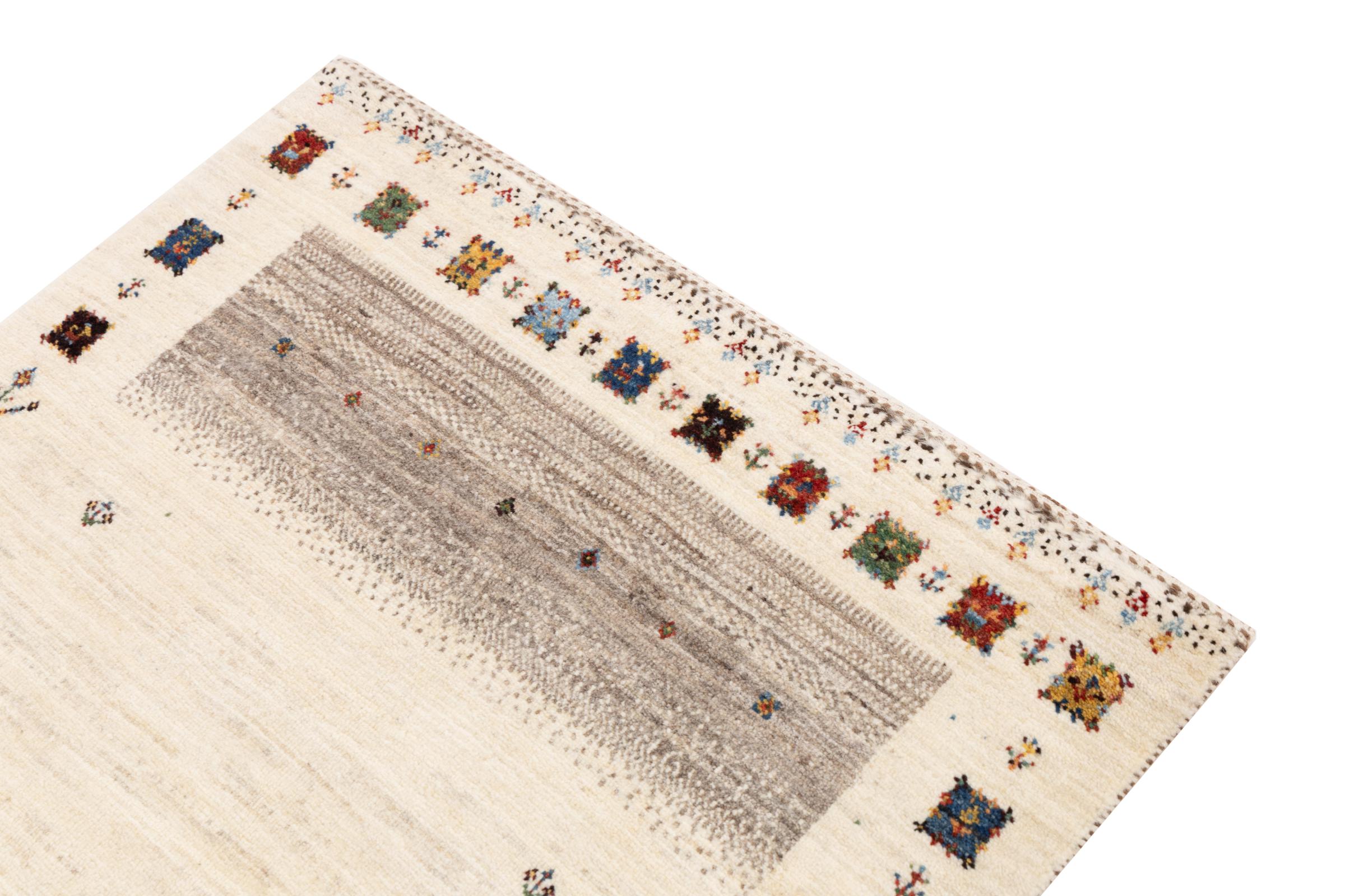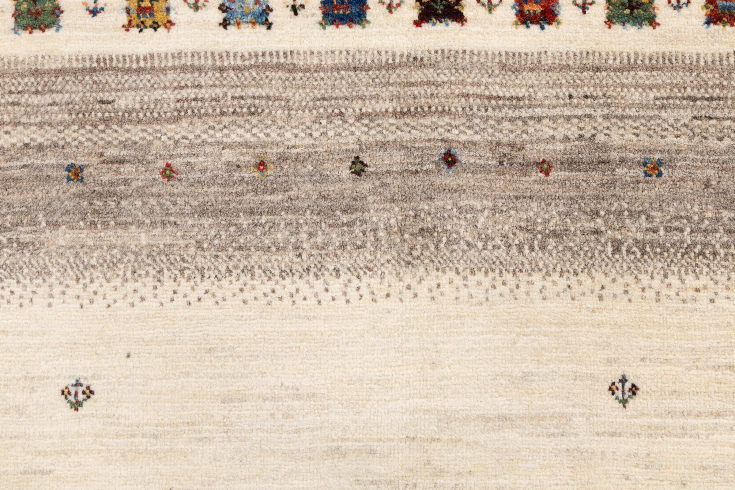 Een verfijning van de al bekende Gabbeh-tapijten: Dit is deze Perzische Gabbeh Loribaft. Het weet indruk te maken met zijn fijnere weefsel en prachtige ontwerp. Het werd door Loren in het zuiden van Perzië met de hand geknoopt van de beste handgesponnen schapenwol. Voor het verven van de wol worden uitsluitend pure plantaardige kleurstoffen gebruikt. Met dit vloerkleed haal je de hoogste standaard van een Gabbeh-tapijt in huis.