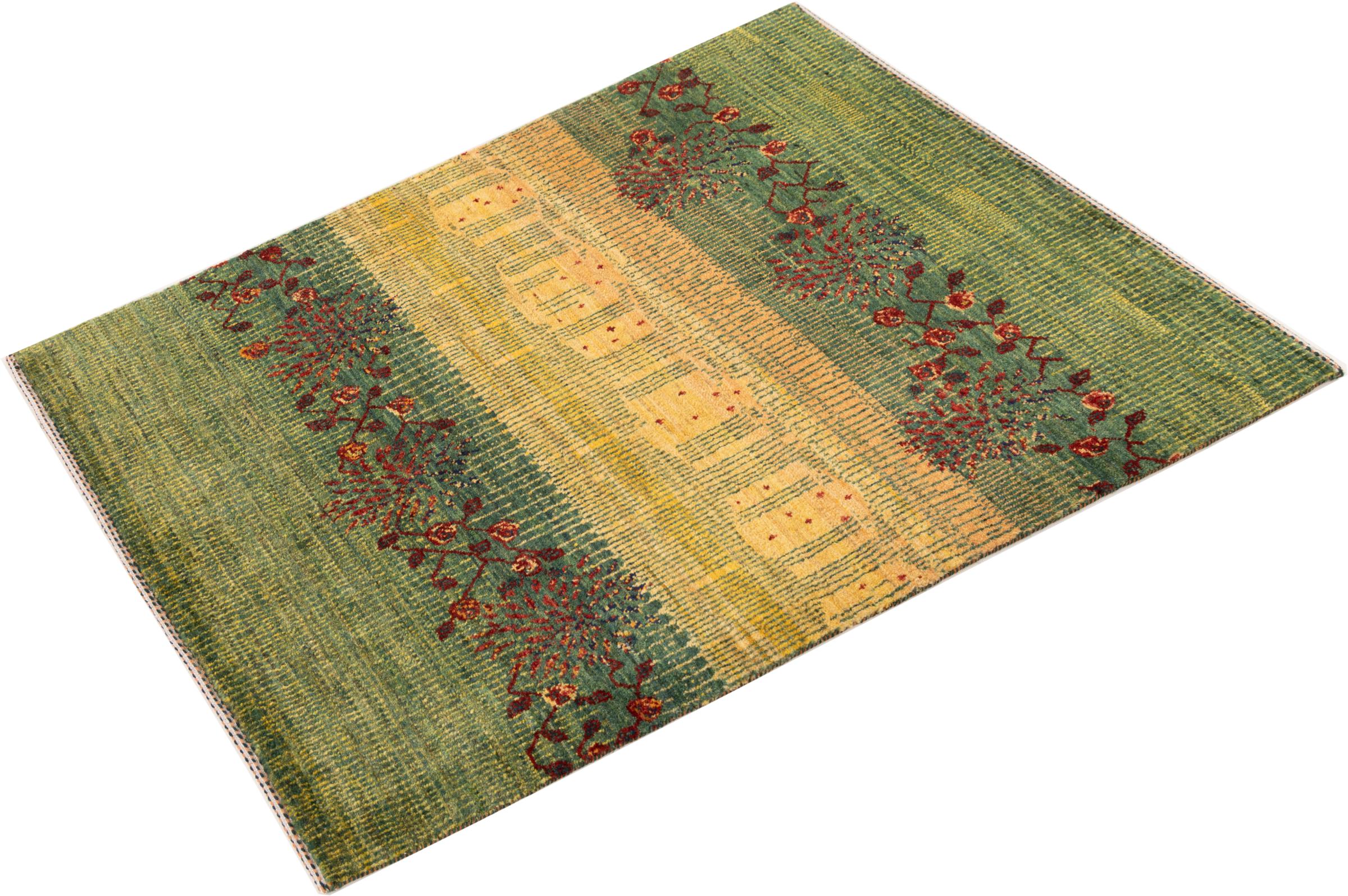Dit prachtige tapijt is een Perzisch Gabbeh-tapijt en behoort daarom tot de hoogste kwaliteit Gabbeh-tapijten. De tapijten worden geknoopt door nomaden of semi-nomaden in Iran volgens traditioneel vakmanschap. De eenvoudige motieven en patronen zijn vooral geïnspireerd op de directe omgeving van de nomaden. Zo zijn er bijvoorbeeld kamelen, bomen of struiken te vinden op de traditionele tapijten. De Perzische Gabbeh-tapijten zijn gemaakt van wol van lokaal opgefokte kuddes schapen. De wol wordt dus meestal nog met de hand gesponnen. Elk van deze oosterse tapijten belichaamt dus een uniek karakter van de eeuwenoude cultuur.