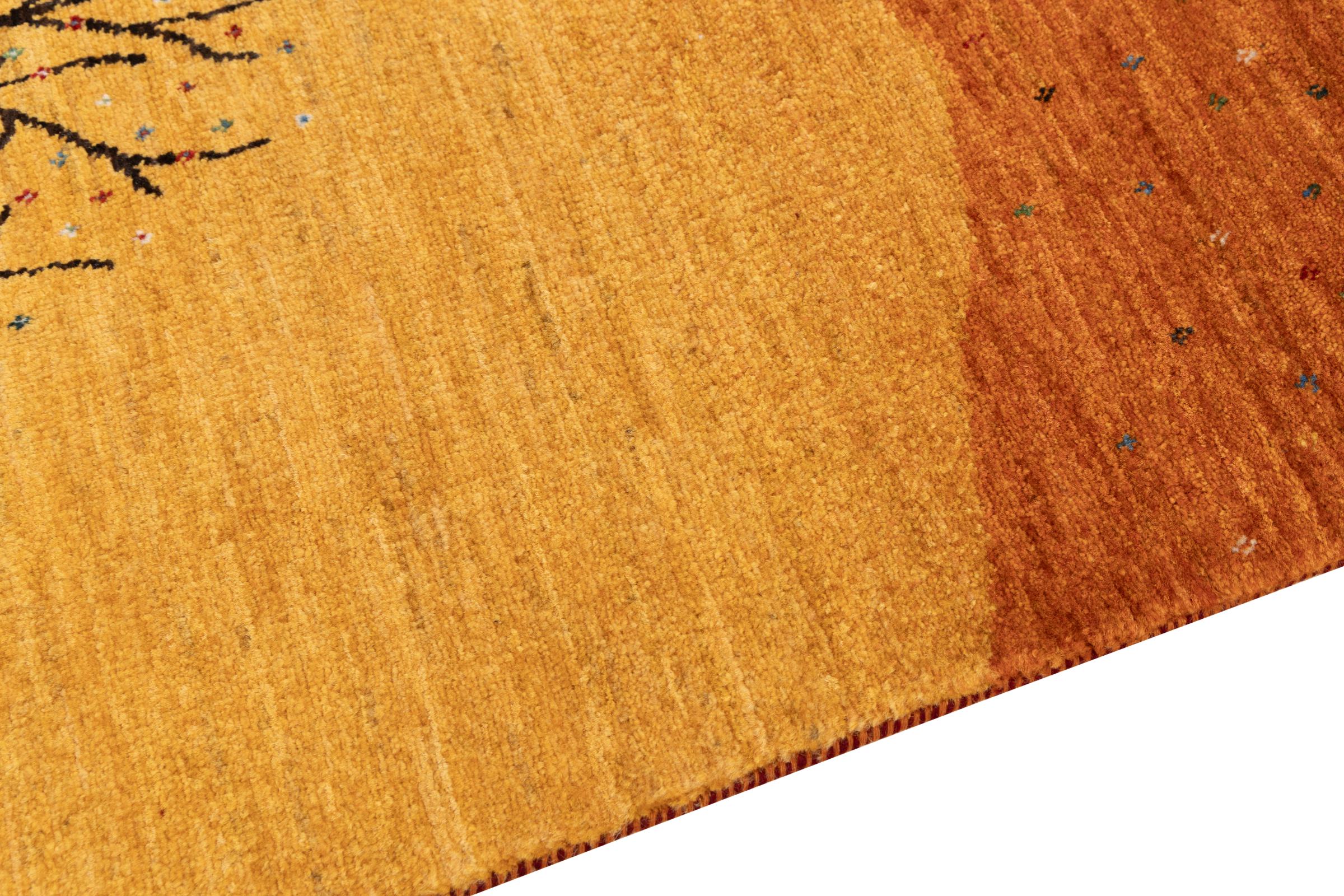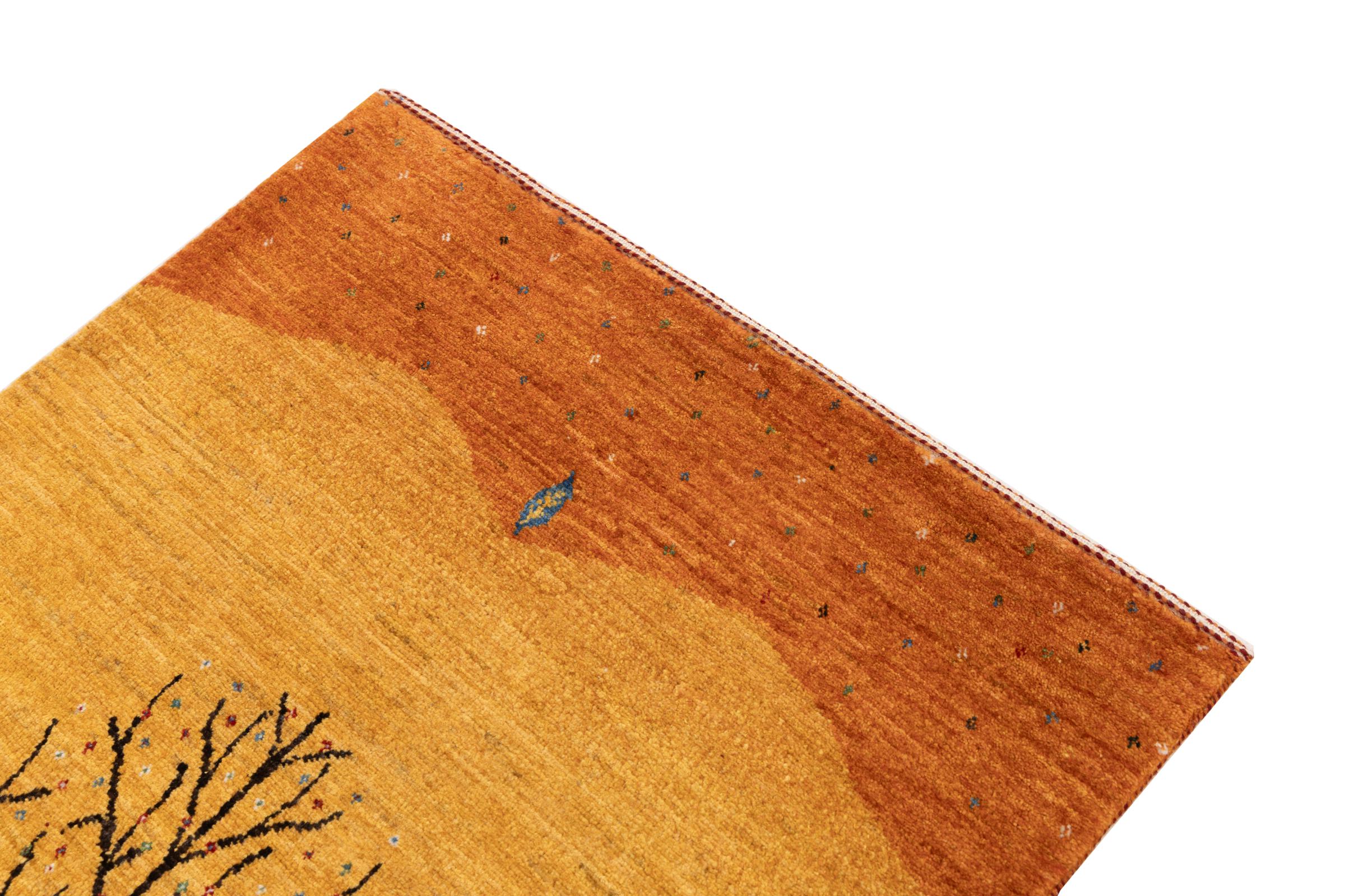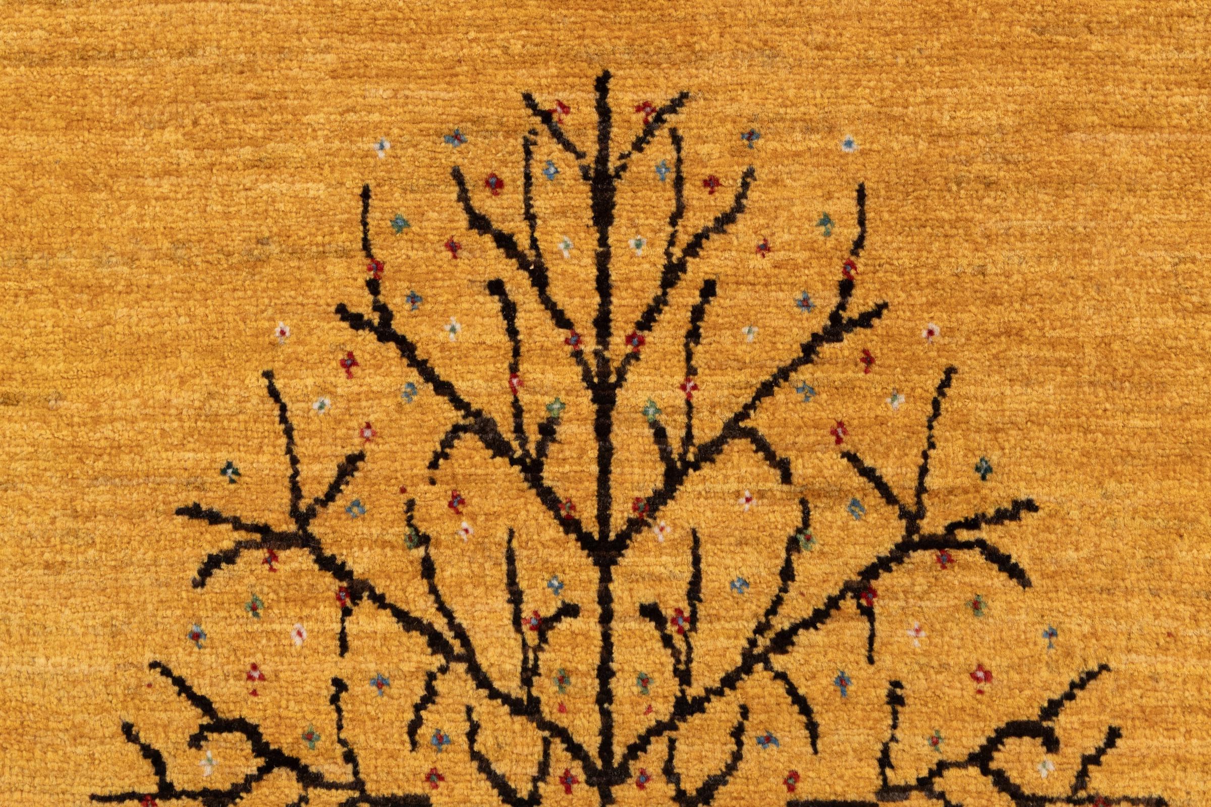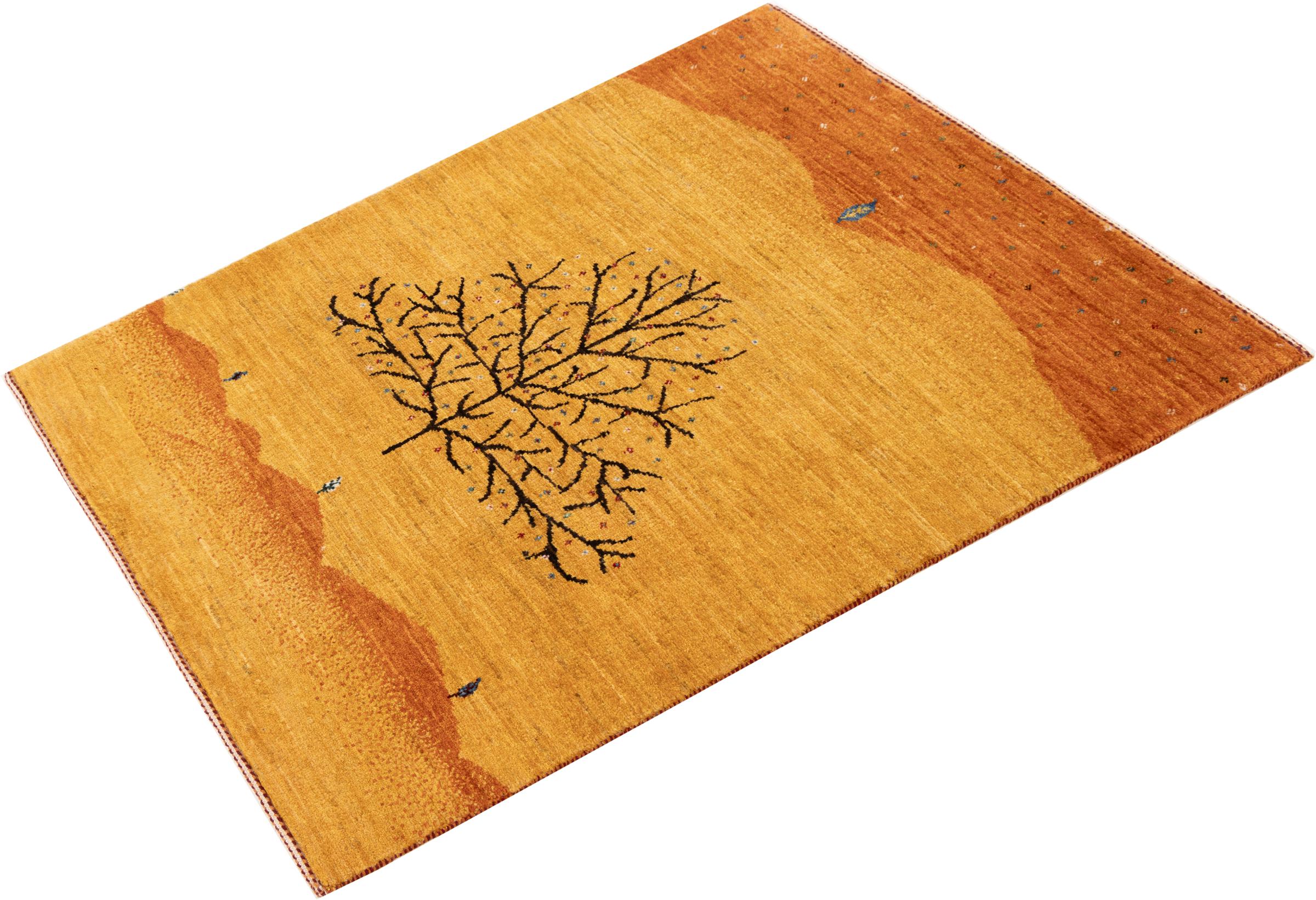 Dit prachtige tapijt is een Perzisch Gabbeh-tapijt en behoort daarom tot de hoogste kwaliteit Gabbeh-tapijten. De tapijten worden geknoopt door nomaden of semi-nomaden in Iran volgens traditioneel vakmanschap. De eenvoudige motieven en patronen zijn vooral geïnspireerd op de directe omgeving van de nomaden. Zo zijn er bijvoorbeeld kamelen, bomen of struiken te vinden op de traditionele tapijten. De Perzische Gabbeh-tapijten zijn gemaakt van wol van lokaal opgefokte kuddes schapen. De wol wordt dus meestal nog met de hand gesponnen. Elk van deze oosterse tapijten belichaamt dus een uniek karakter van de eeuwenoude cultuur.