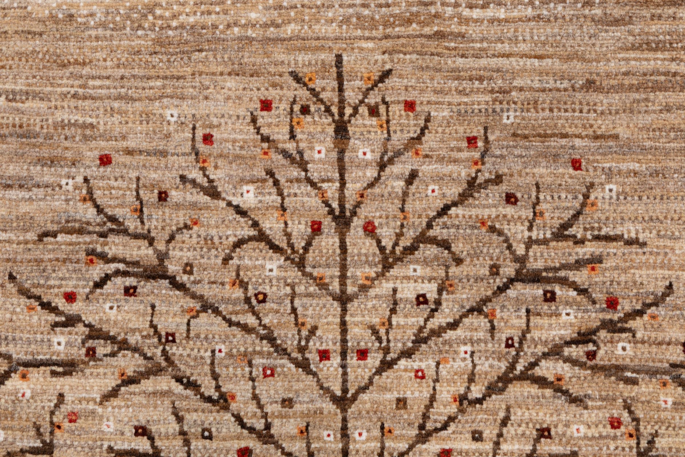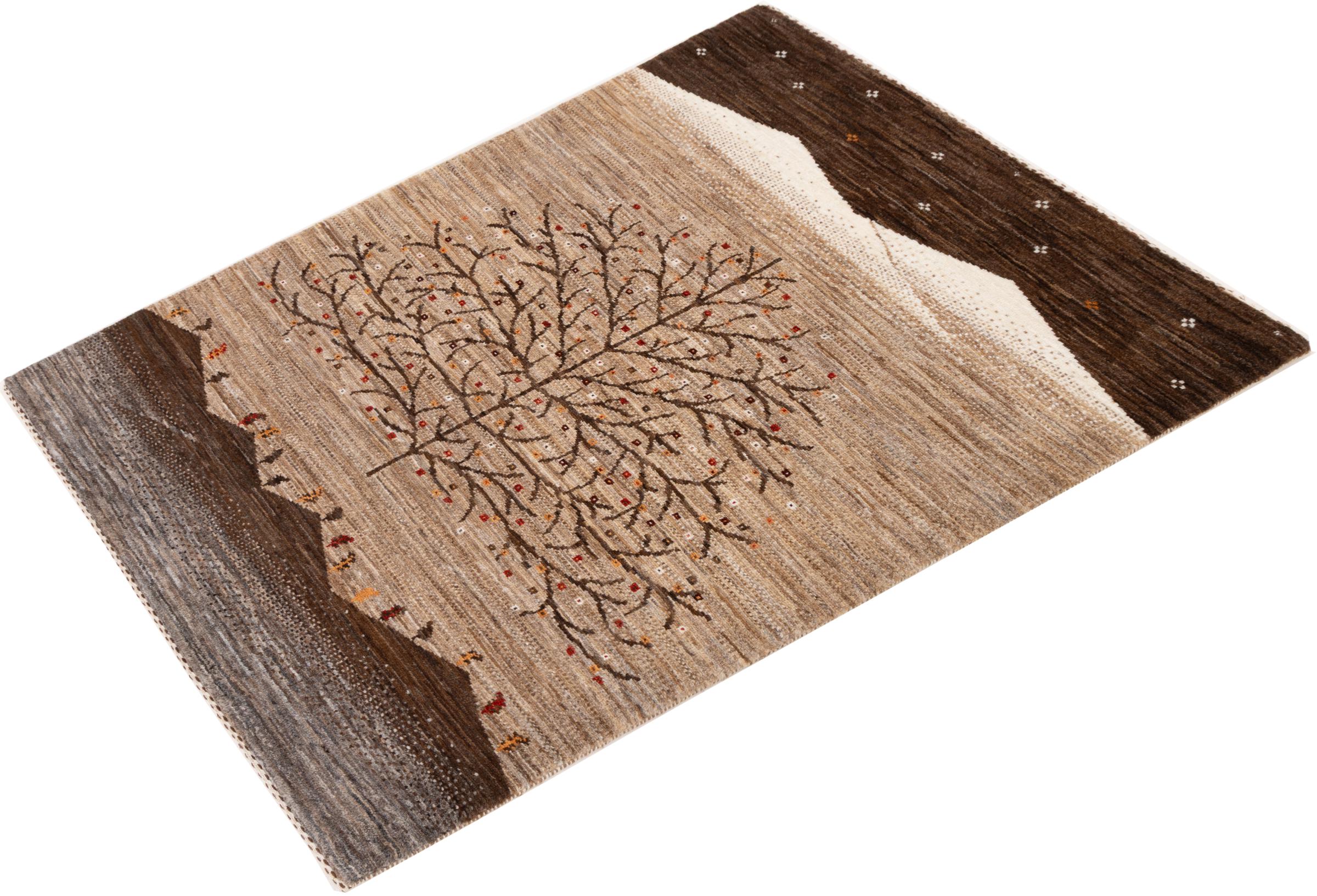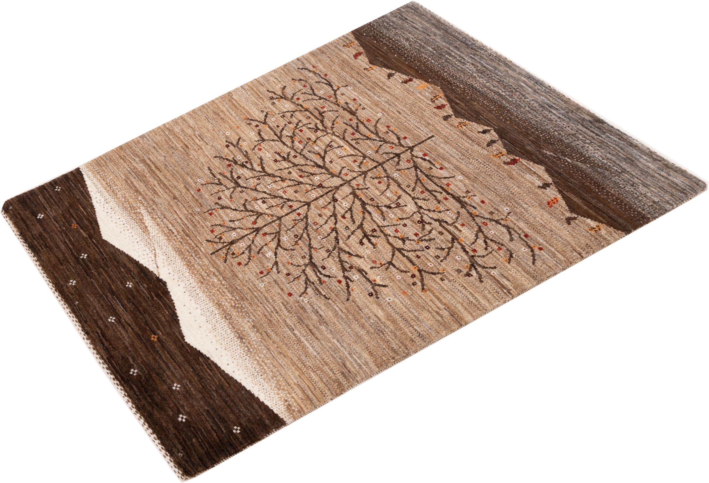Dit prachtige tapijt is een Perzisch Gabbeh-tapijt en behoort daarom tot de hoogste kwaliteit Gabbeh-tapijten. De tapijten worden geknoopt door nomaden of semi-nomaden in Iran volgens traditioneel vakmanschap. De eenvoudige motieven en patronen zijn vooral geïnspireerd op de directe omgeving van de nomaden. Zo zijn er bijvoorbeeld kamelen, bomen of struiken te vinden op de traditionele tapijten. De Perzische Gabbeh-tapijten zijn gemaakt van wol van lokaal opgefokte kuddes schapen. De wol wordt dus meestal nog met de hand gesponnen. Elk van deze oosterse tapijten belichaamt dus een uniek karakter van de eeuwenoude cultuur.